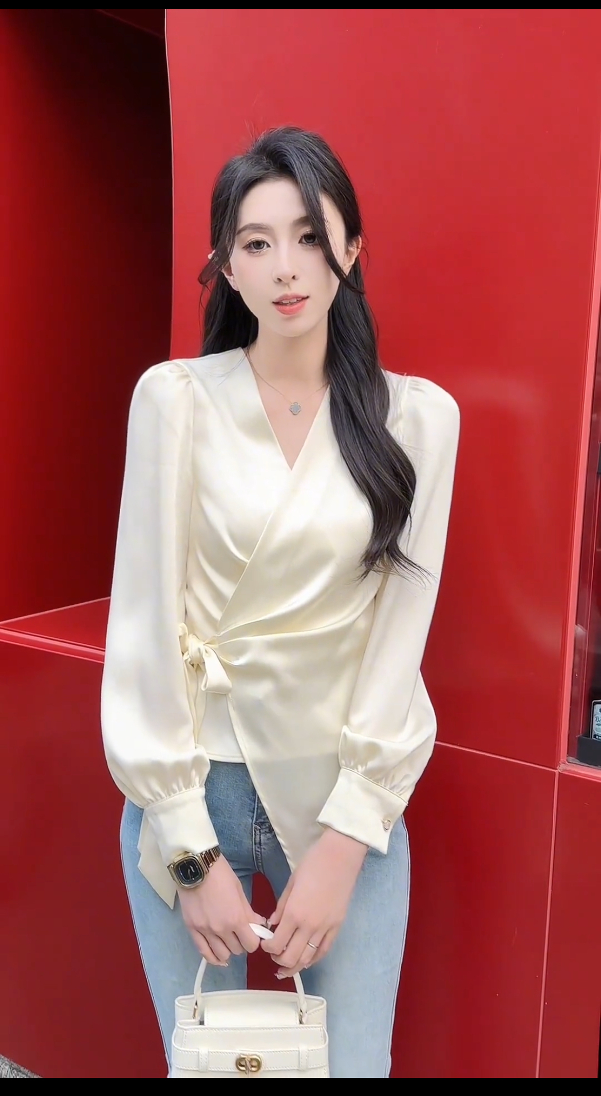 MY16391# 新款法式V领系带长袖衬衫女收腰显瘦小衫上衣女裝貨源服裝批發