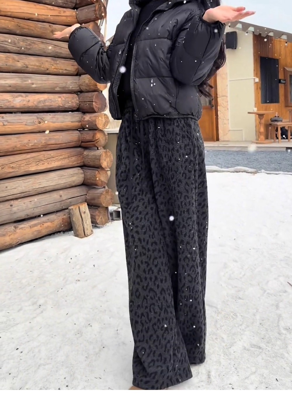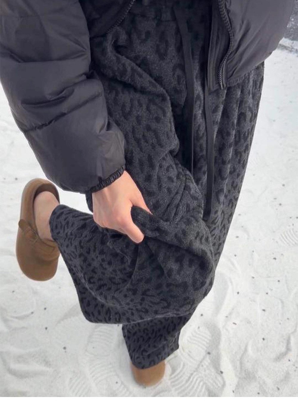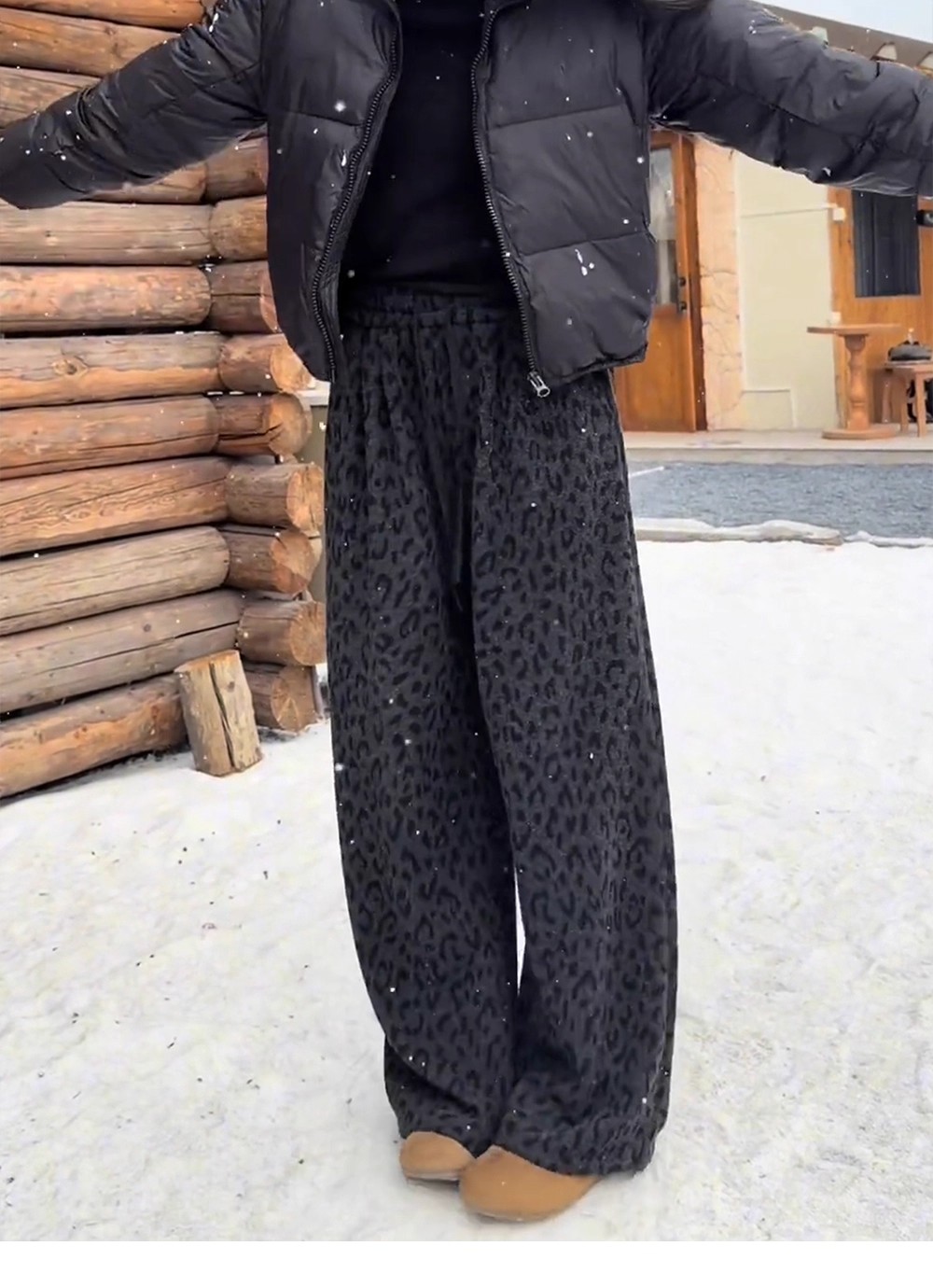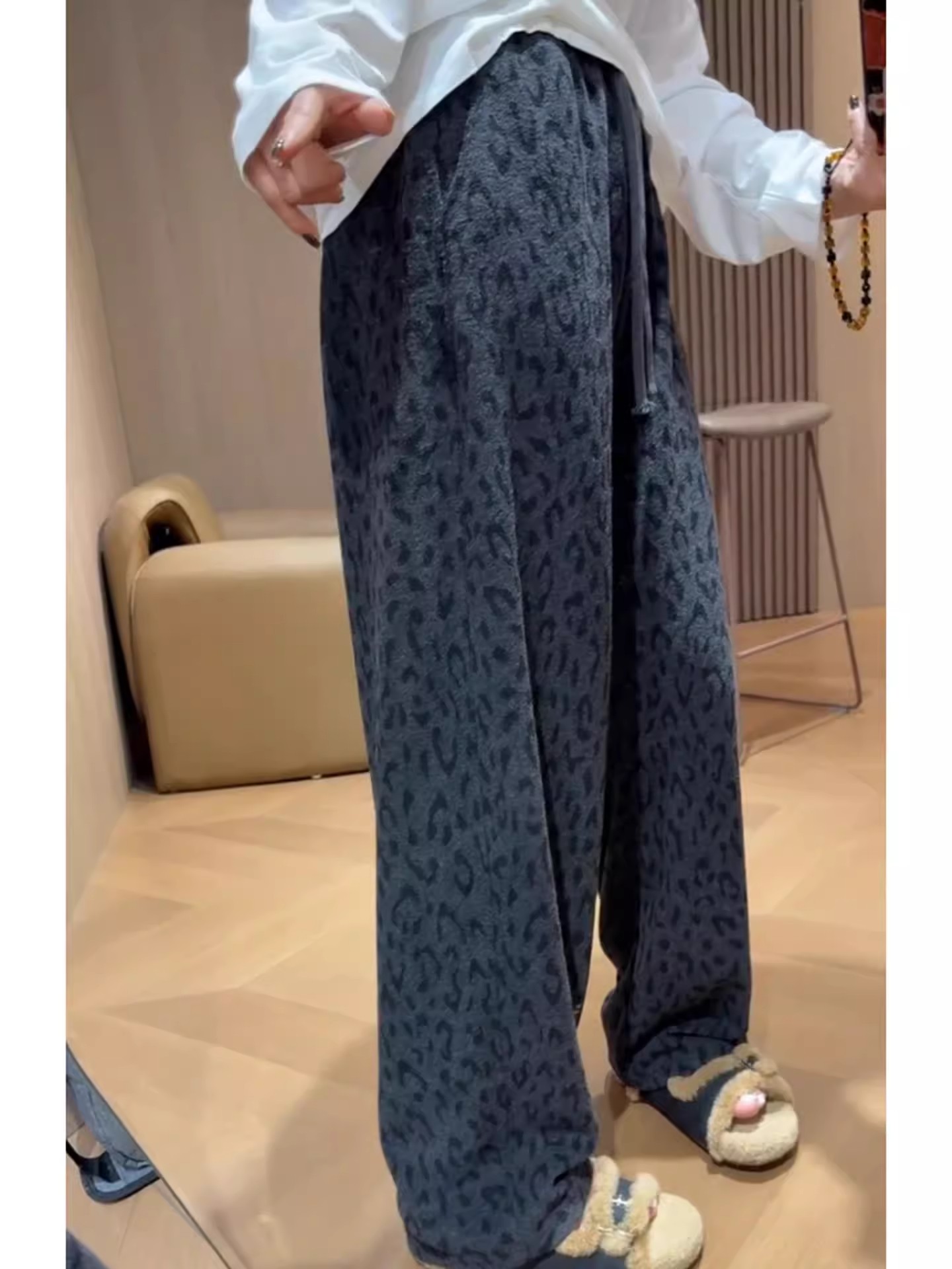 MY16410# 大码豹纹休闲裤女宽松慵懒阔腿裤秋冬胖MM高腰显瘦垂感设计感裤子女裝貨源服裝批發