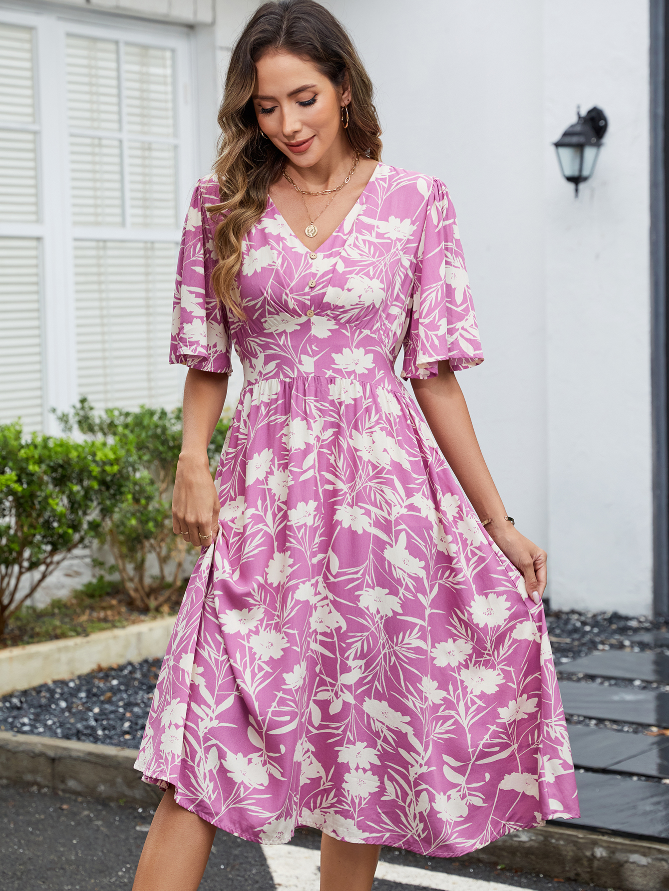 MY16226# 时尚网红荷叶边中长款礼服单排扣显瘦连衣裙女裝貨源服裝批發