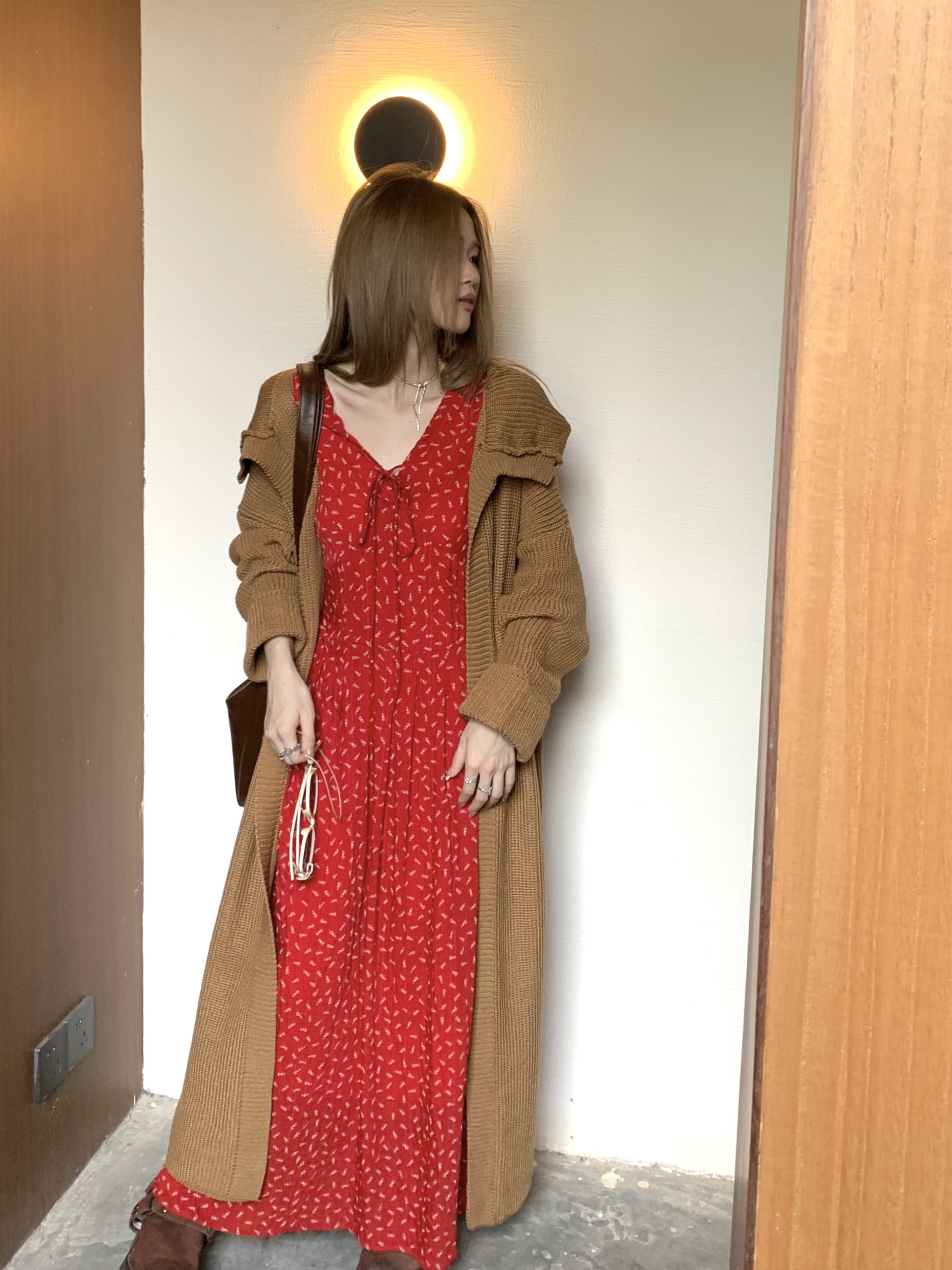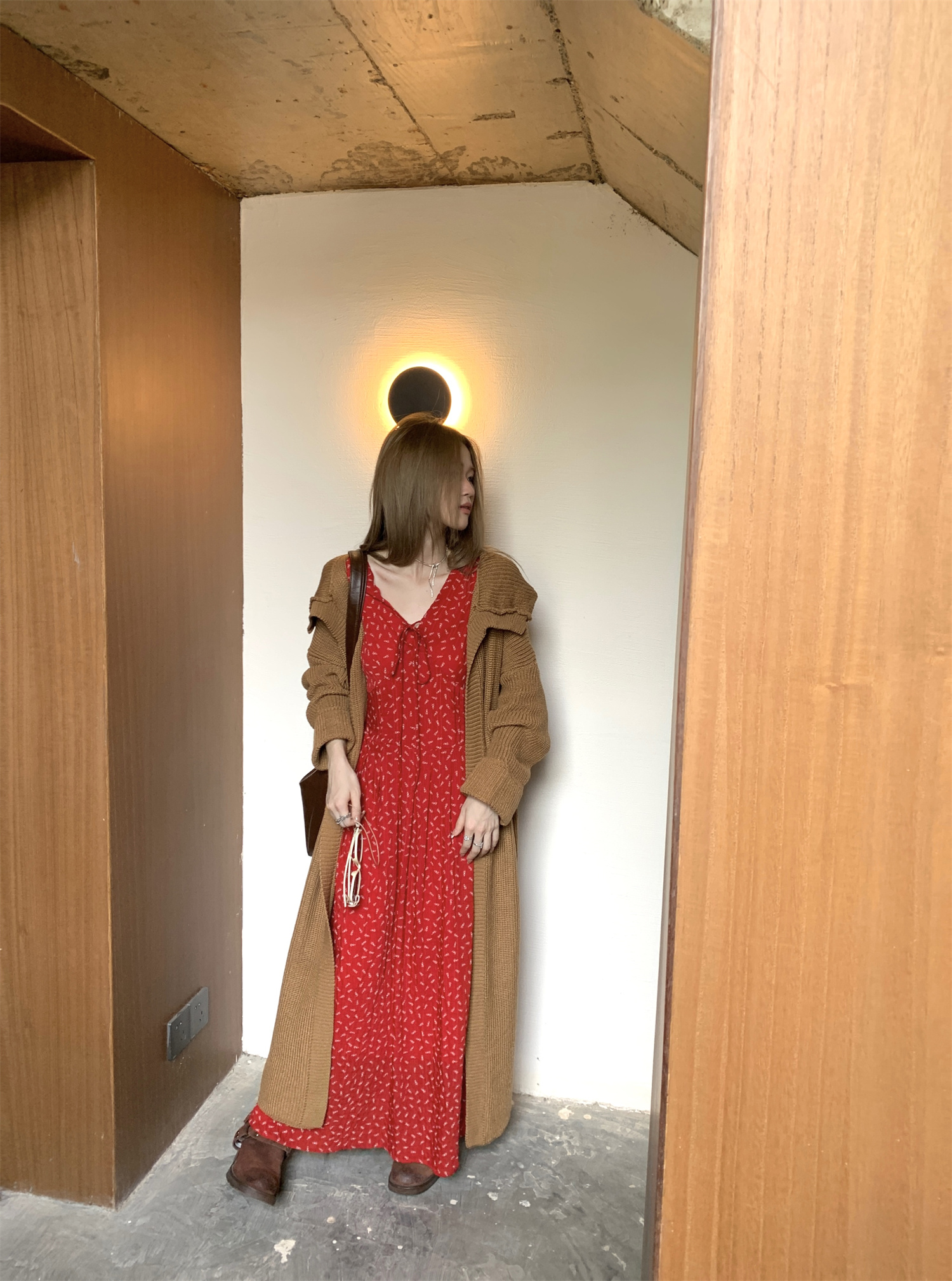 MY16227# 新款时尚v领收腰中长款包臀连衣裙长裙女裝貨源服裝批發