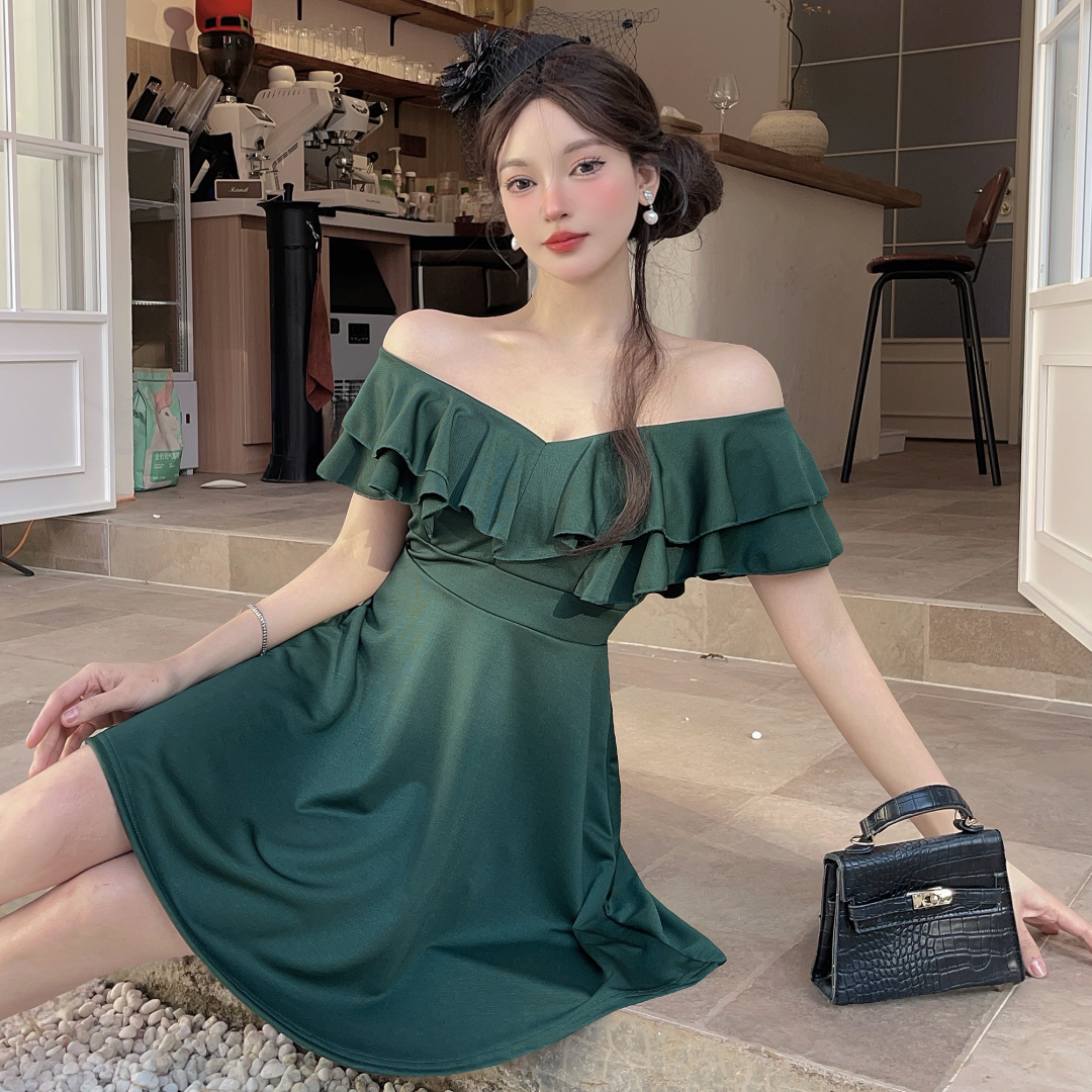 首页 > 女装批发-夏款 > 短袖连衣裙 > MY16431#复古荷叶边 V 领连衣裙女收腰显瘦小个子气质约会小礼裙