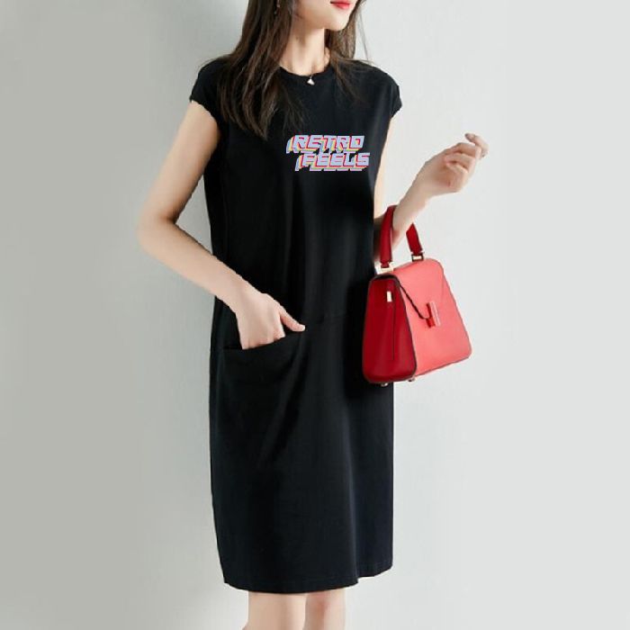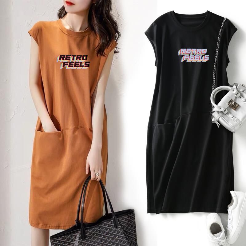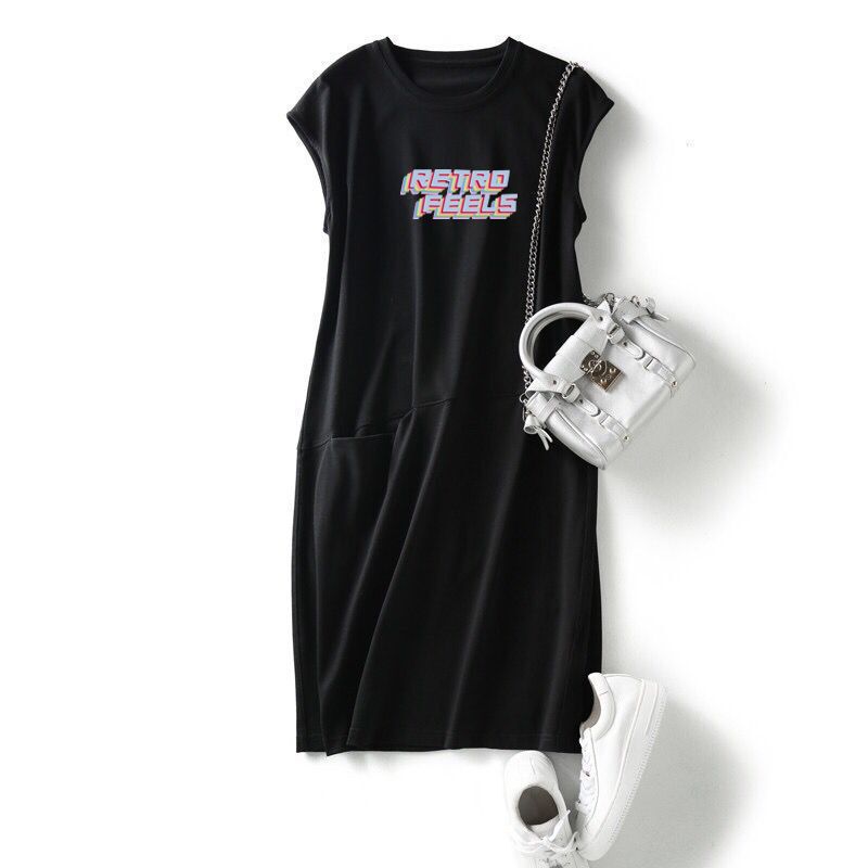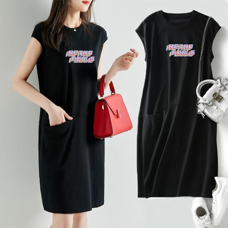 MY16435#夏季新款流行宽松显瘦印花T恤连衣裙女装韩版中长款仙女裙