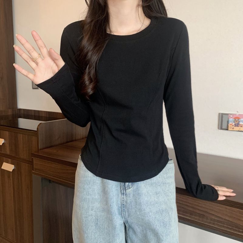 MY16439# 26支纯棉 设计感修身显瘦正肩辣妹卡腰上衣ins潮女裝貨源服裝批發