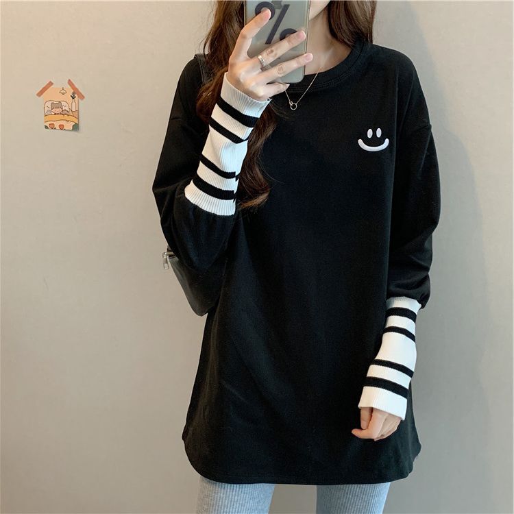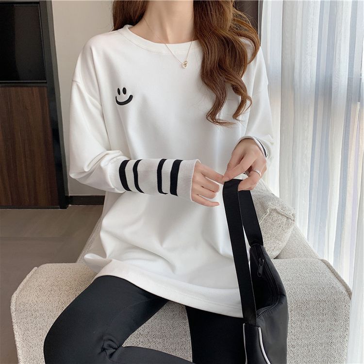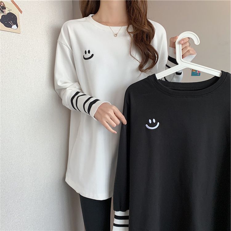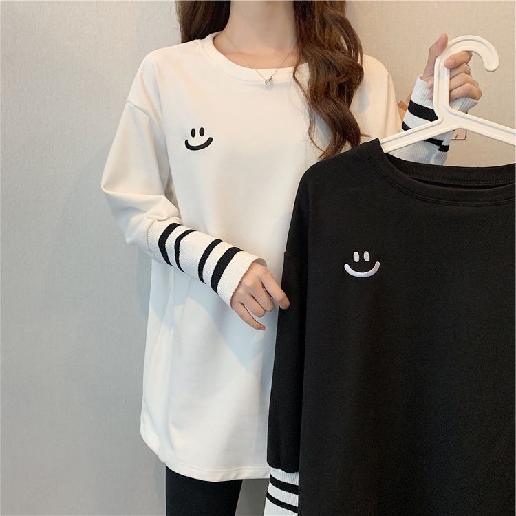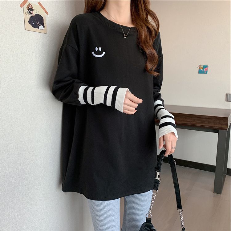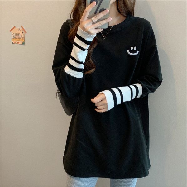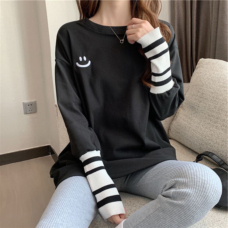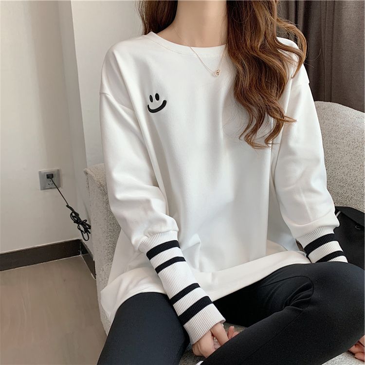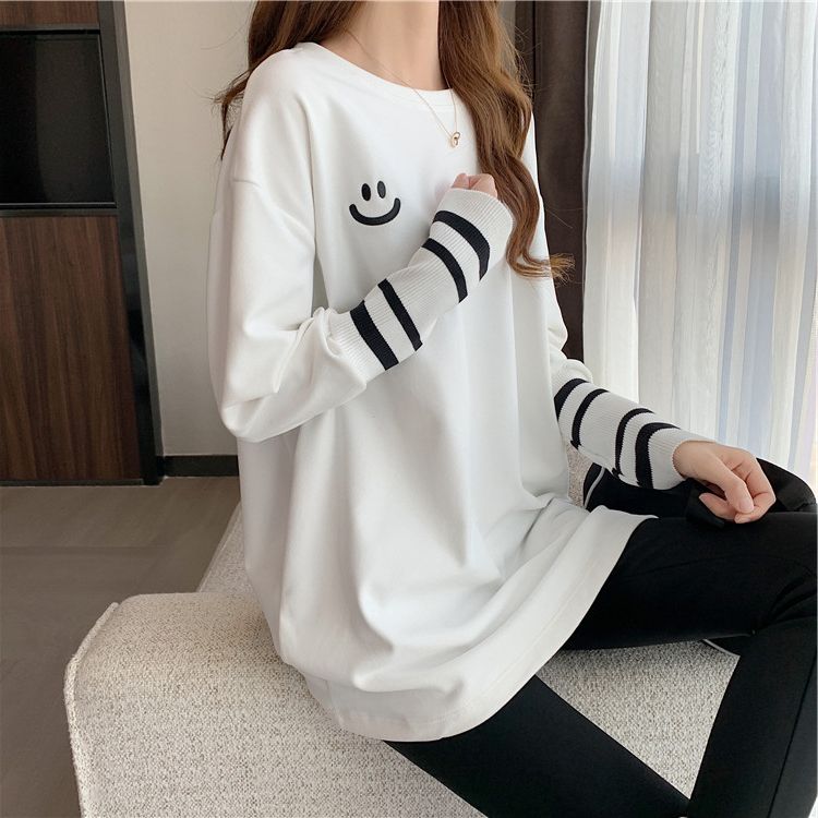 MY16442# 德绒面料 保暖刺绣长袖T恤女中长款上衣打底衫女裝貨源服裝批發