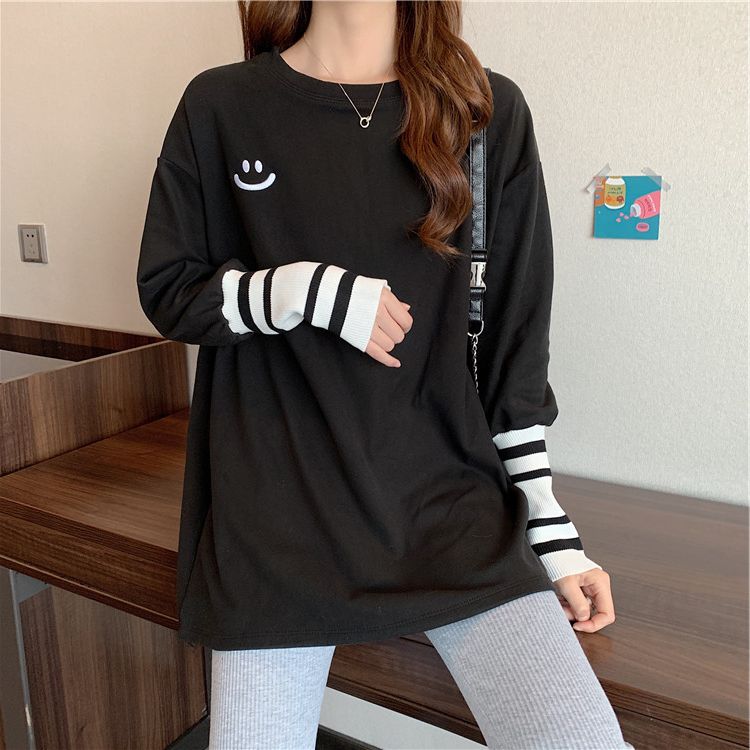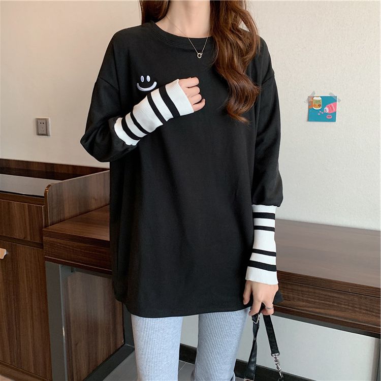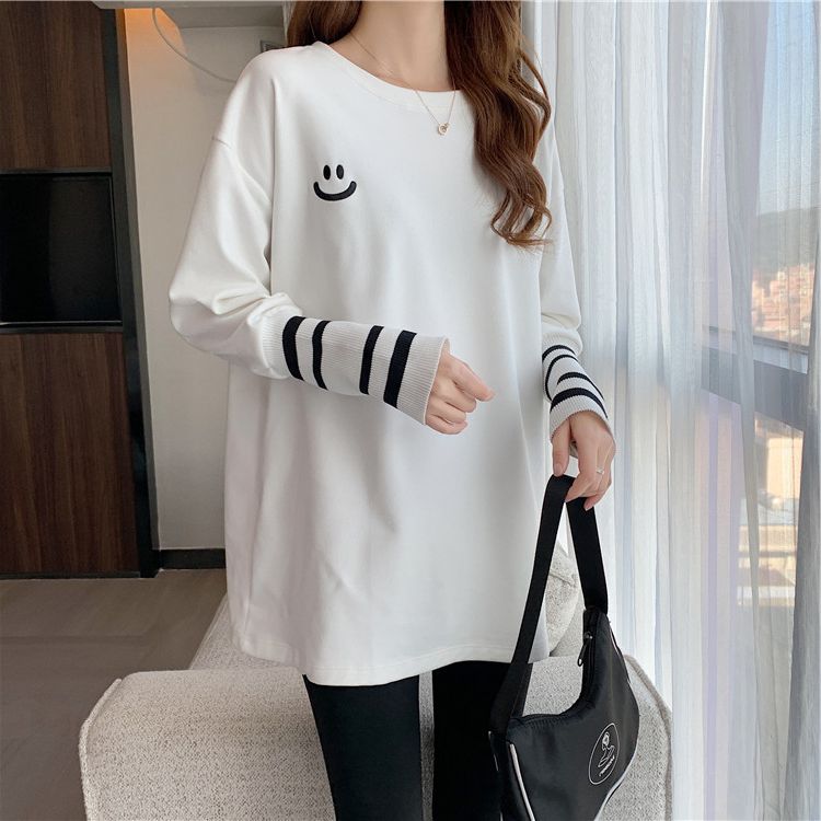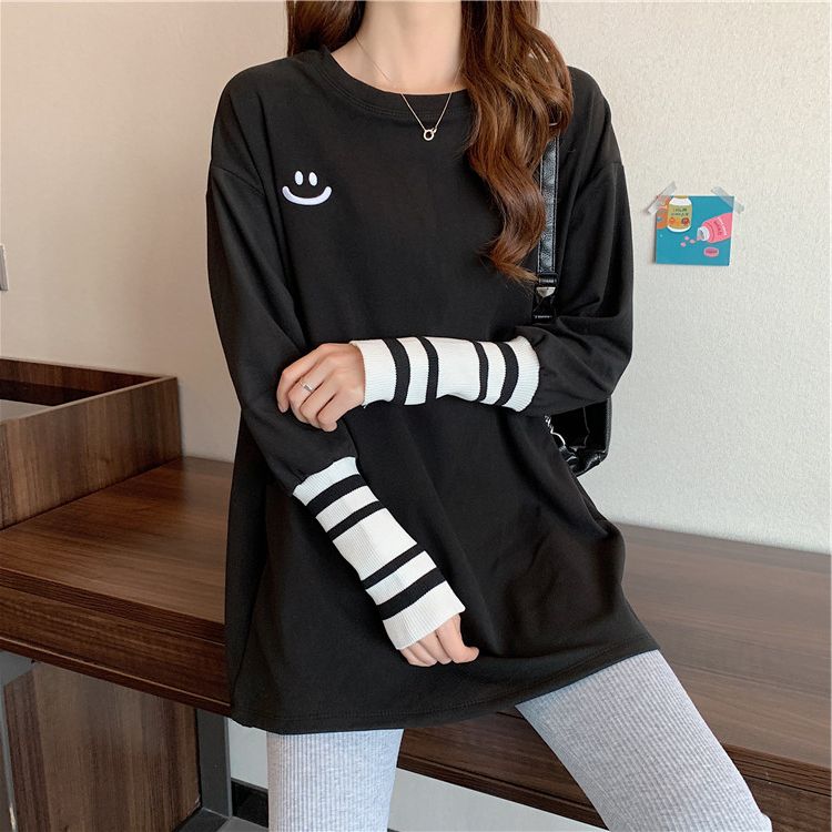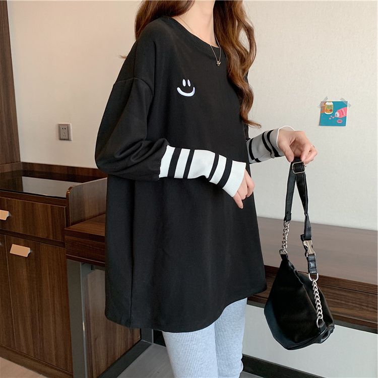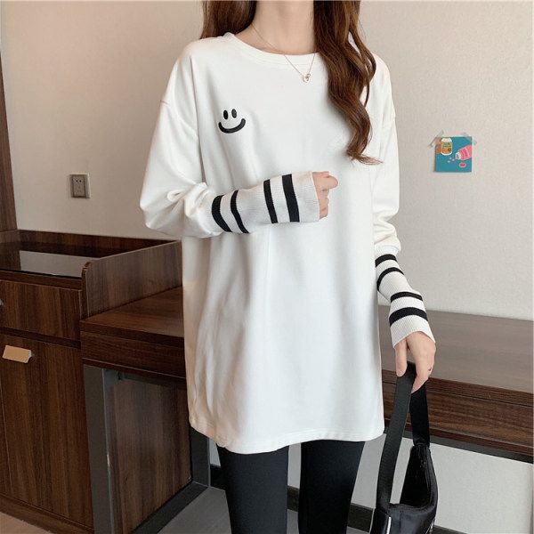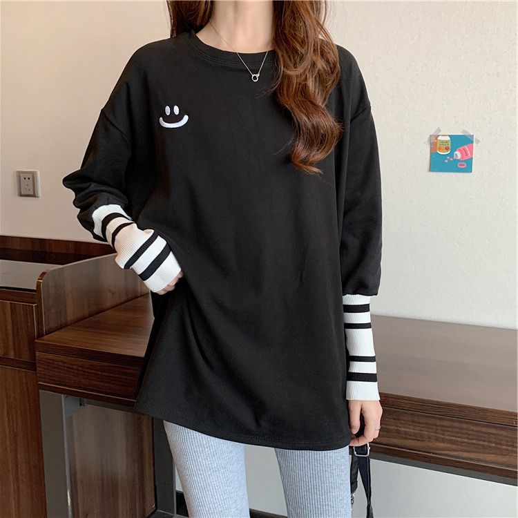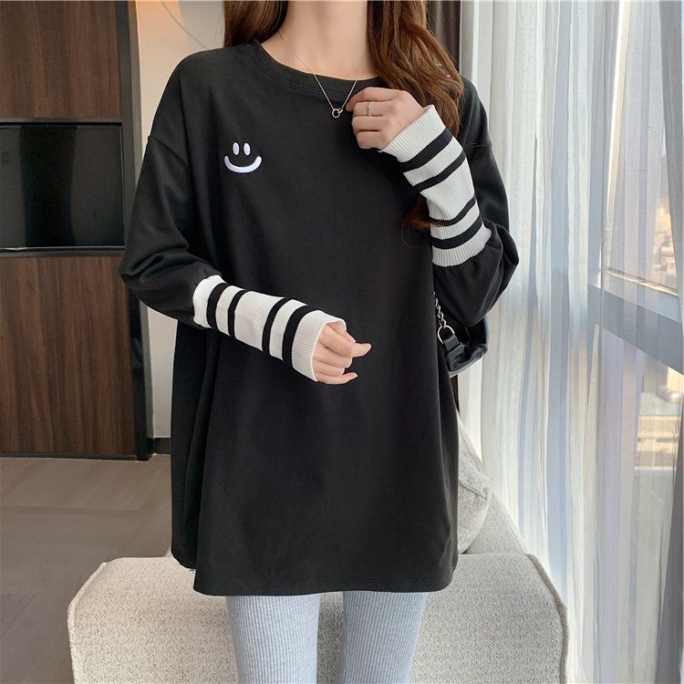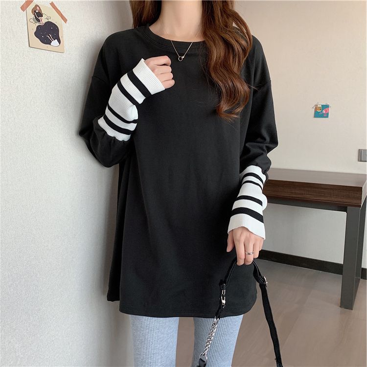 MY16442# 德绒面料 保暖刺绣长袖T恤女中长款上衣打底衫女裝貨源服裝批發