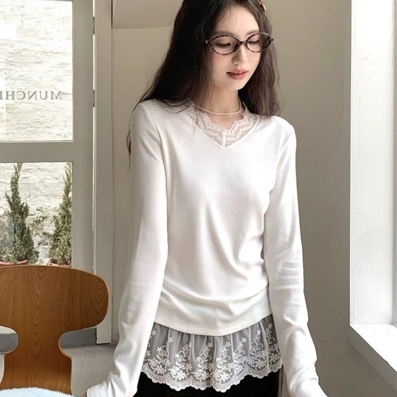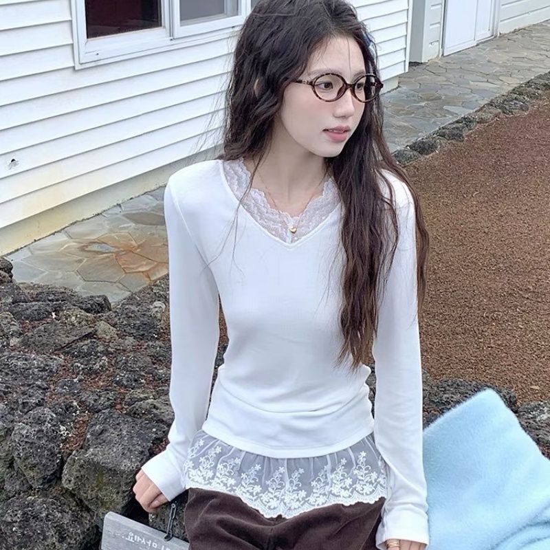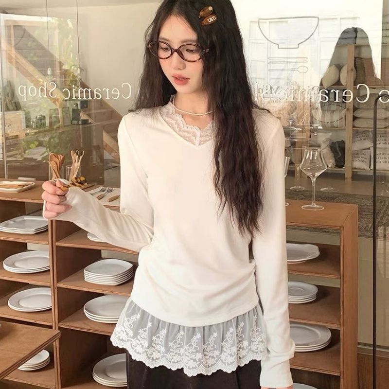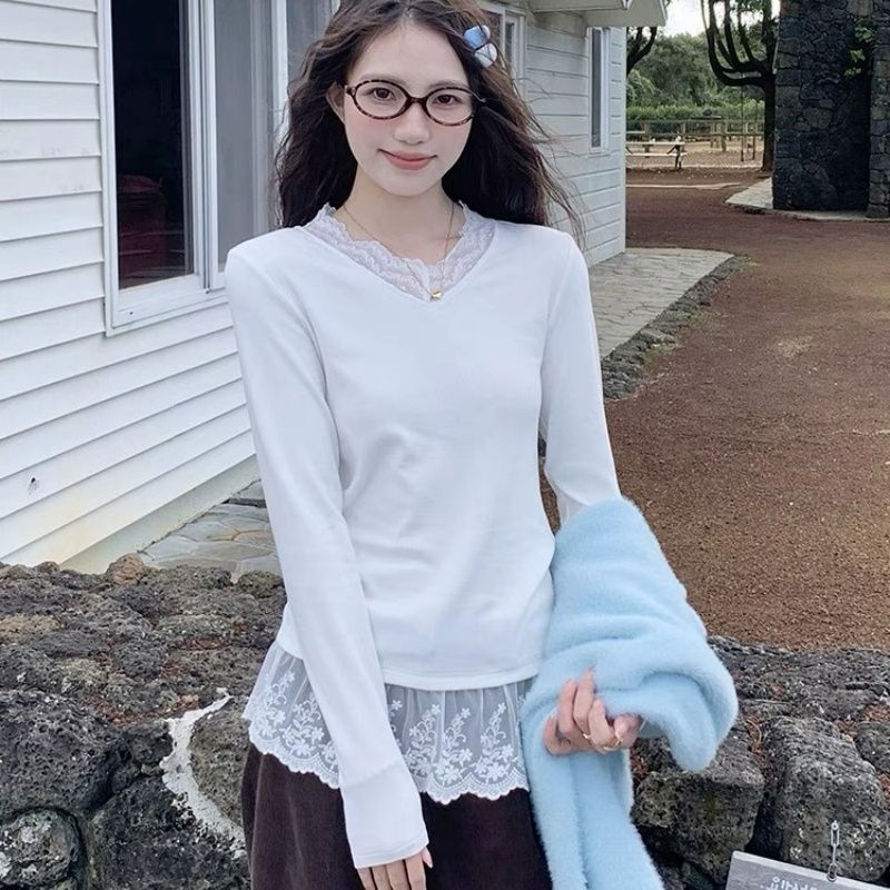 MY16447# 德绒 法式复古温柔风甜美小众内搭叠穿上衣女裝貨源服裝批發