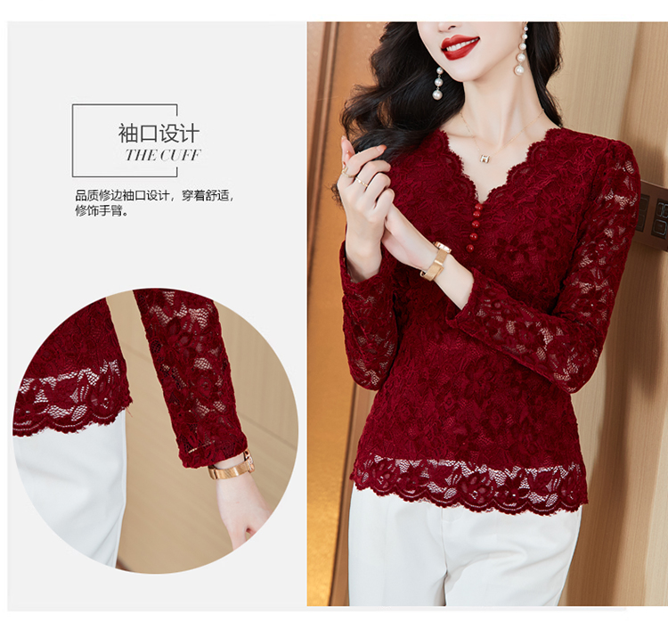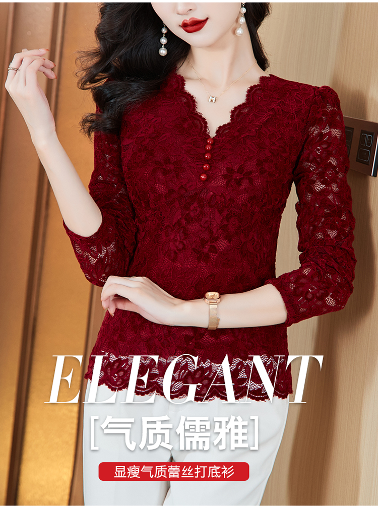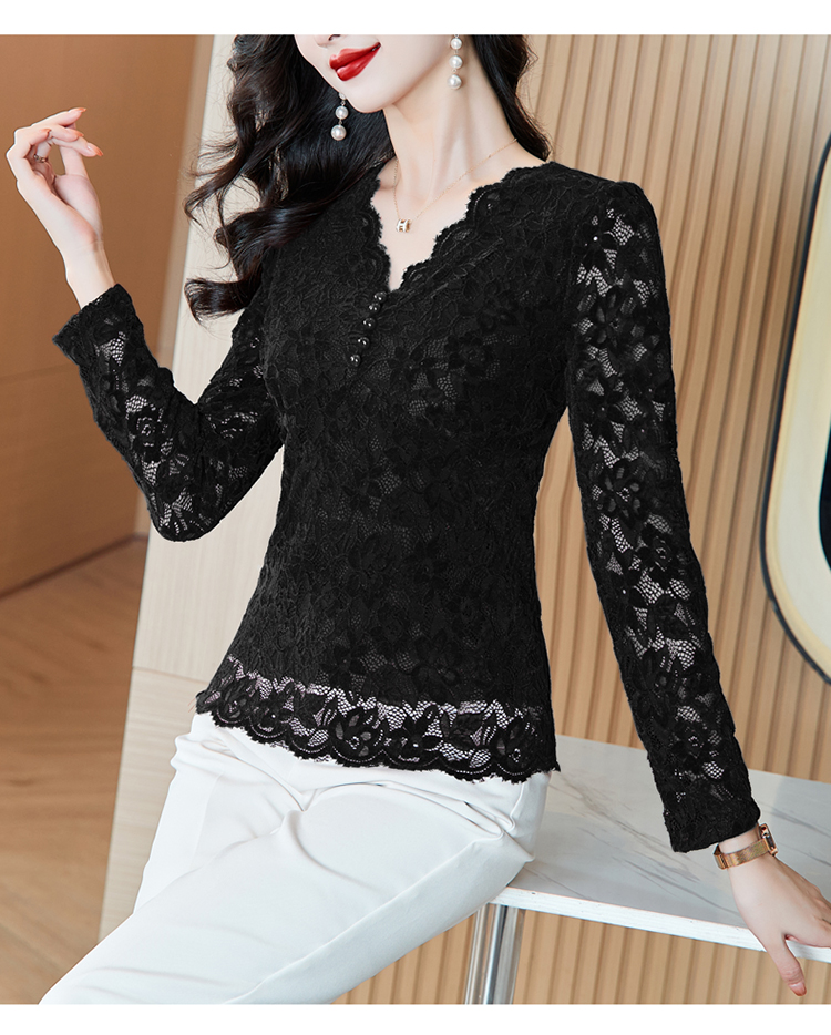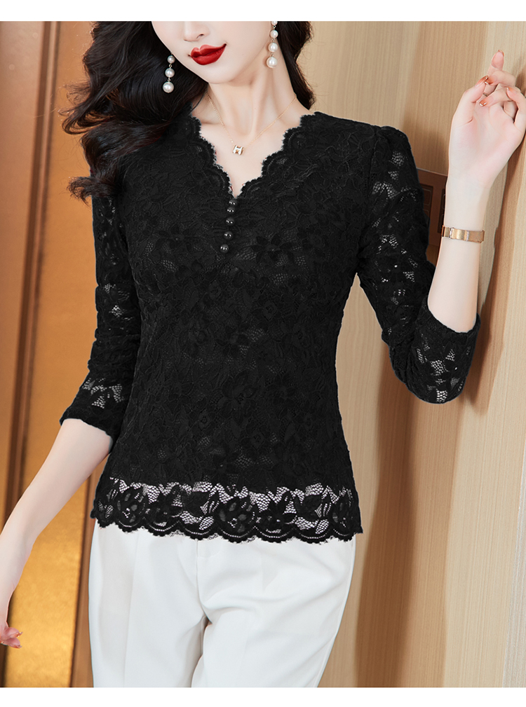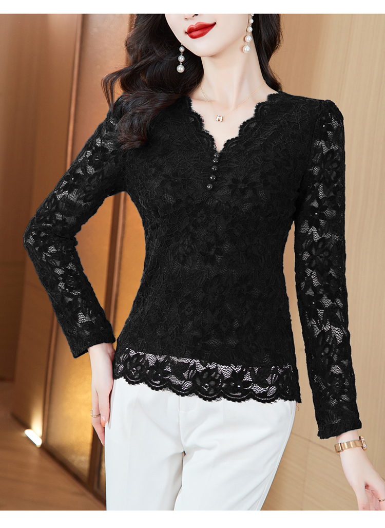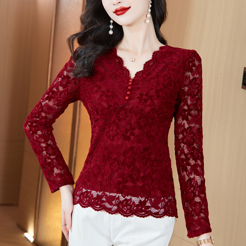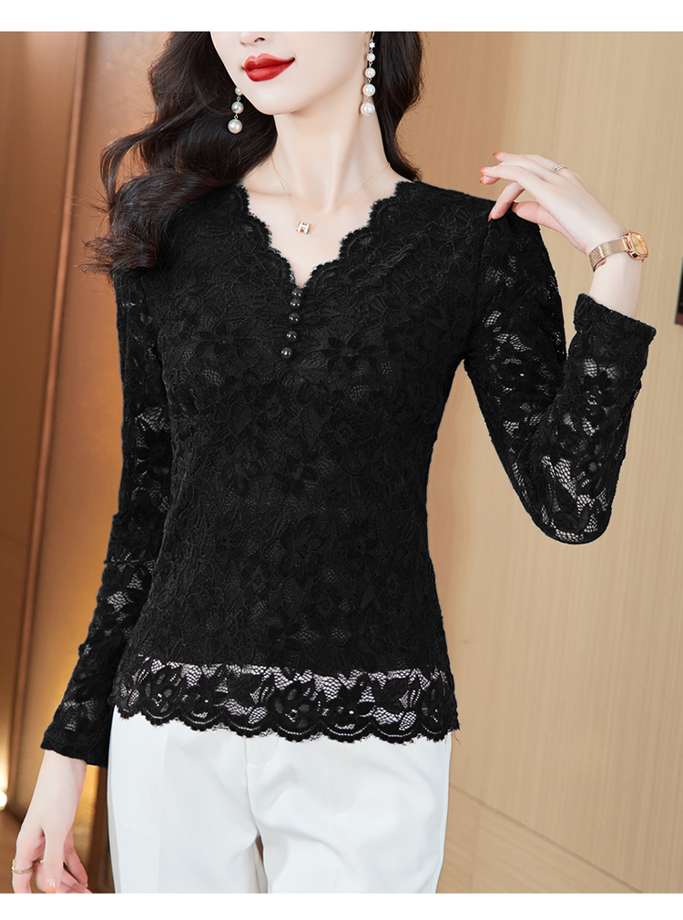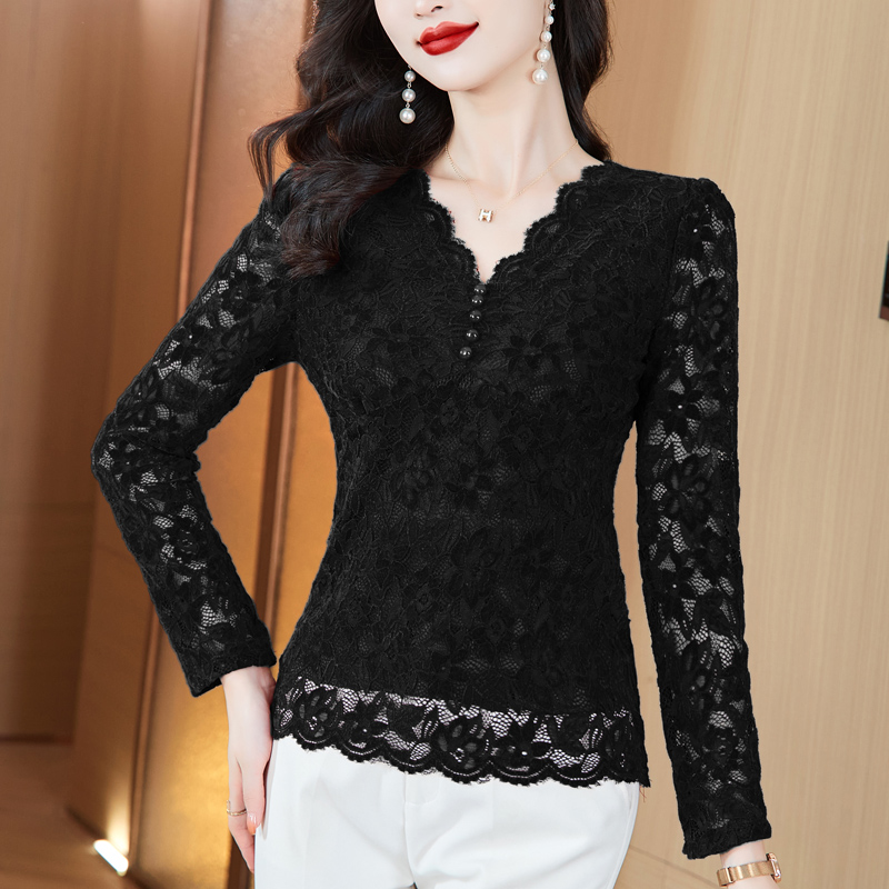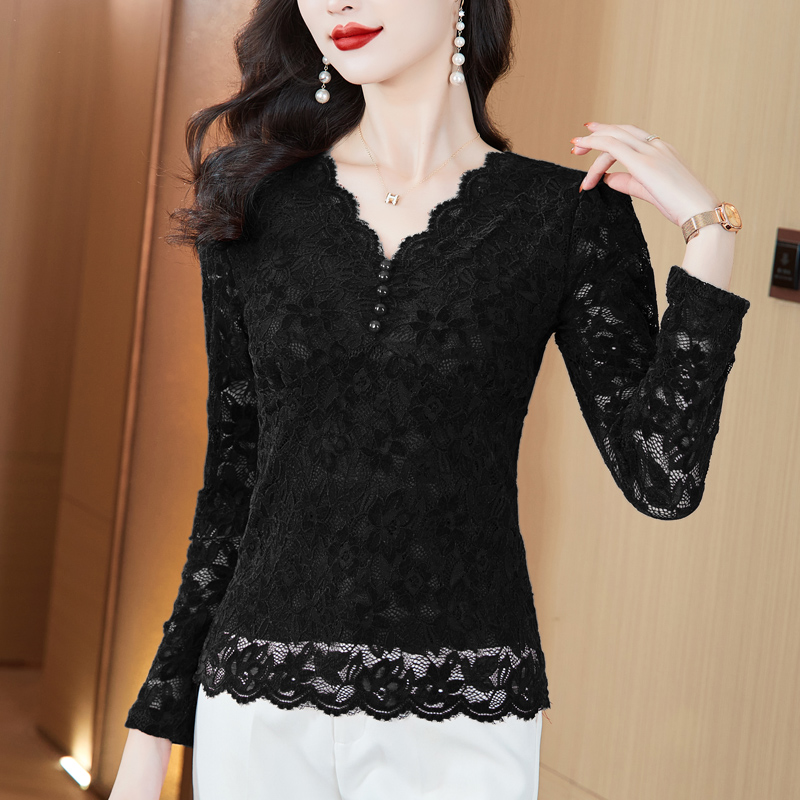 MY16490# 蕾丝打底衫女内搭外穿领长袖宽松时尚洋气法式镂空上衣女裝貨源服裝批發
