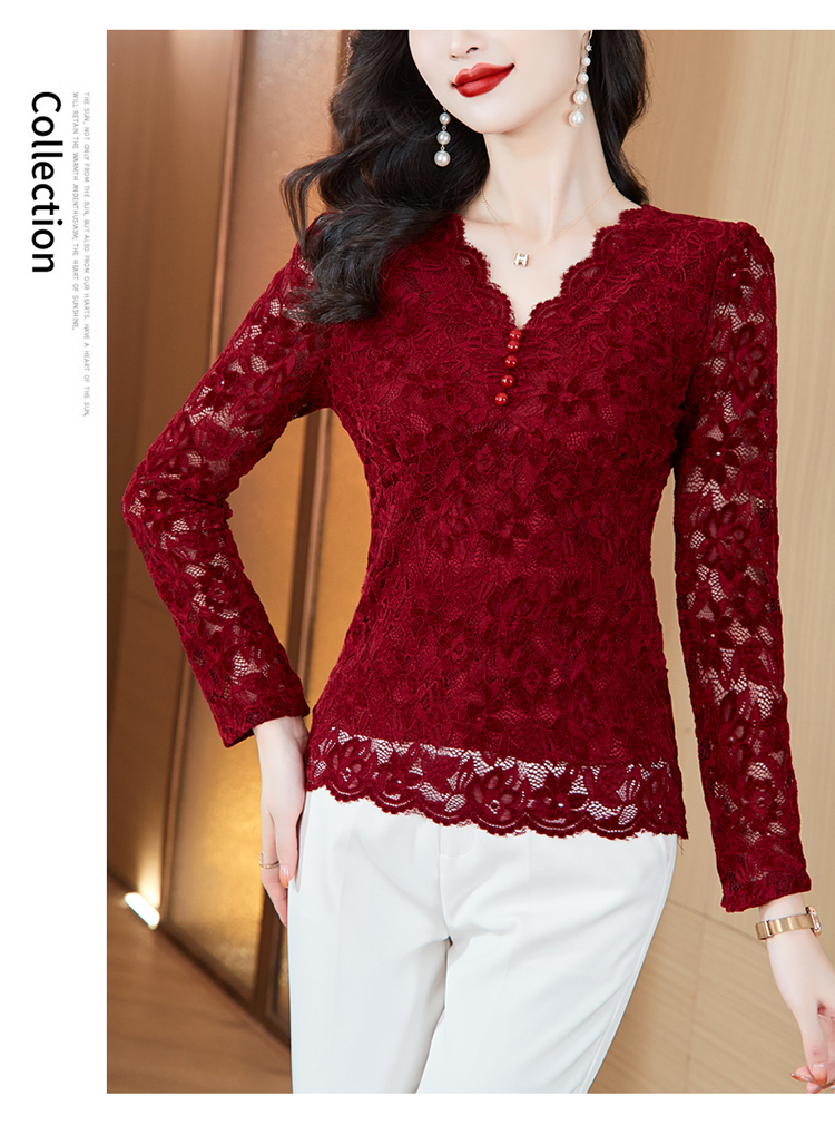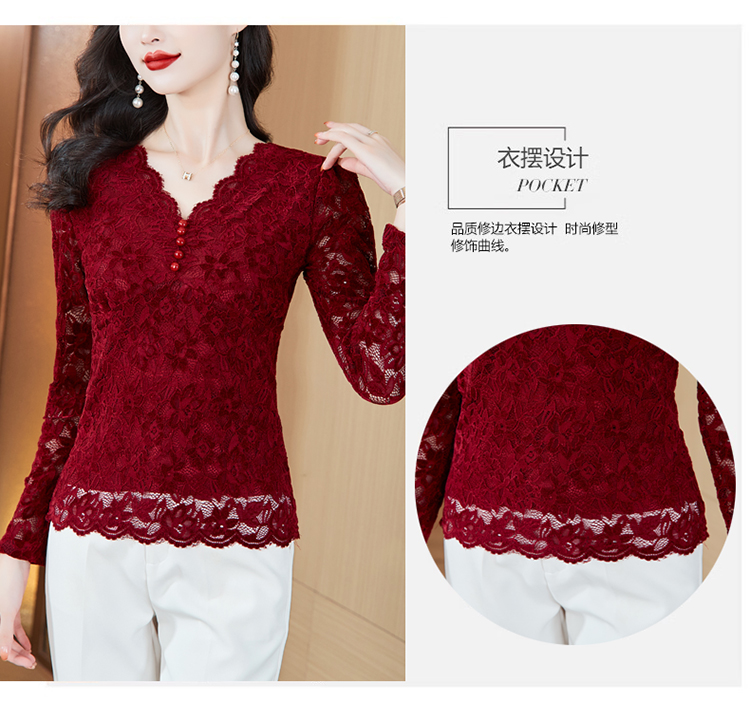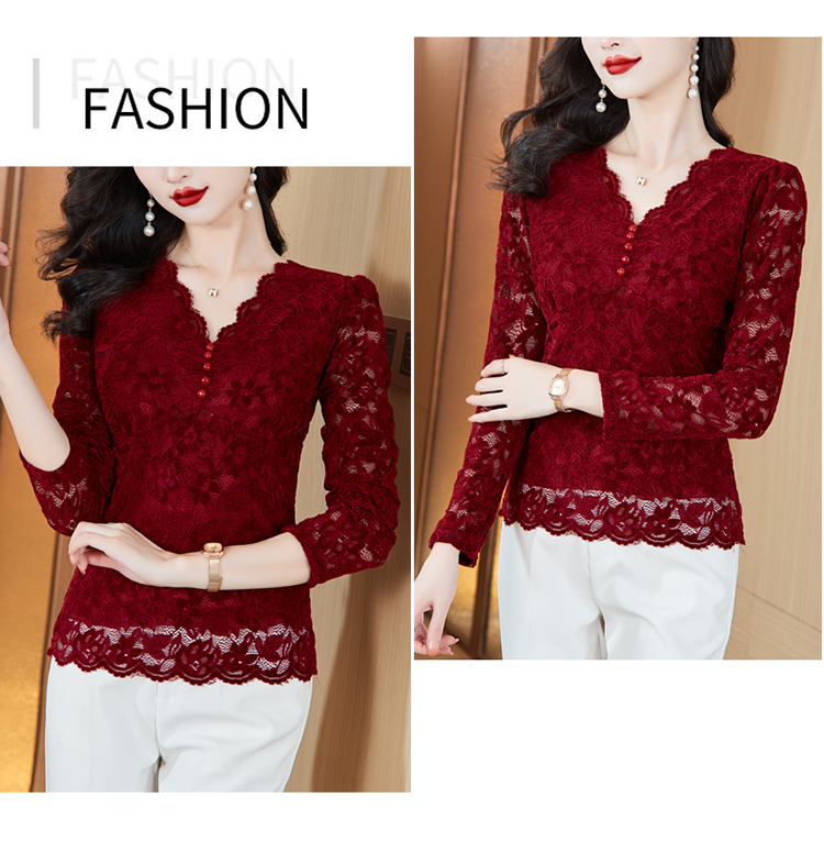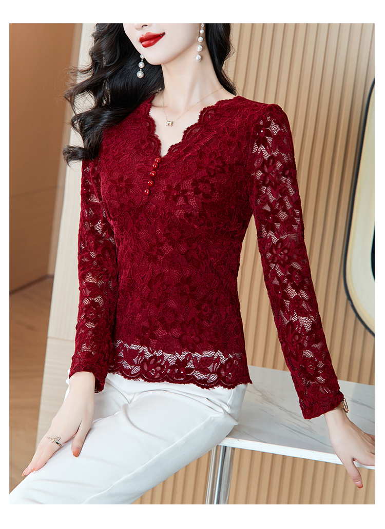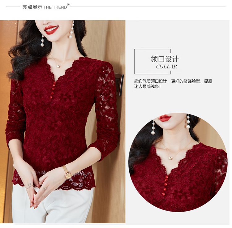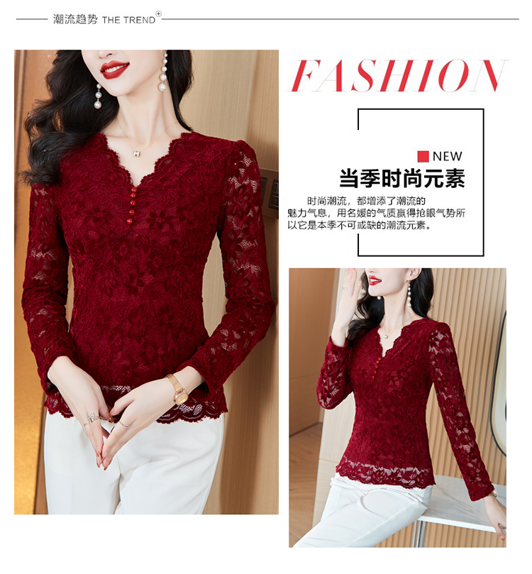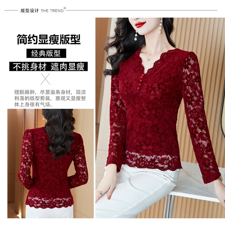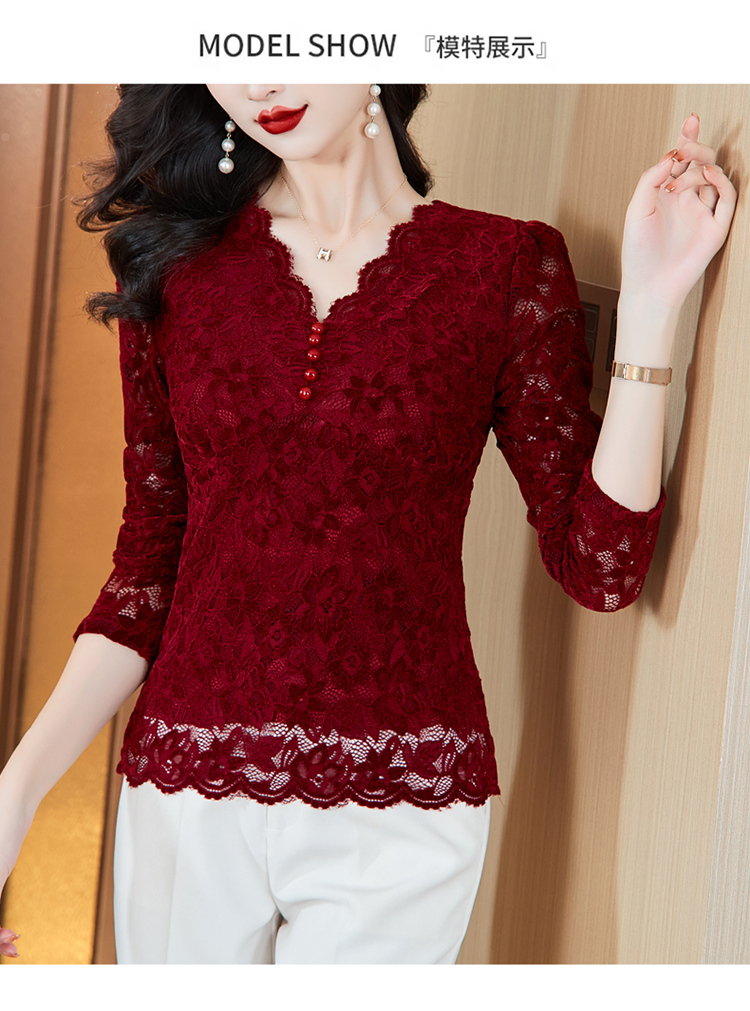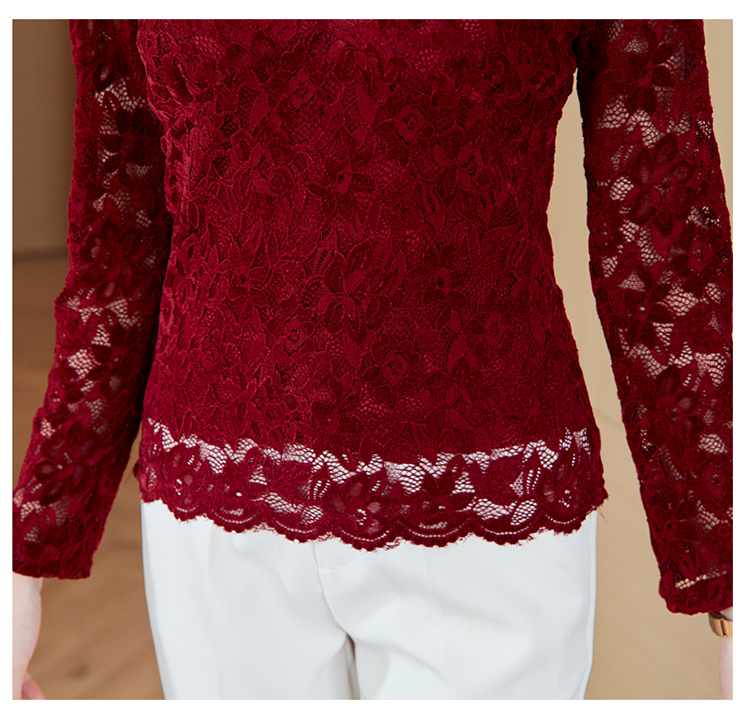MY16490# 蕾丝打底衫女内搭外穿领长袖宽松时尚洋气法式镂空上衣女裝貨源服裝批發