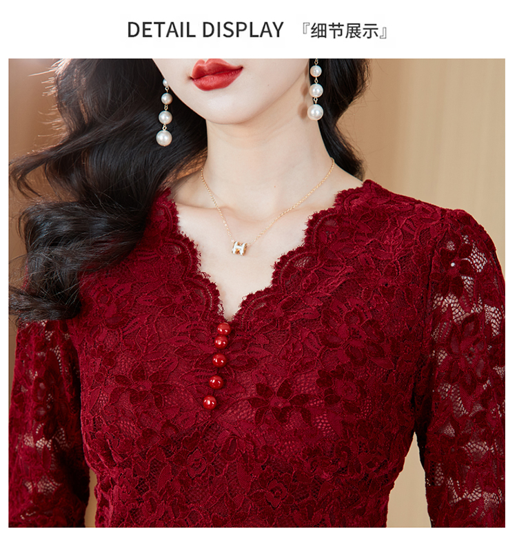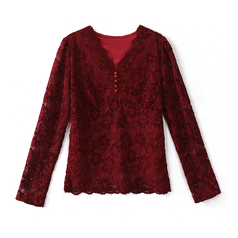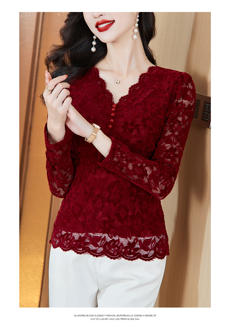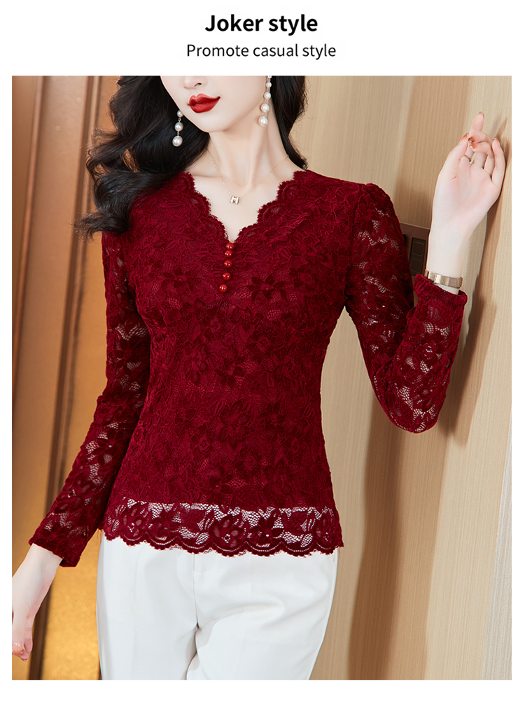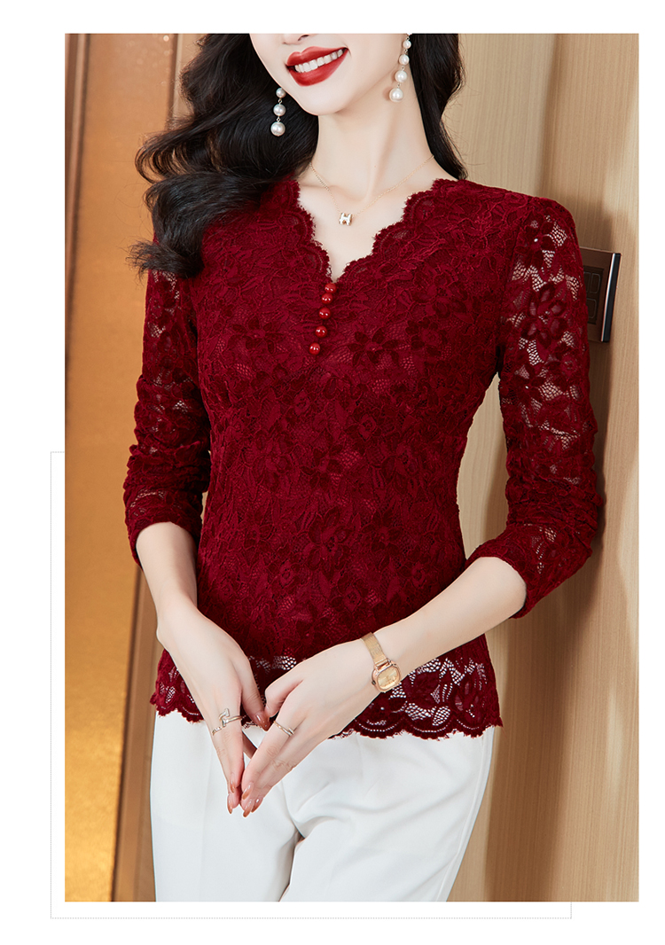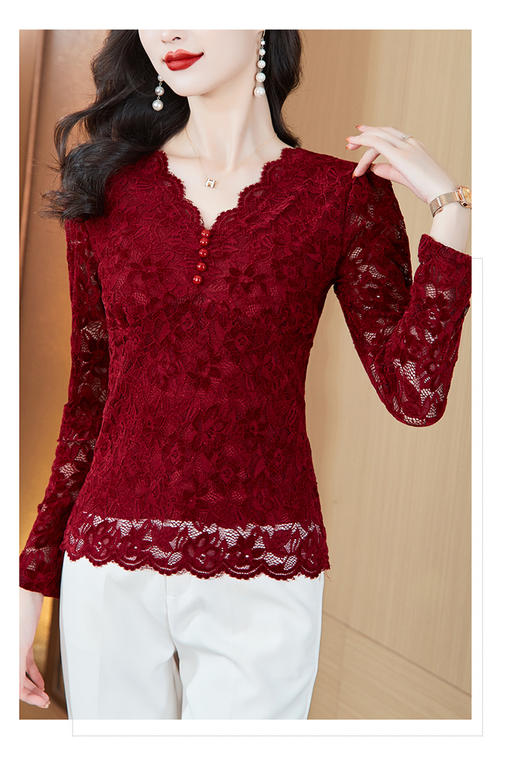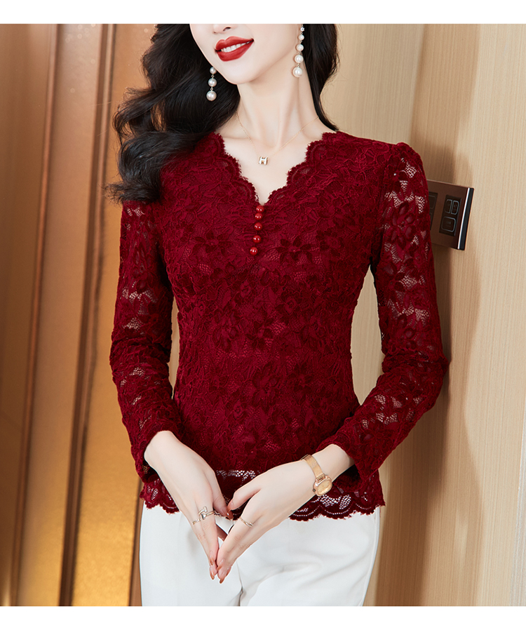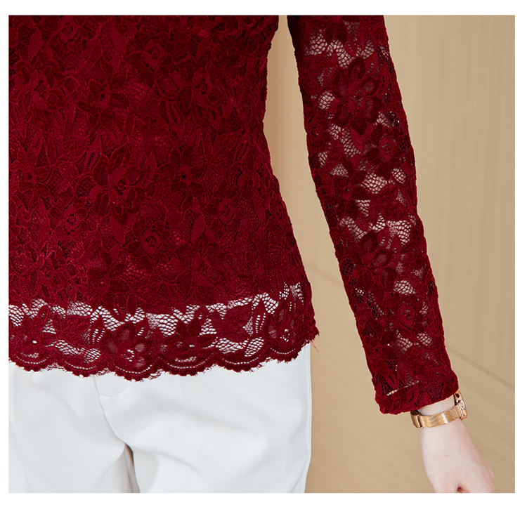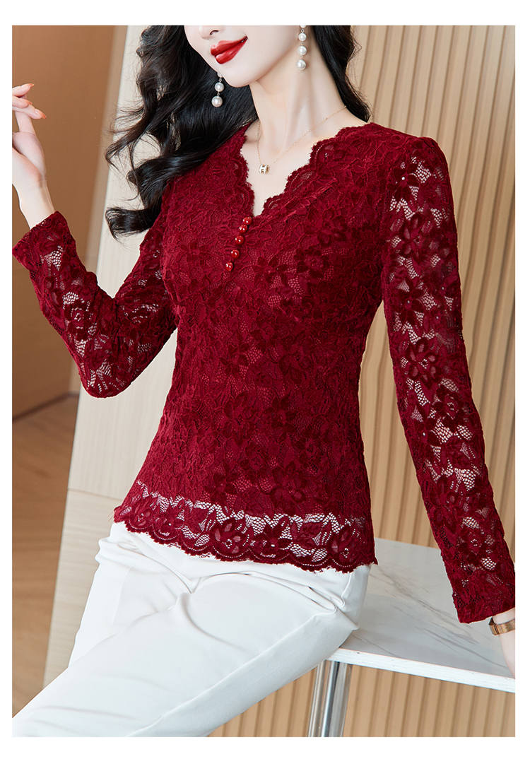MY16490# 蕾丝打底衫女内搭外穿领长袖宽松时尚洋气法式镂空上衣女裝貨源服裝批發
