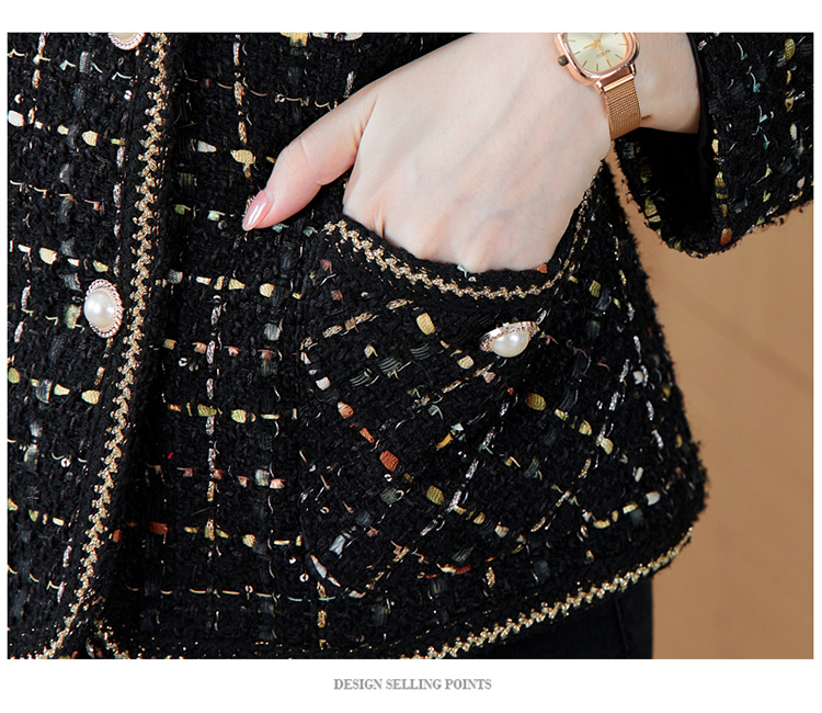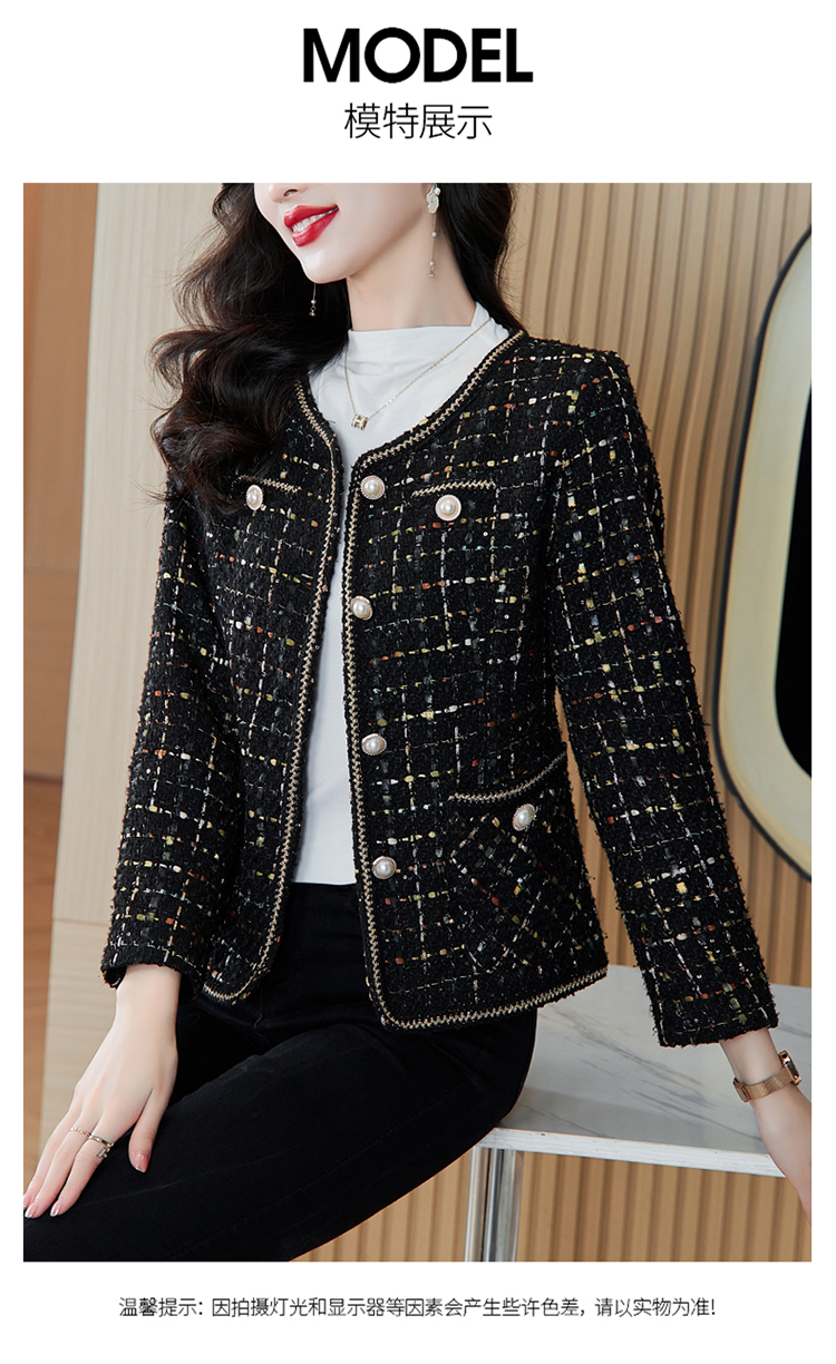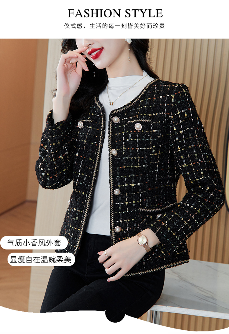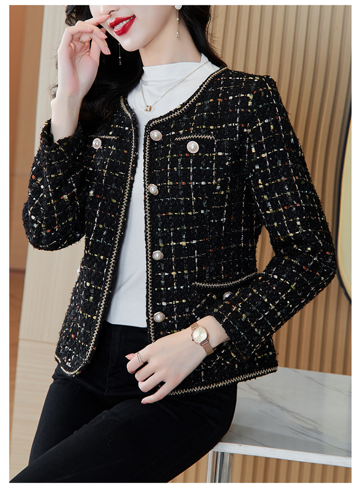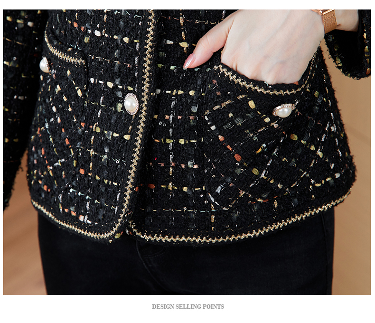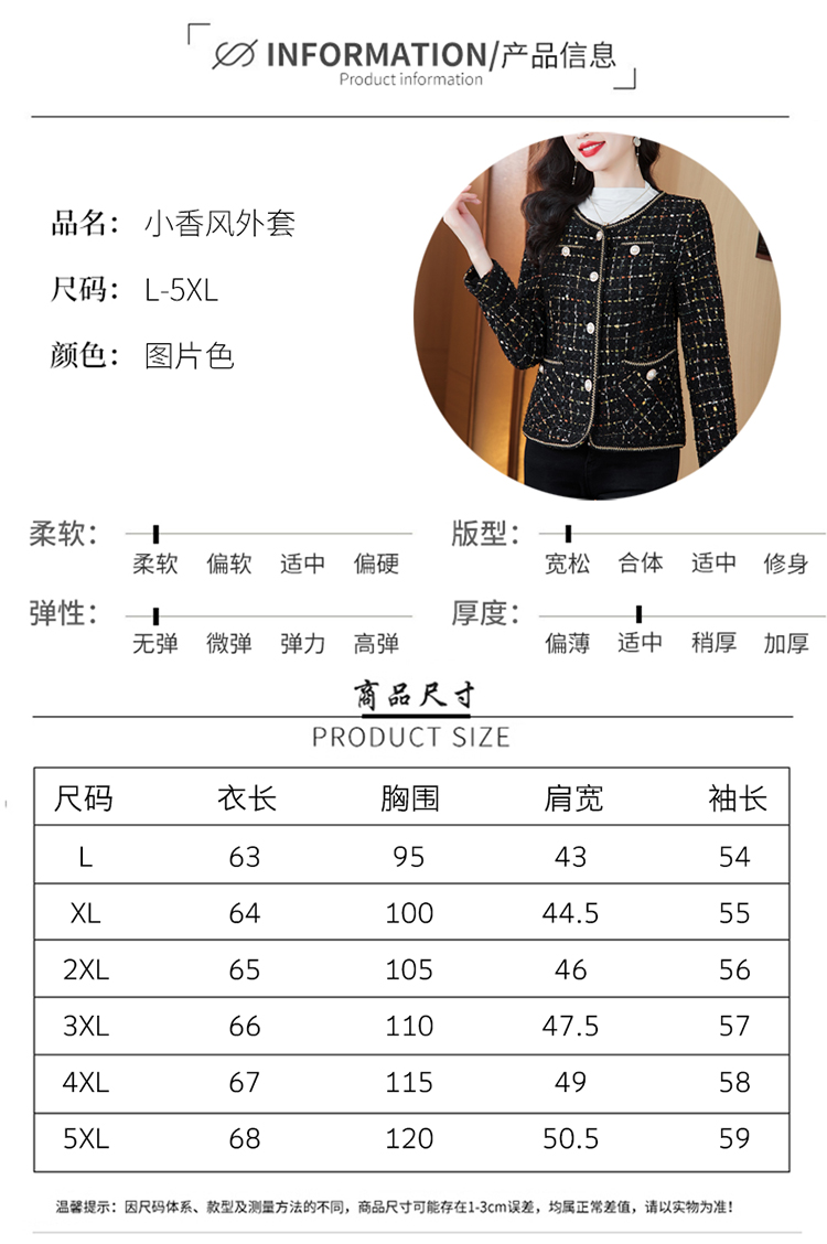MY16491# 小香风外套新款黑色亮丝短款法式气质大码上衣女裝貨源服裝批發