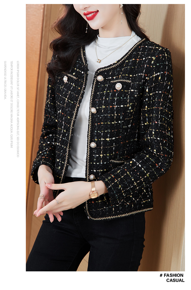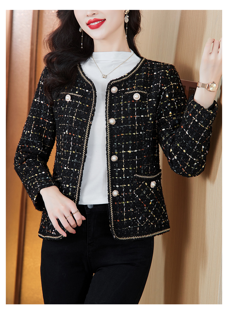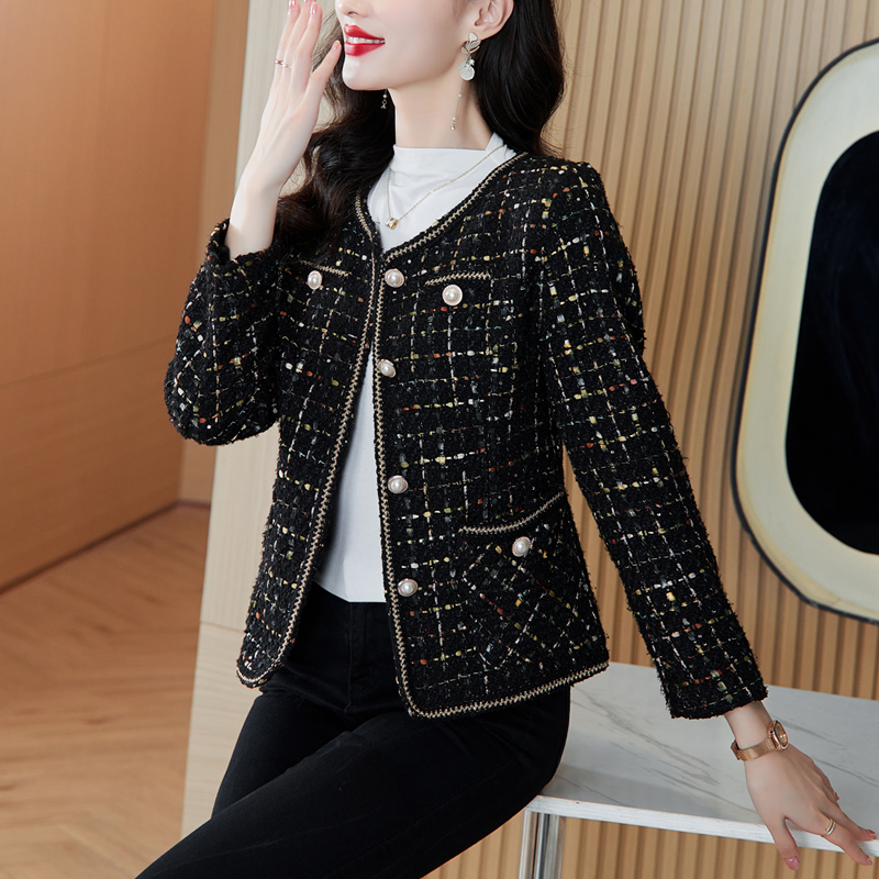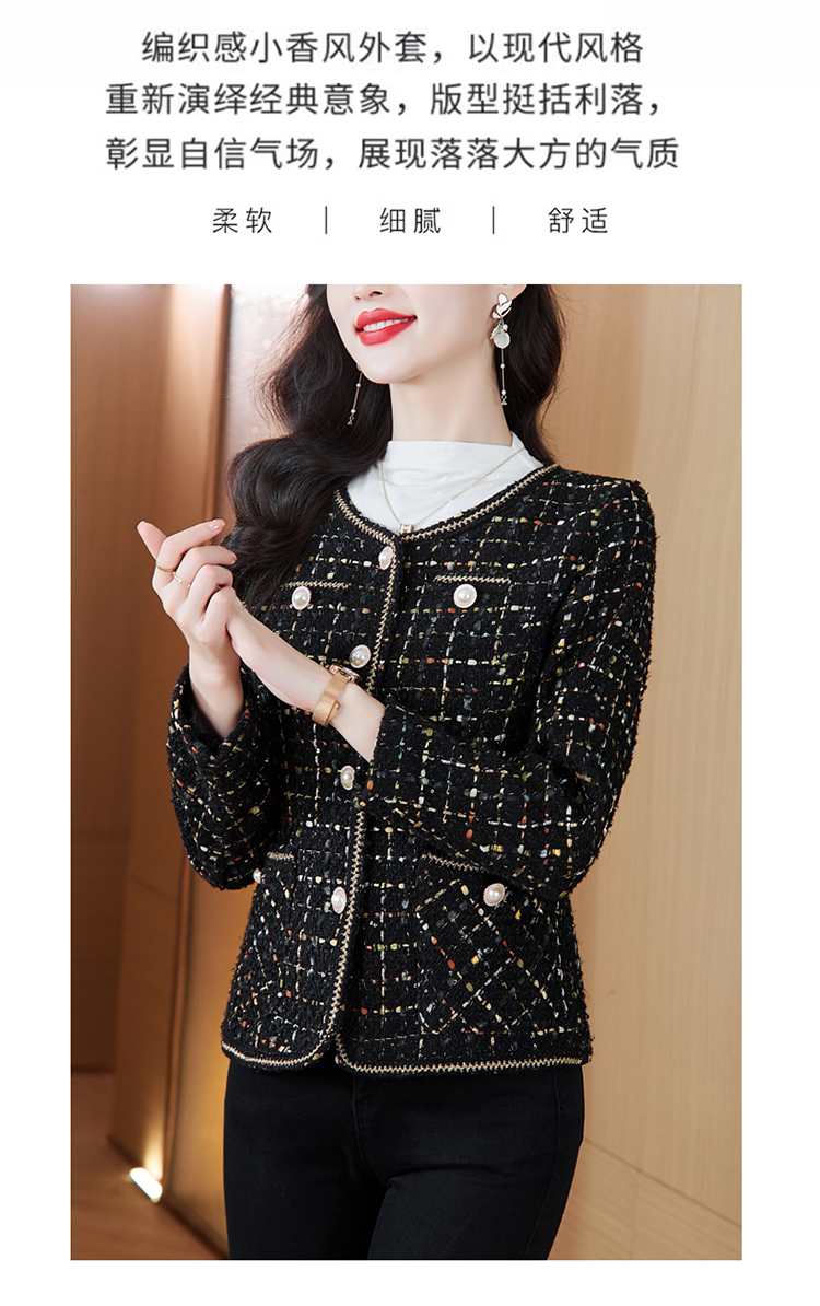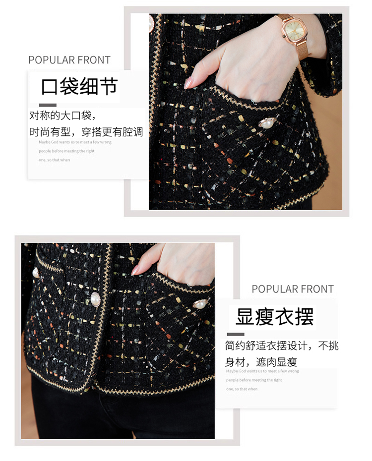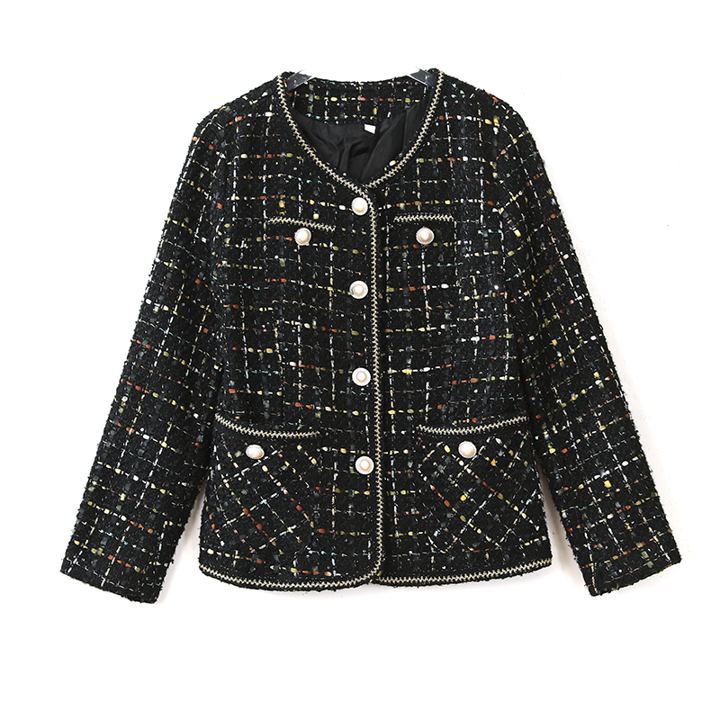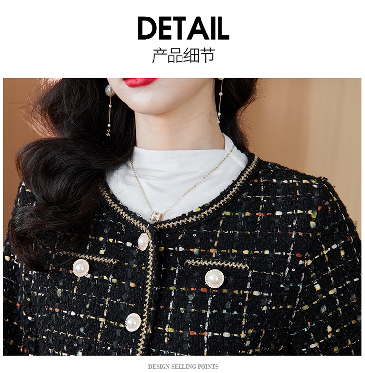 MY16491# 小香风外套新款黑色亮丝短款法式气质大码上衣女裝貨源服裝批發
