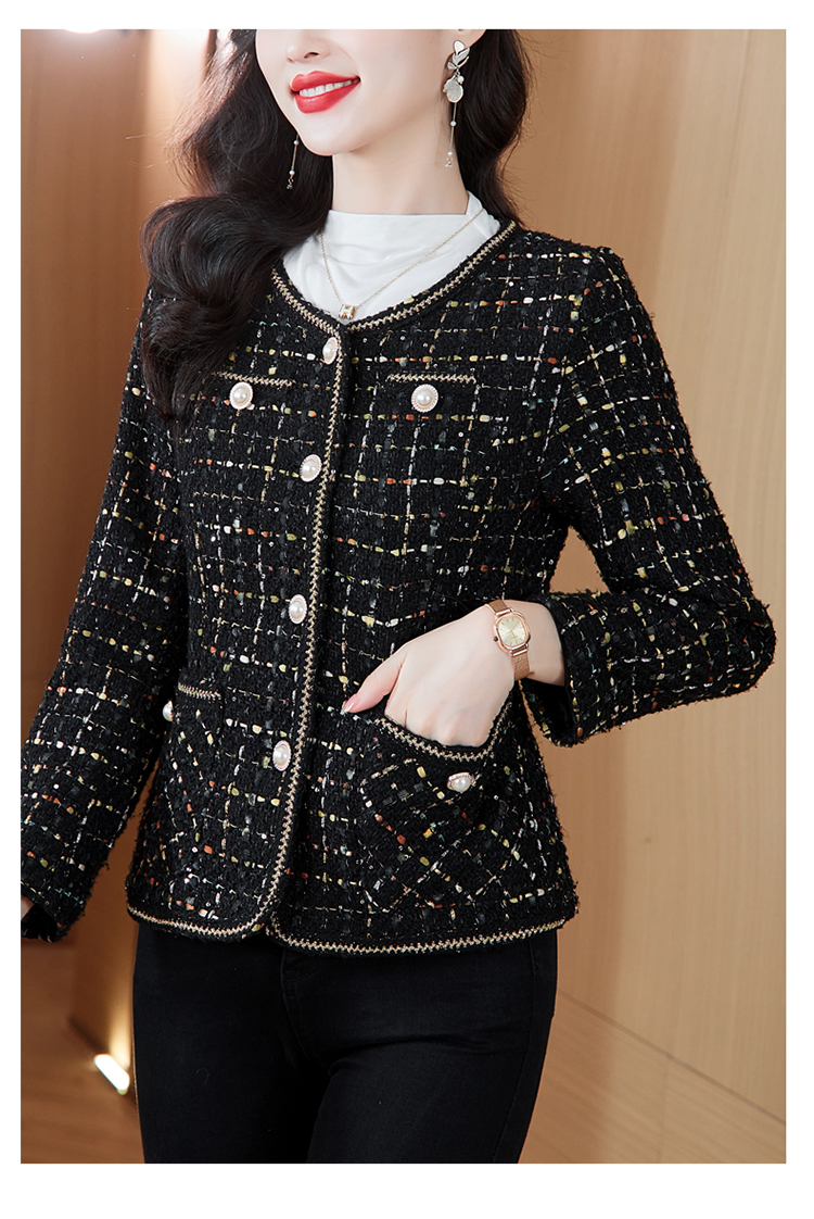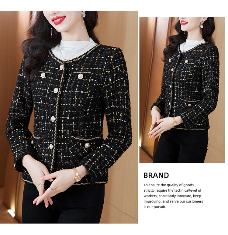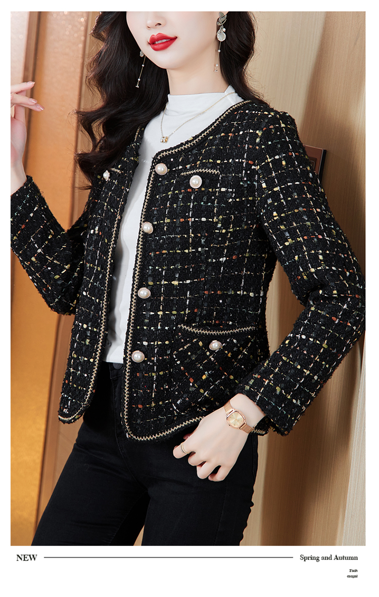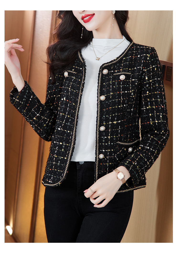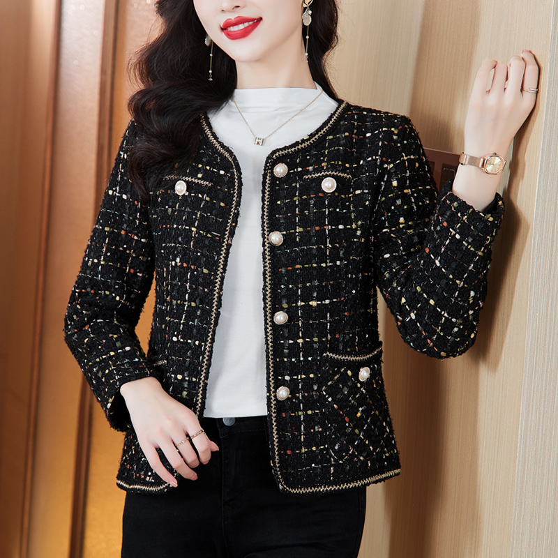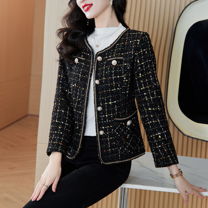 MY16491# 小香风外套新款黑色亮丝短款法式气质大码上衣女裝貨源服裝批發