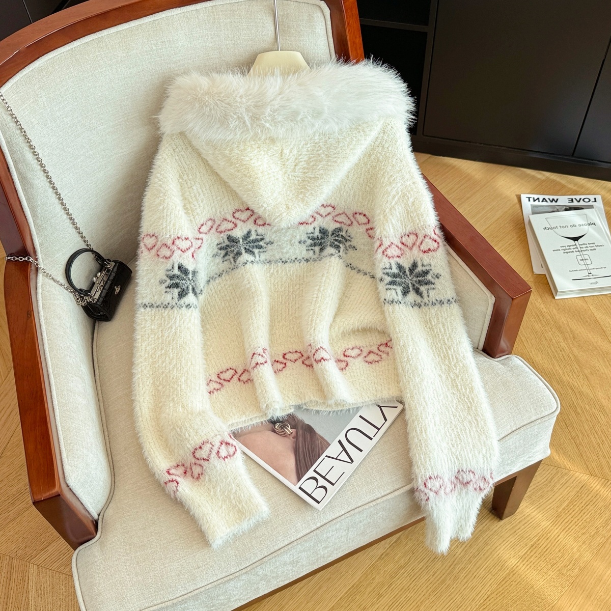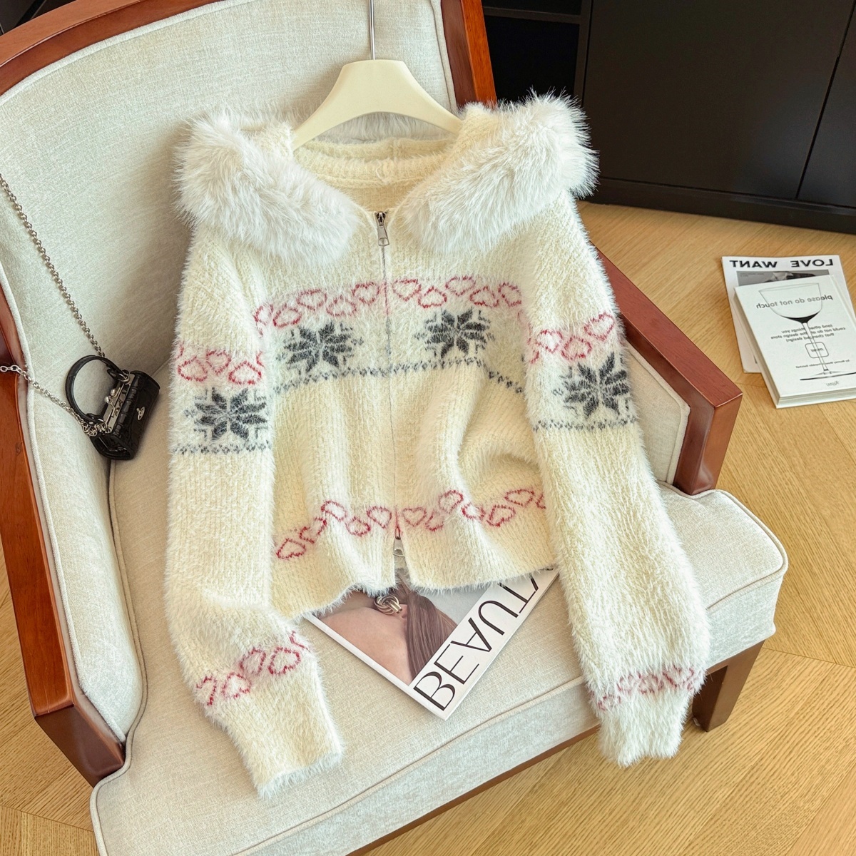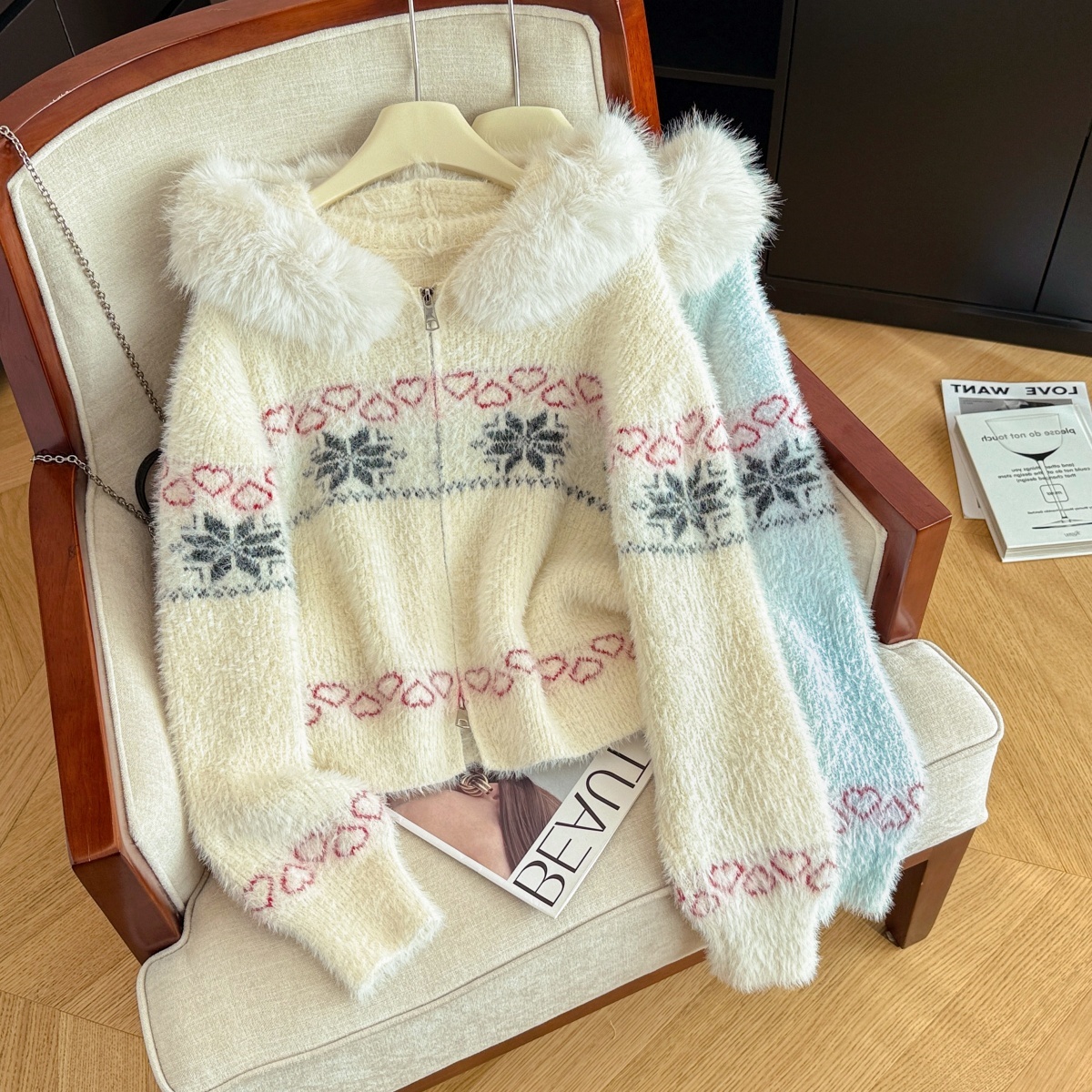 MY16550# 高级感毛绒绒连帽舒适毛衣外套新款宽松显瘦气质开衫女裝貨源服裝批發