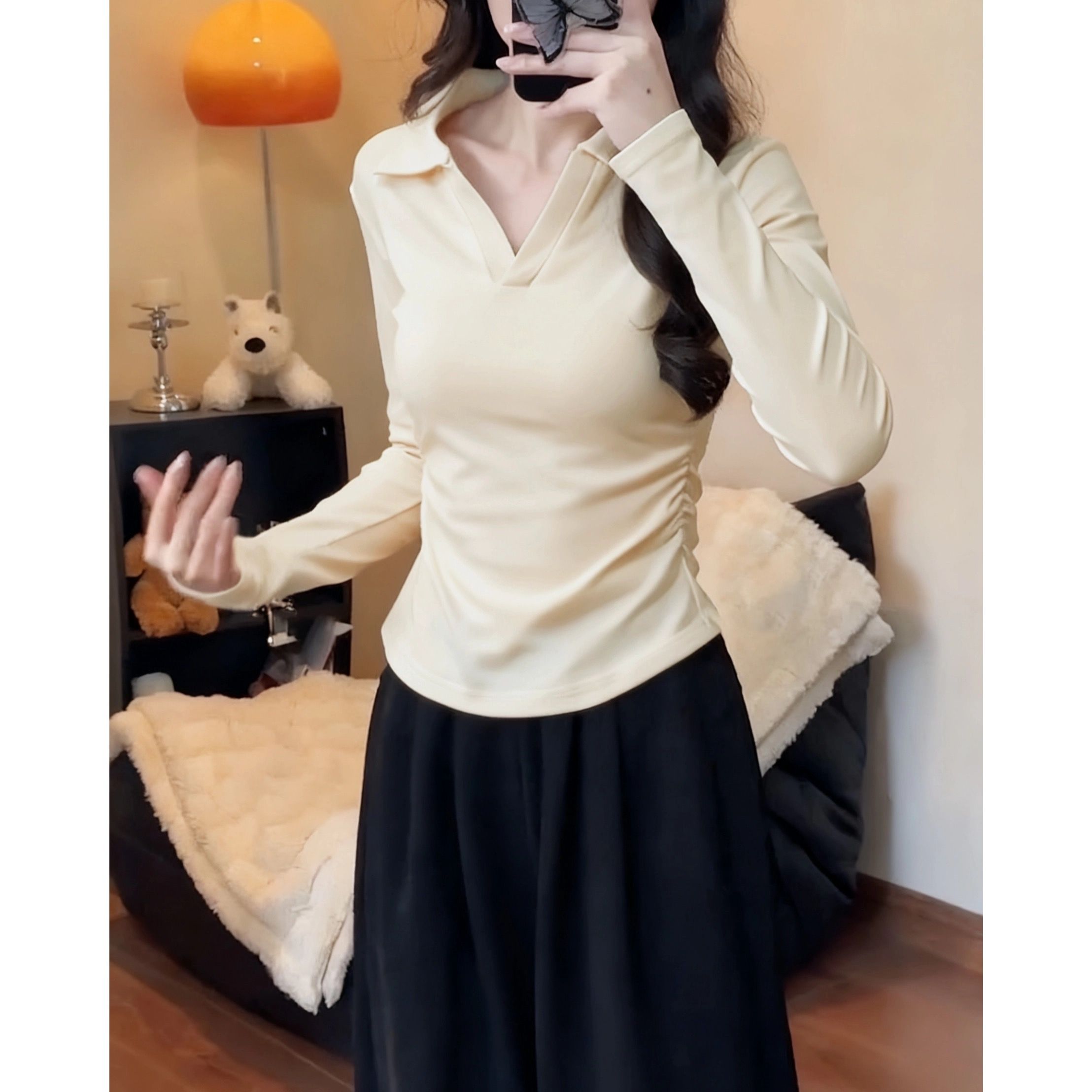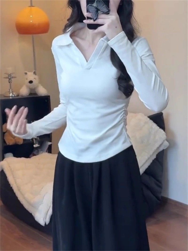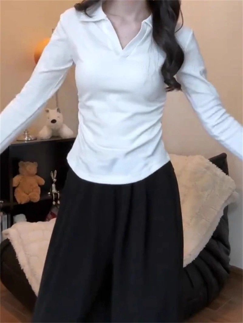 MY16557# 新款长袖打底衫女大码修身内搭收腰POLO衫T恤上衣女裝貨源服裝批發