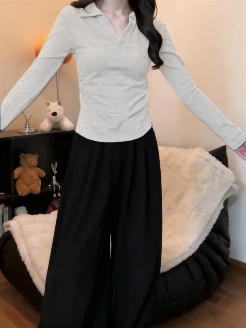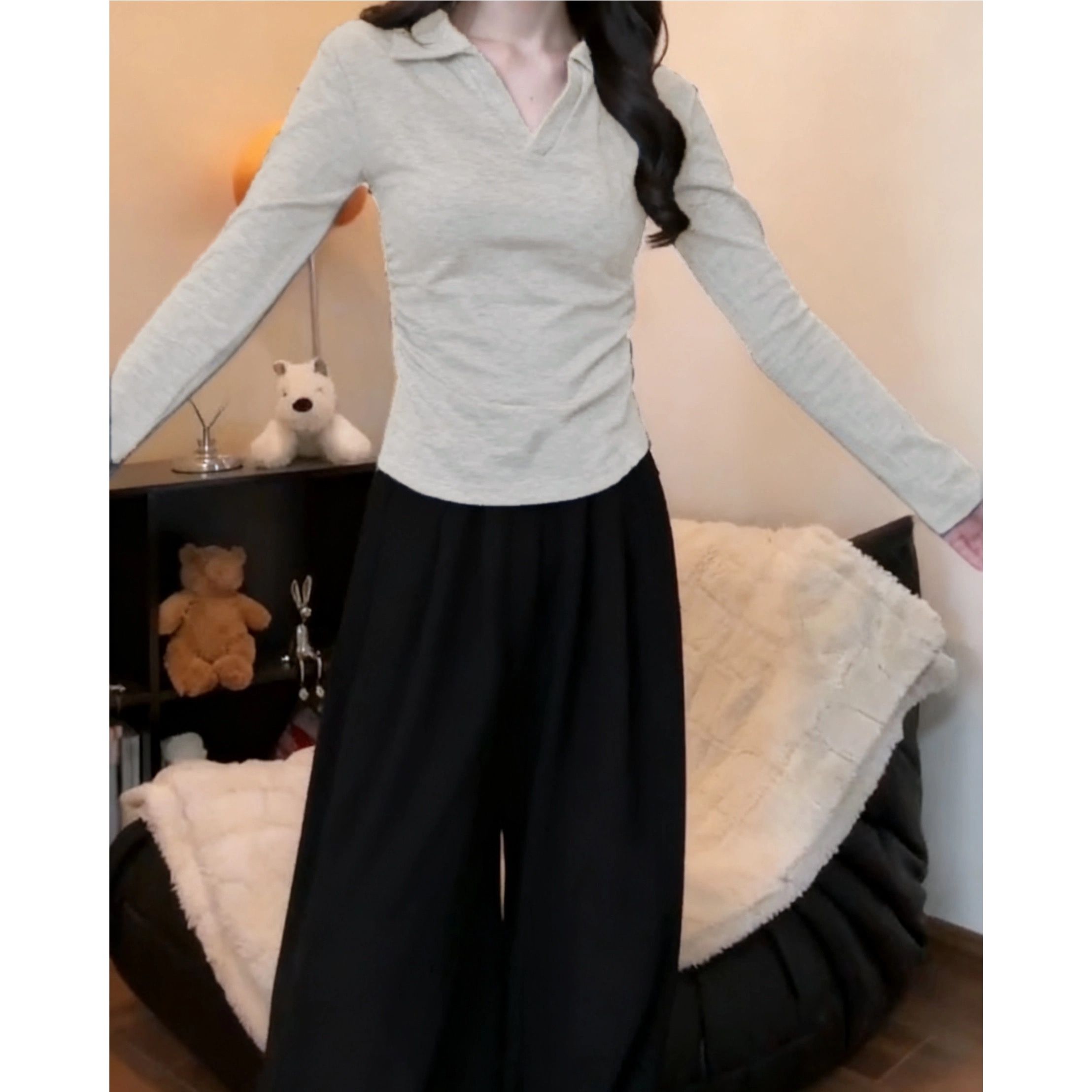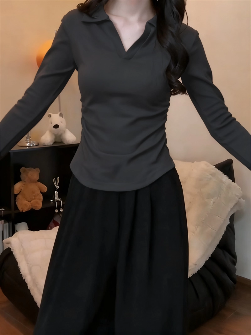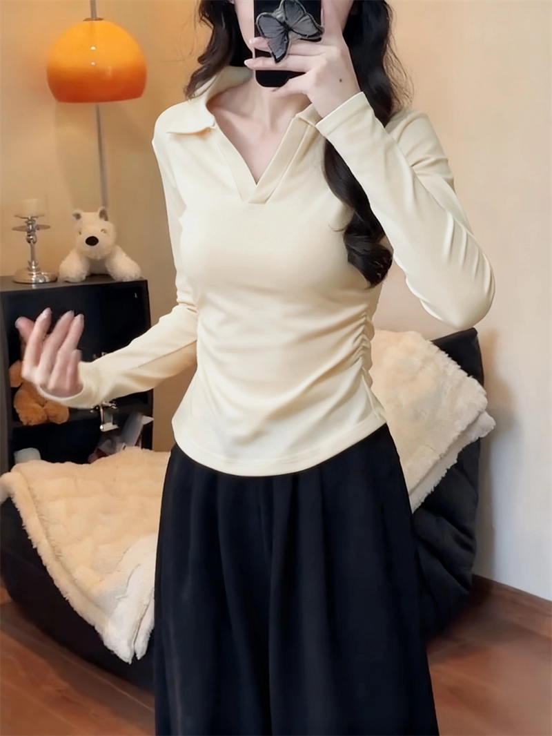 MY16557# 新款长袖打底衫女大码修身内搭收腰POLO衫T恤上衣女裝貨源服裝批發