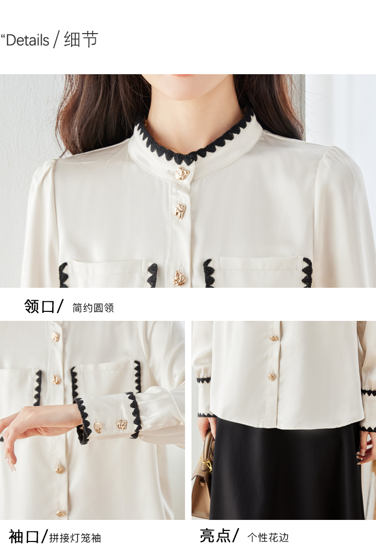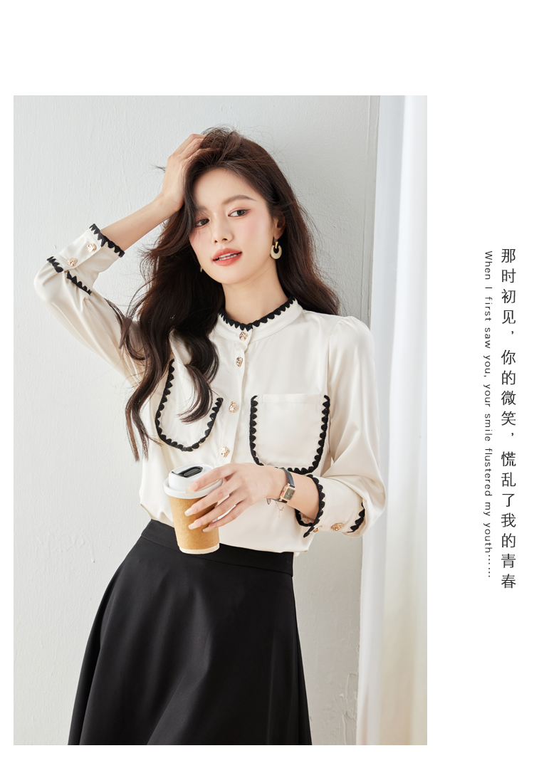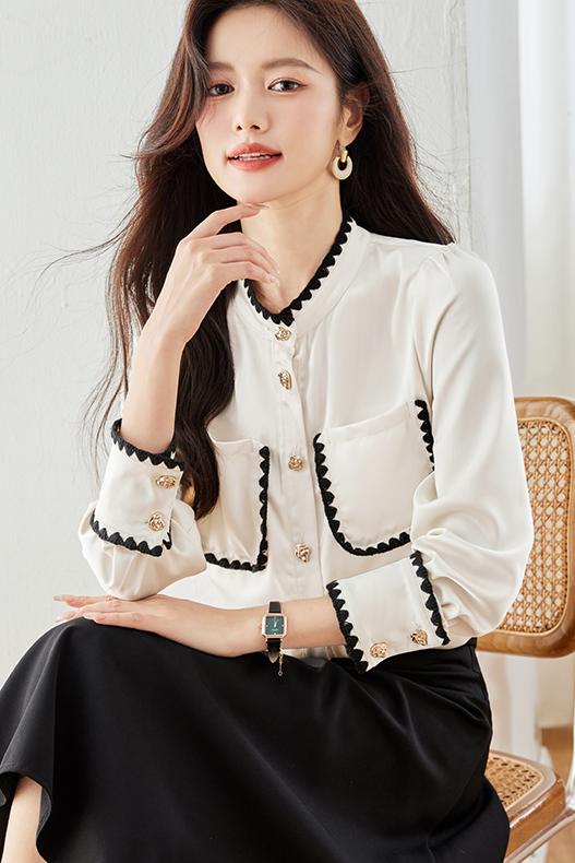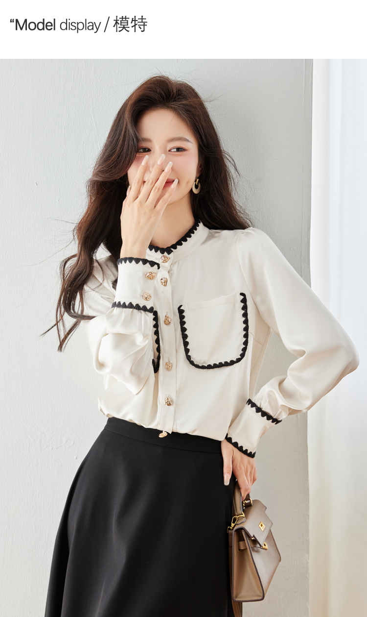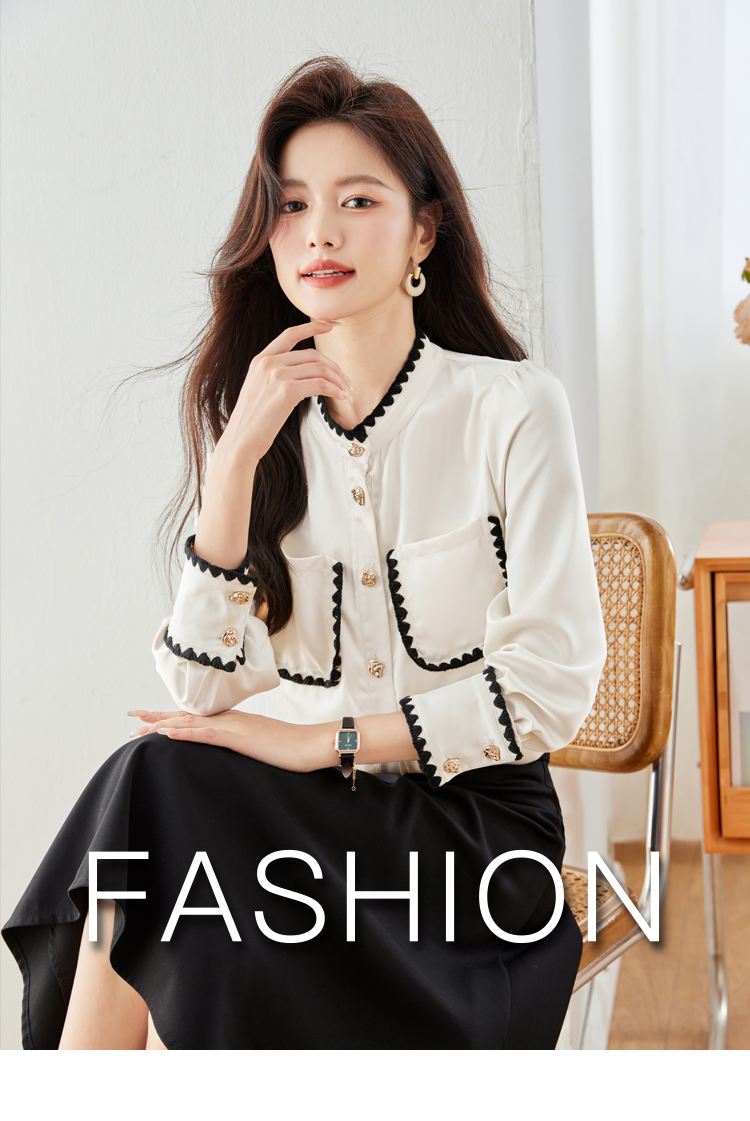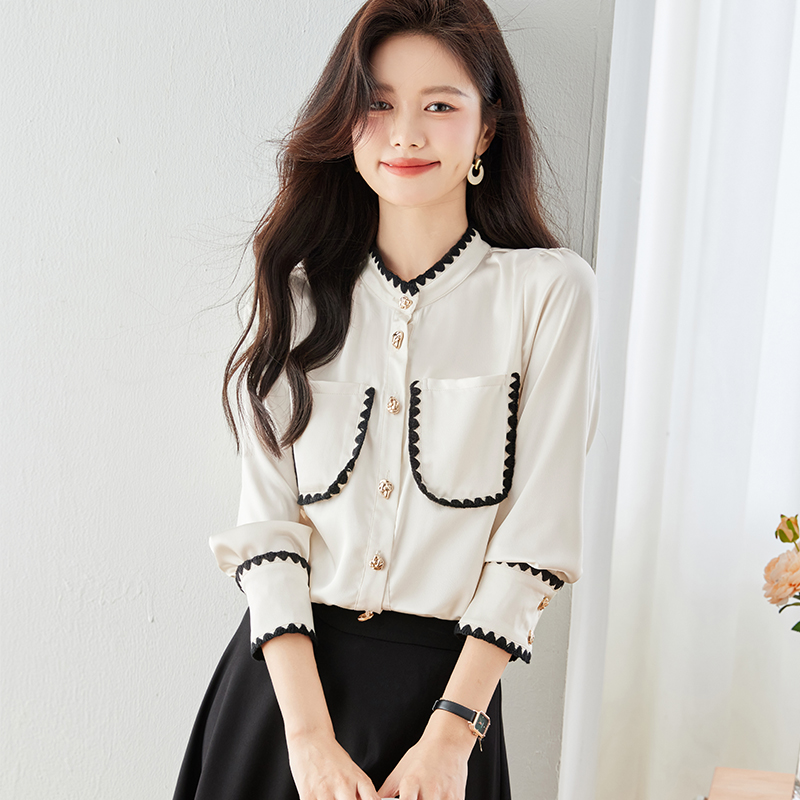 MY16572# 新款撞色边立领小香风衬衫女设计感小众百搭简约上衣女裝貨源服裝批發