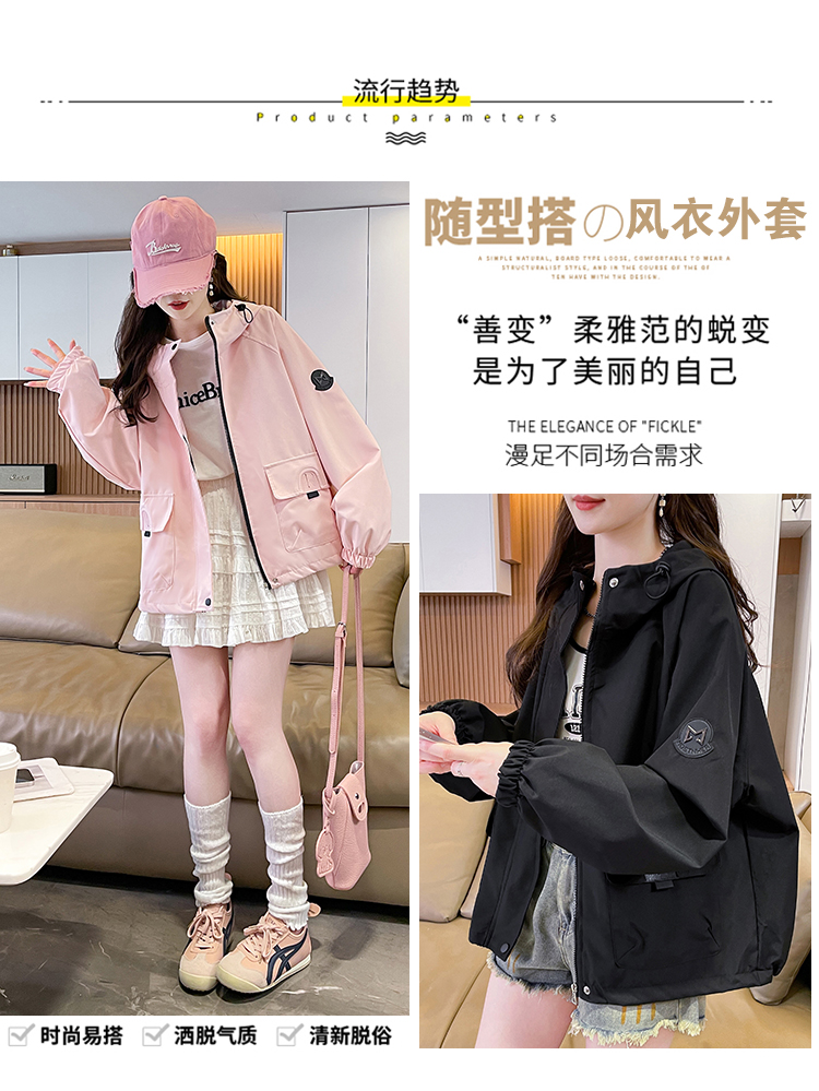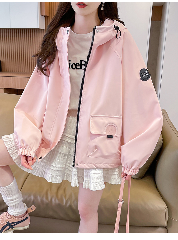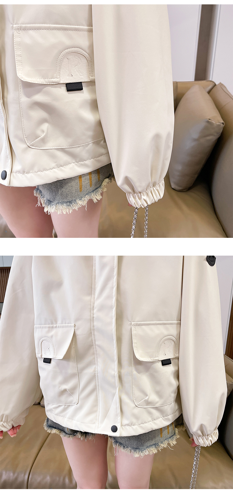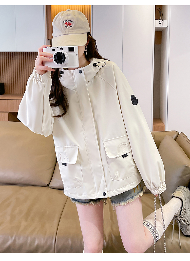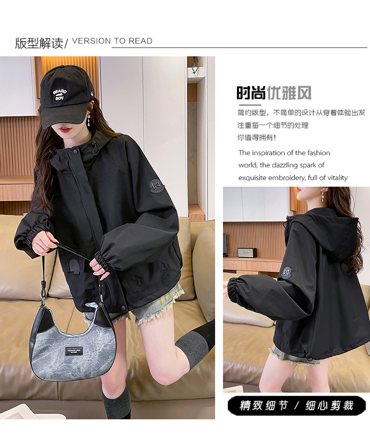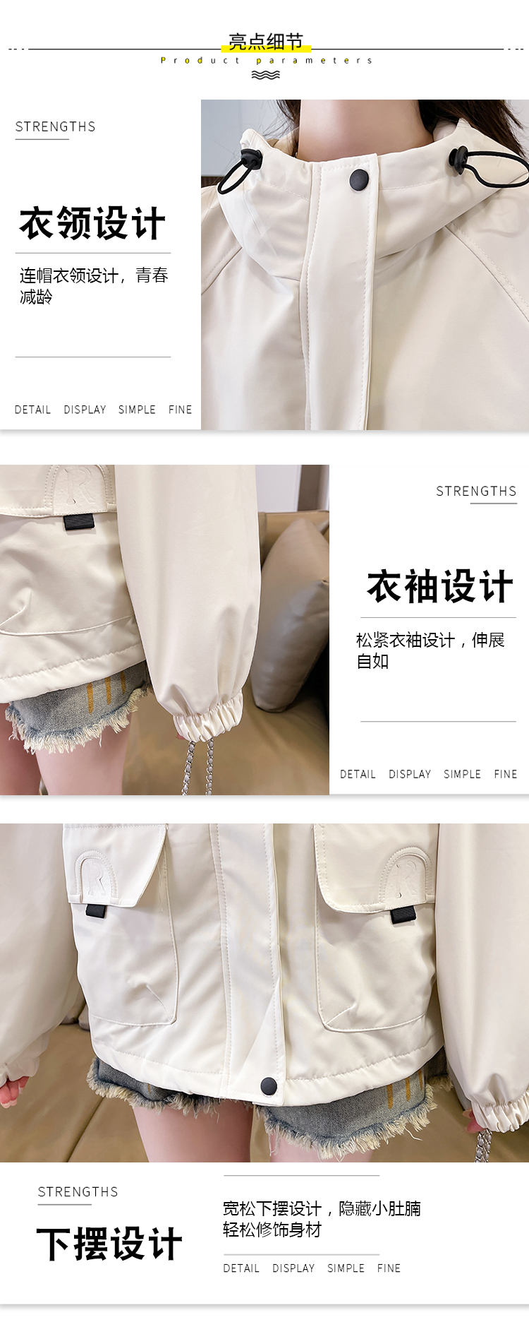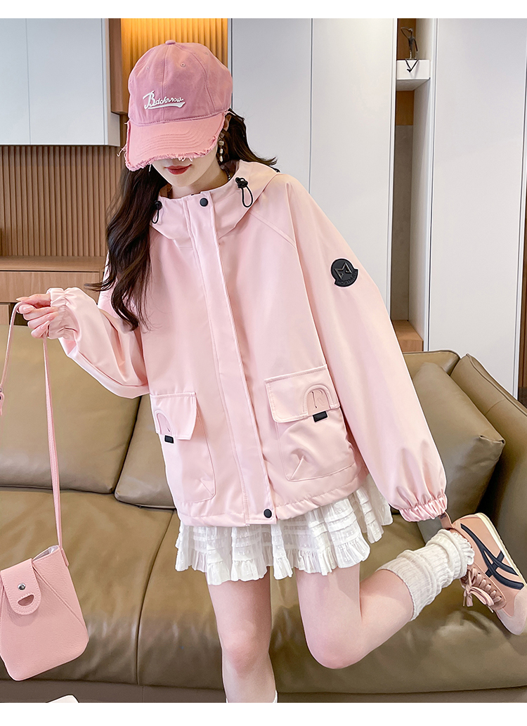 MY16574# 学院高端大气冲锋衣外套女大兜连帽休闲宽松户外短款风衣女裝貨源服裝批發