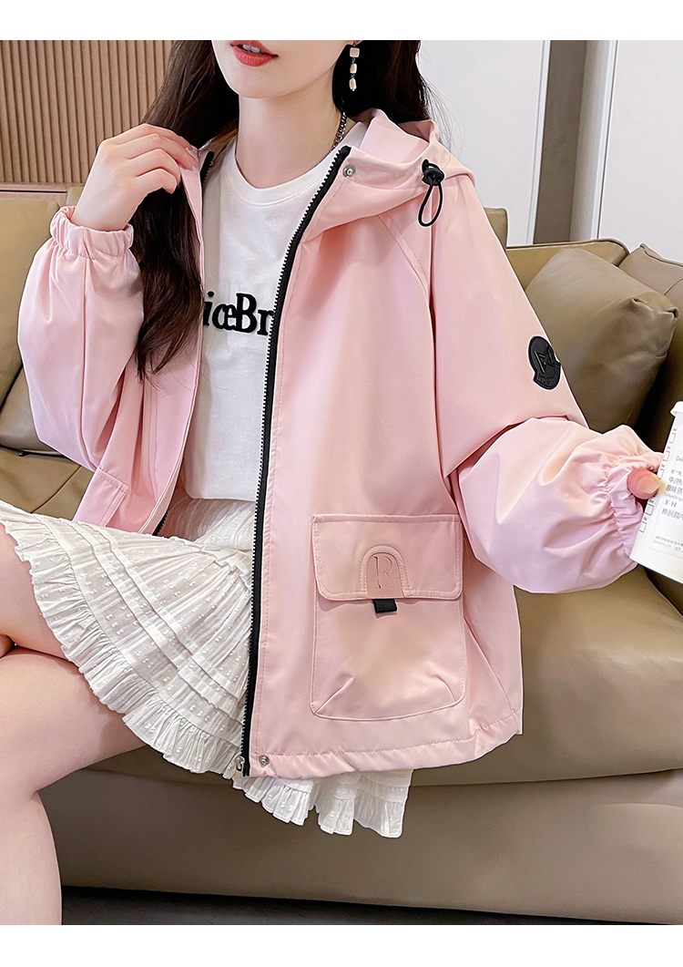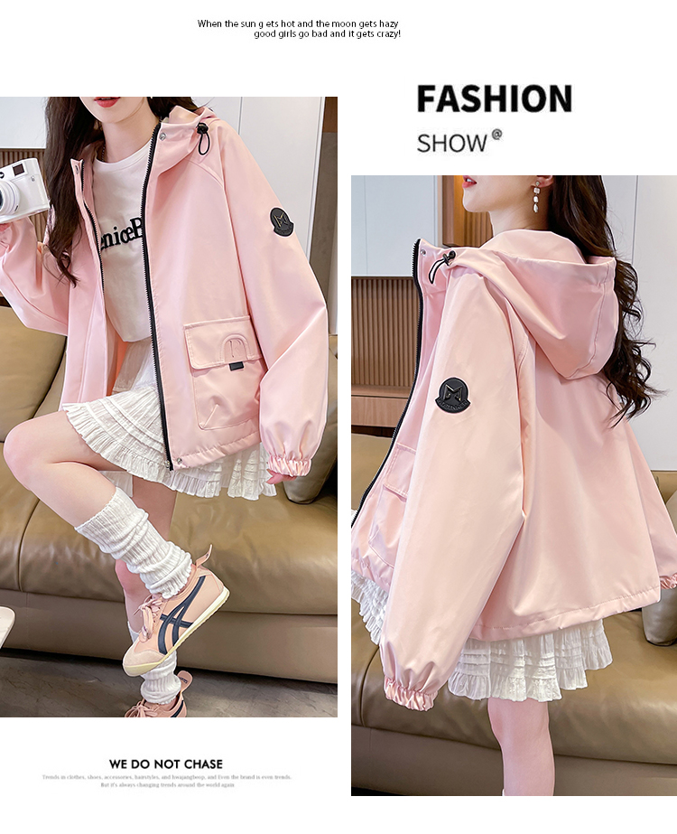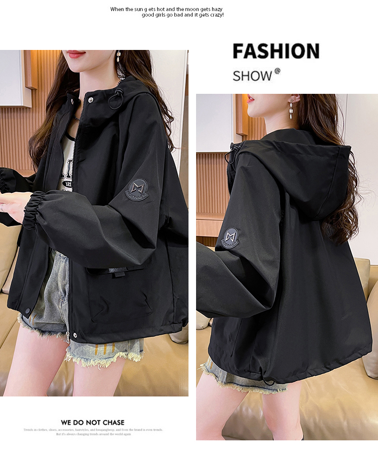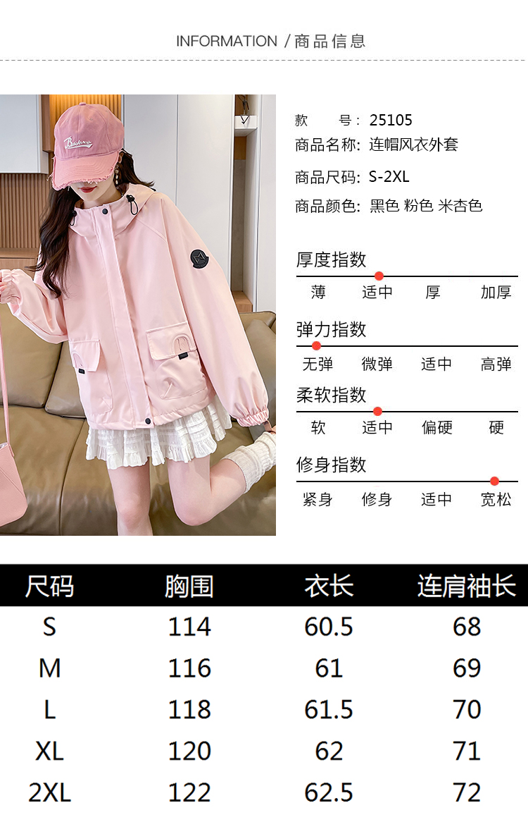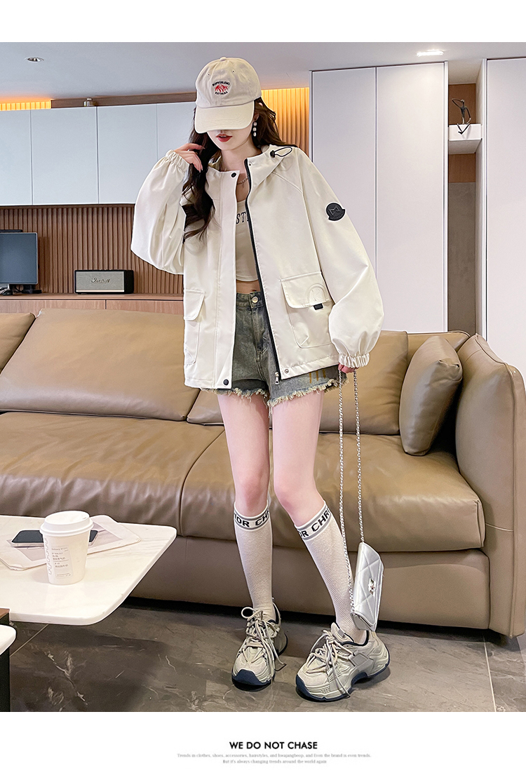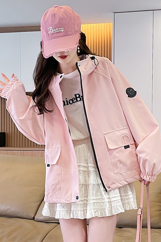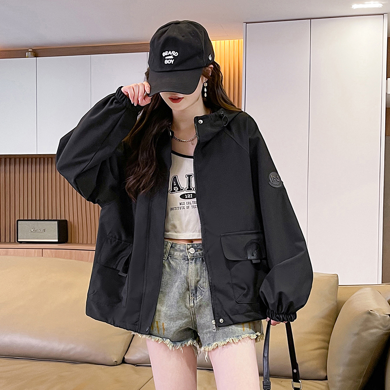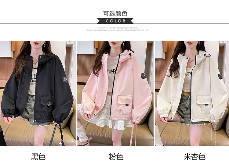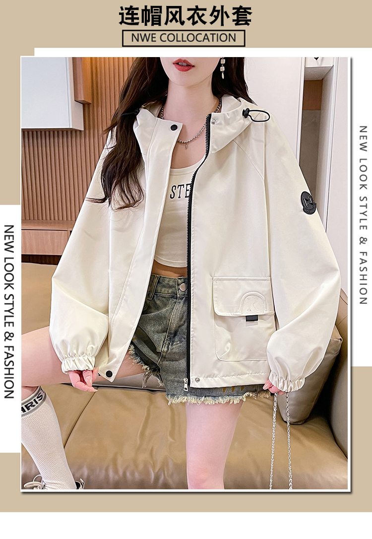 MY16574# 学院高端大气冲锋衣外套女大兜连帽休闲宽松户外短款风衣女裝貨源服裝批發