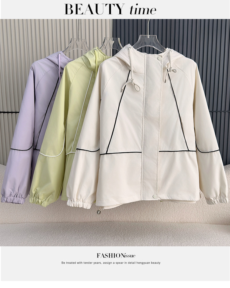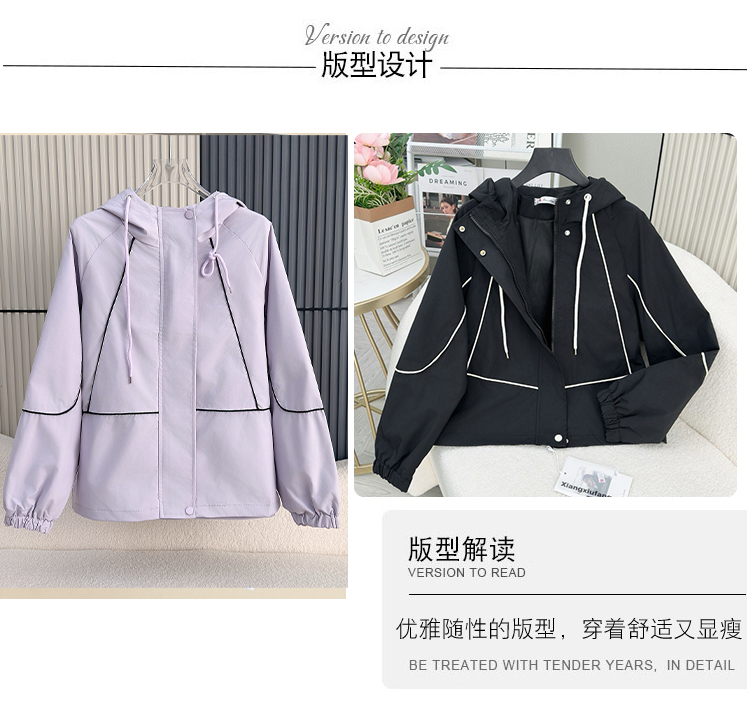 MY16576# 新款夹克外套女流行高级感爆款连帽小个子超好看短款风衣女裝貨源服裝批發