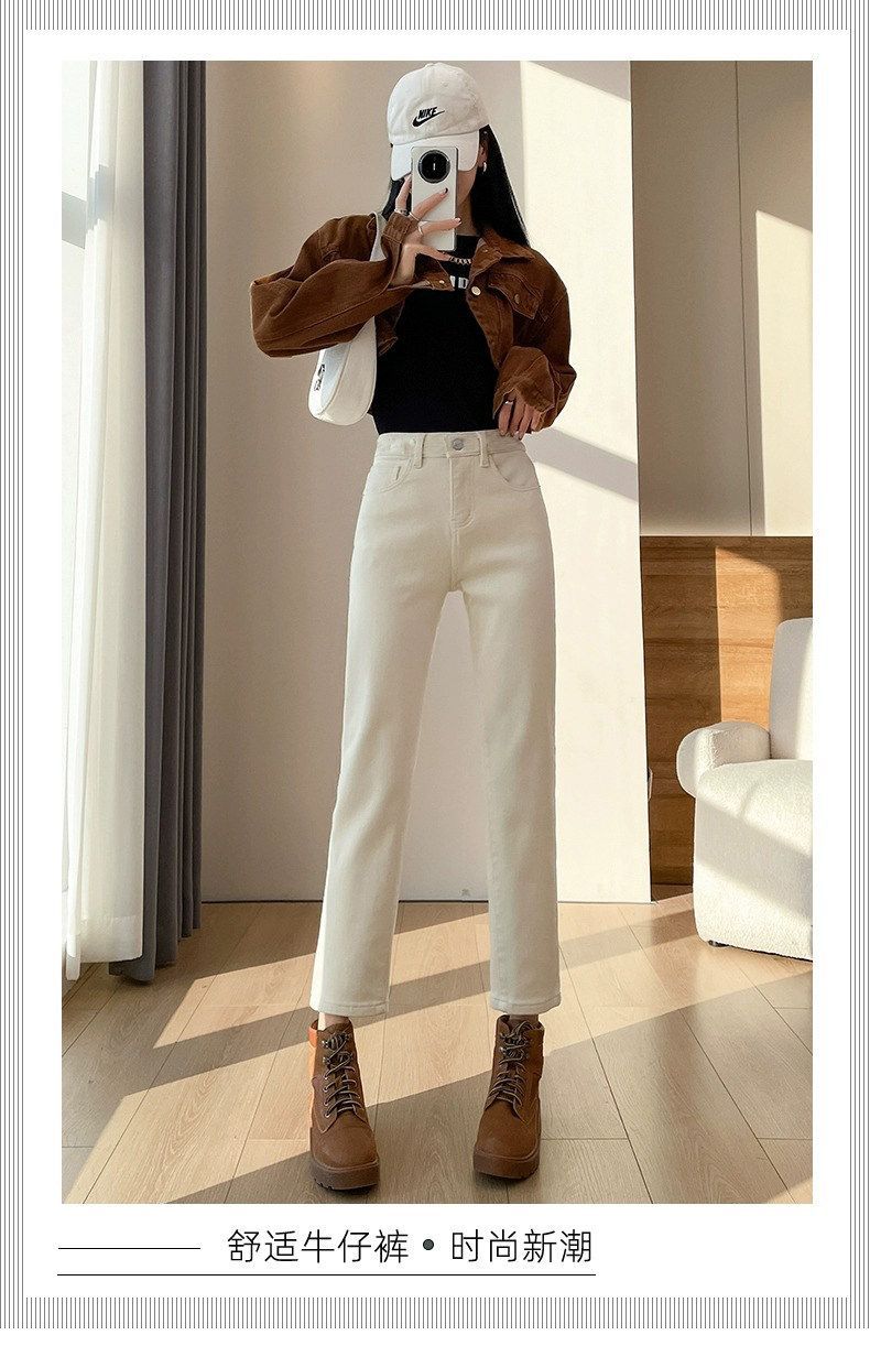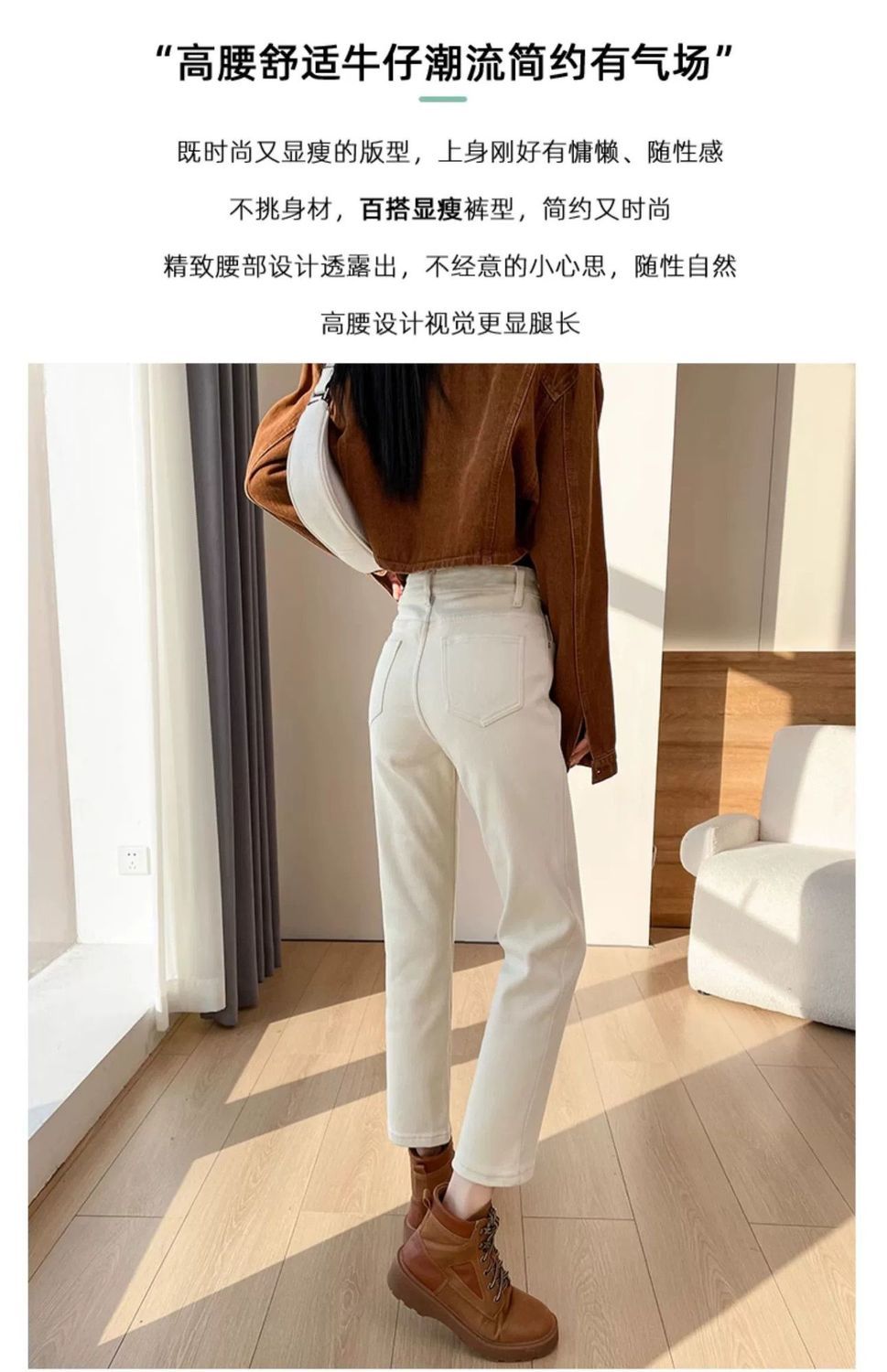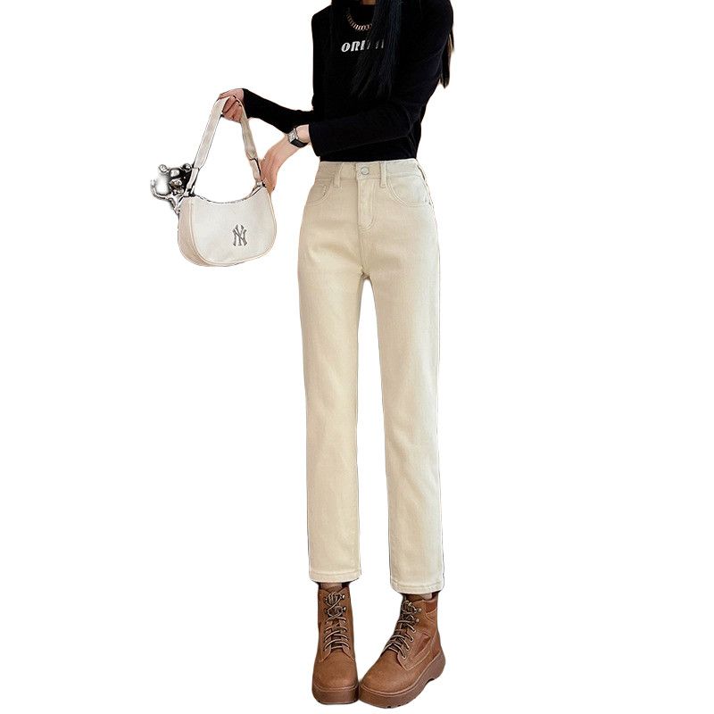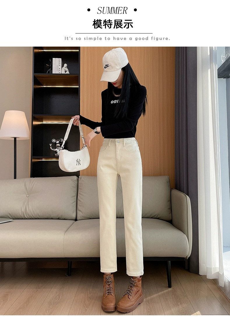 MY16628# 杏色九分直筒牛仔裤新款小个子高腰显瘦百搭烟管裤女裝貨源服裝批發