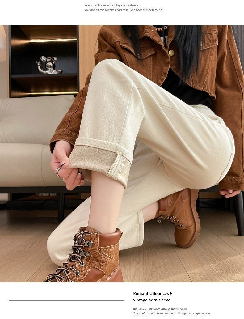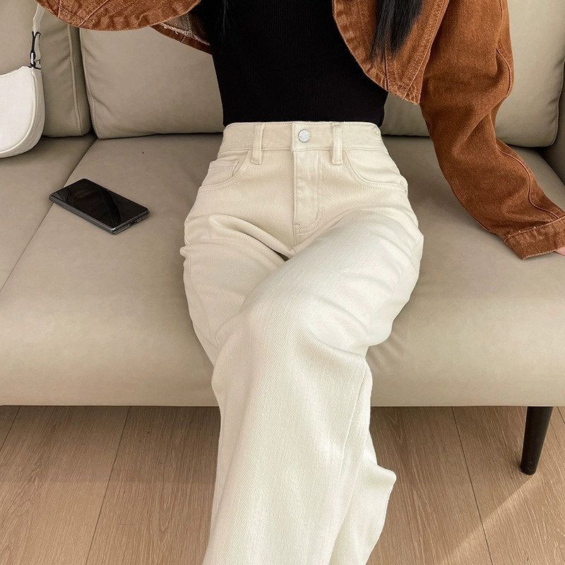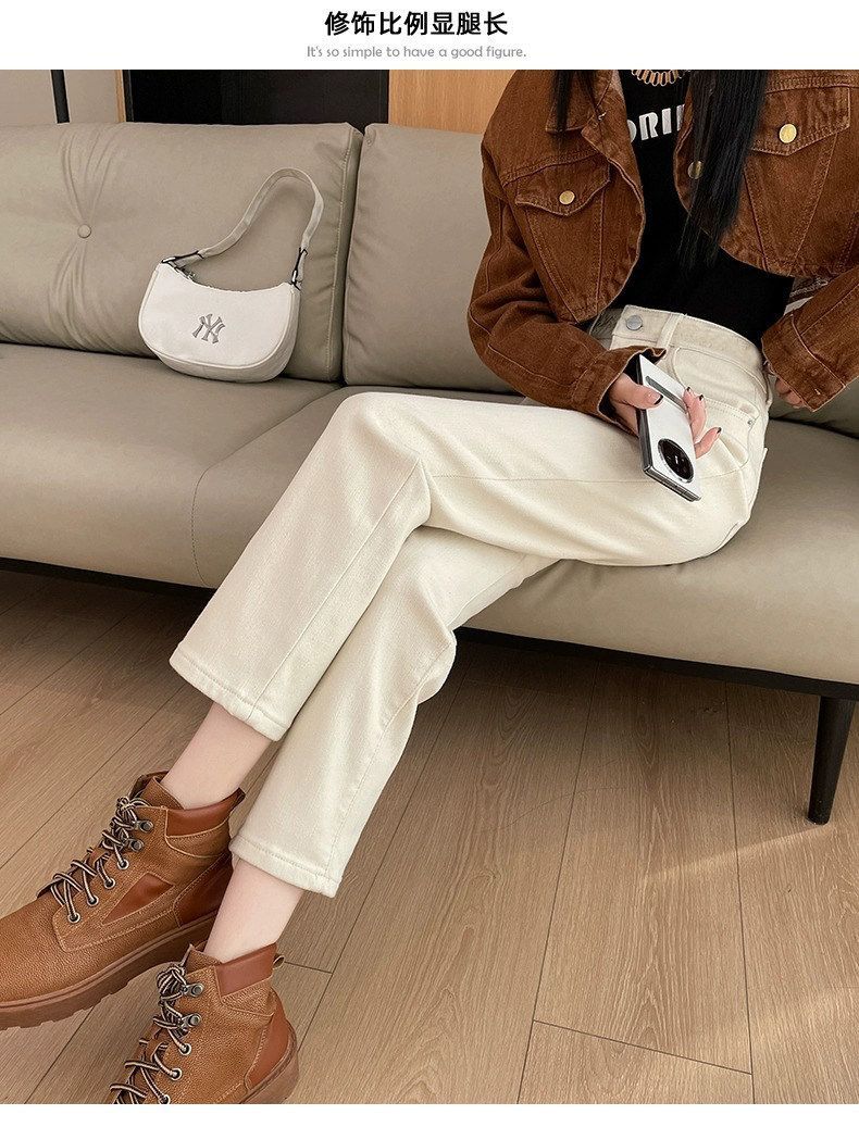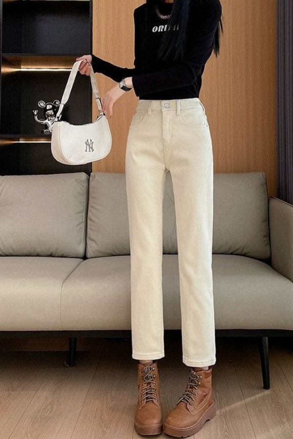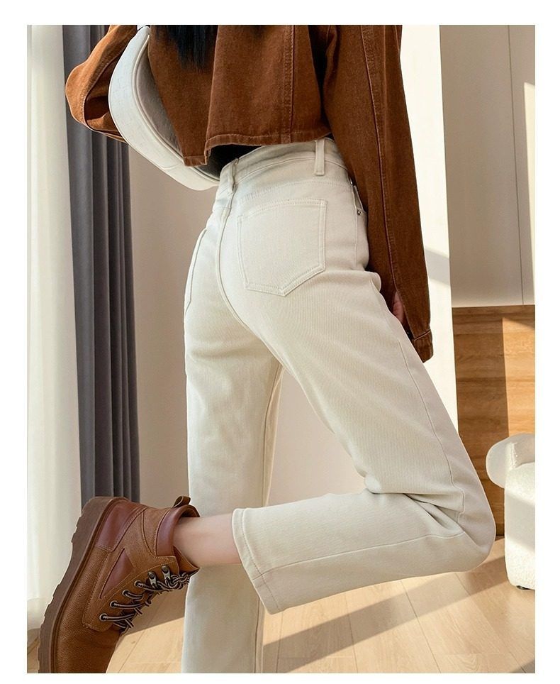 MY16628# 杏色九分直筒牛仔裤新款小个子高腰显瘦百搭烟管裤女裝貨源服裝批發