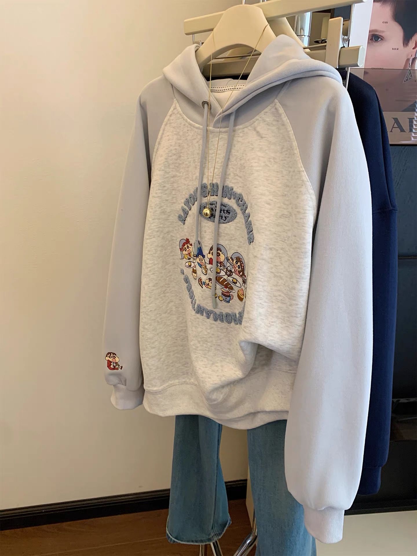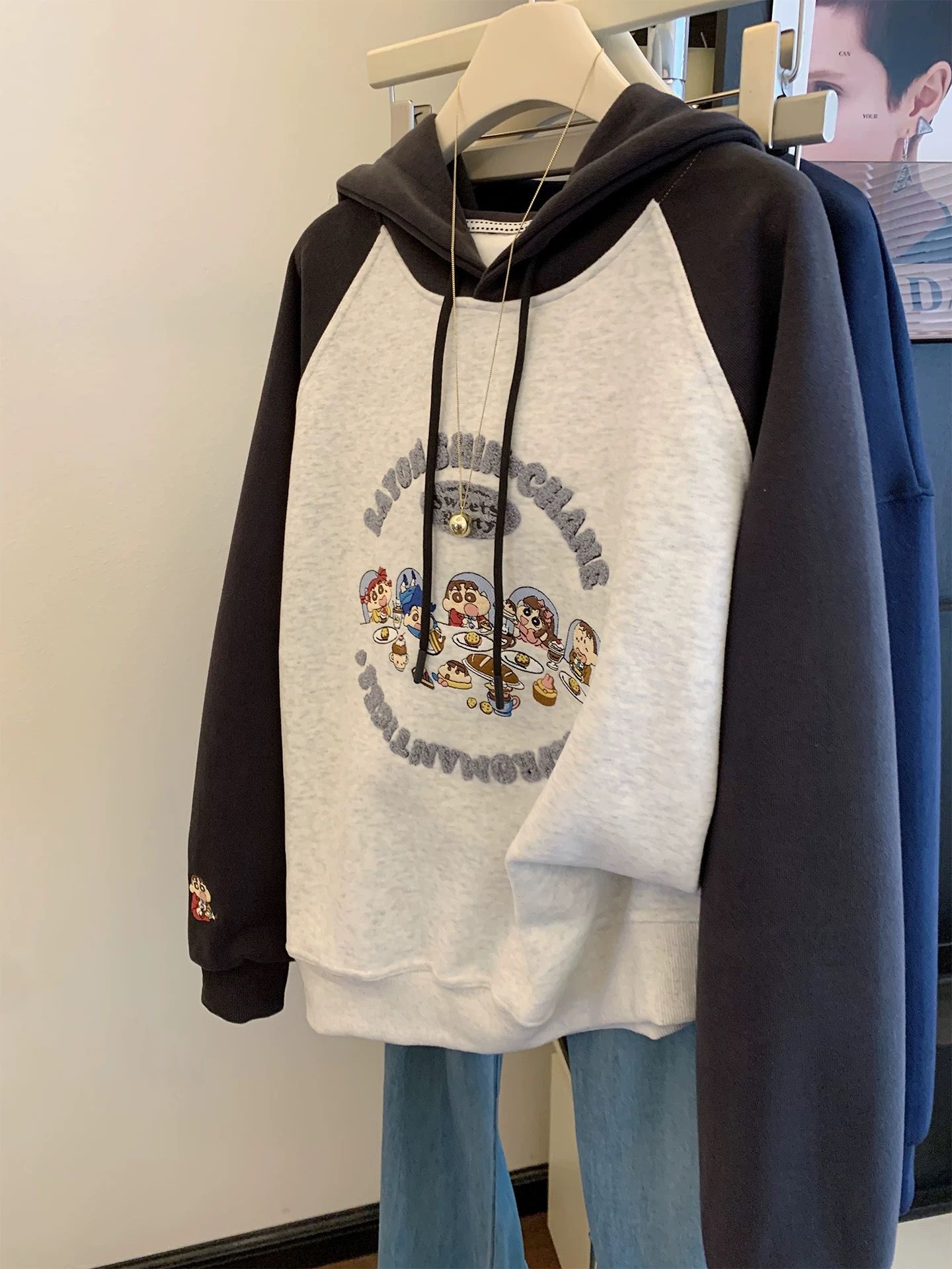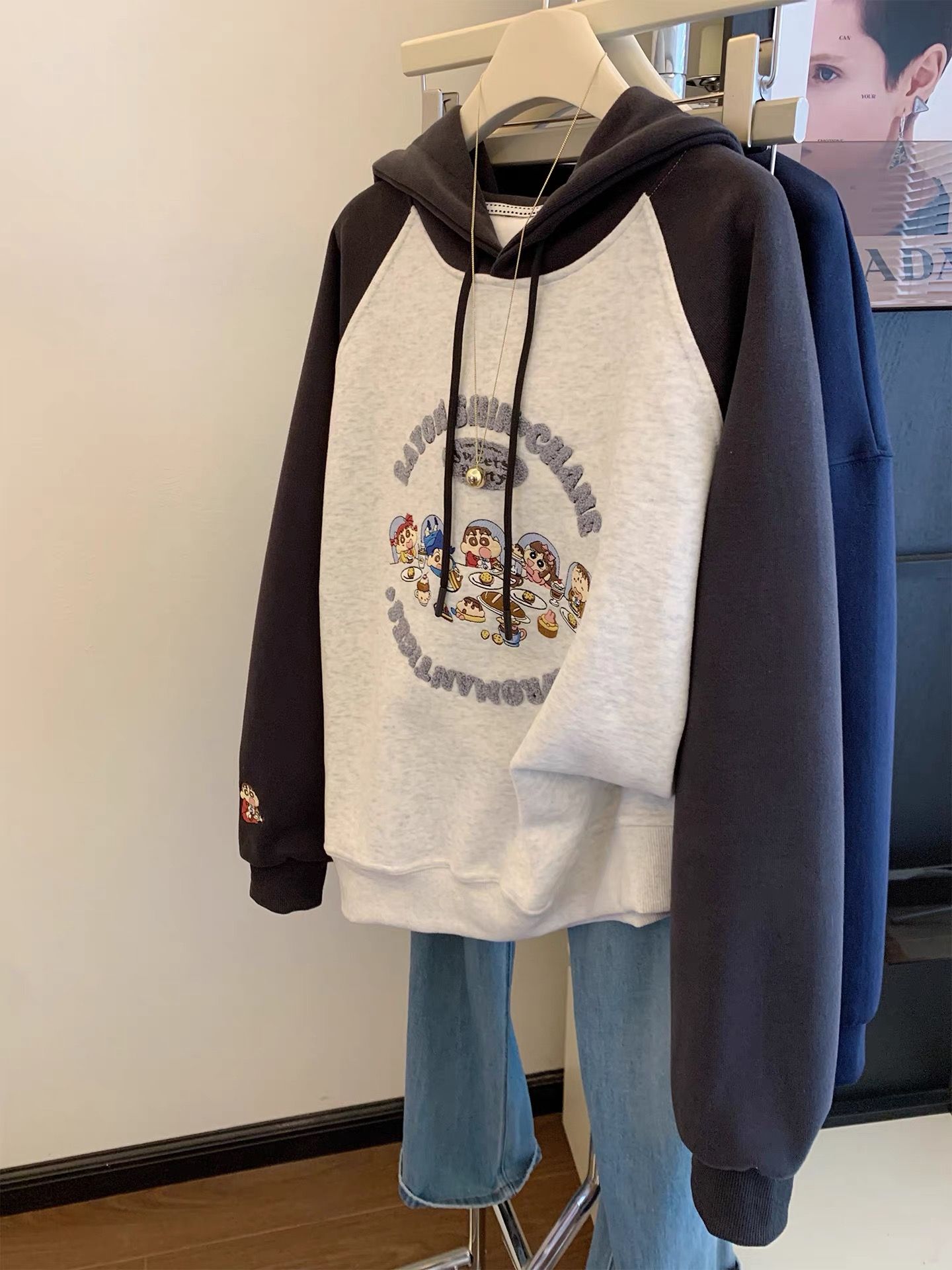 MY16644# 仿华棉复牛奶丝特大码300斤撞色连帽卫衣韩系上衣女裝貨源服裝批發