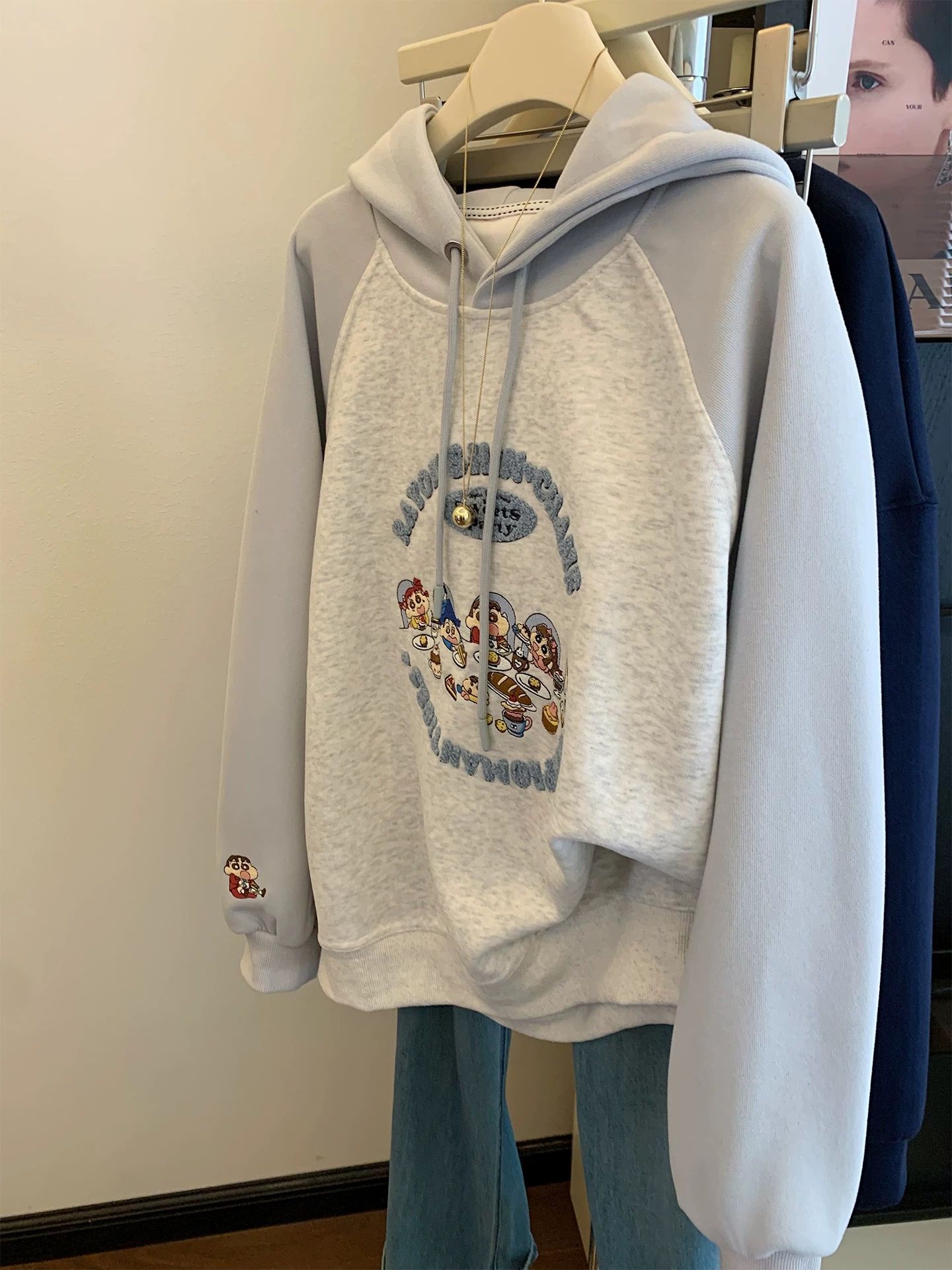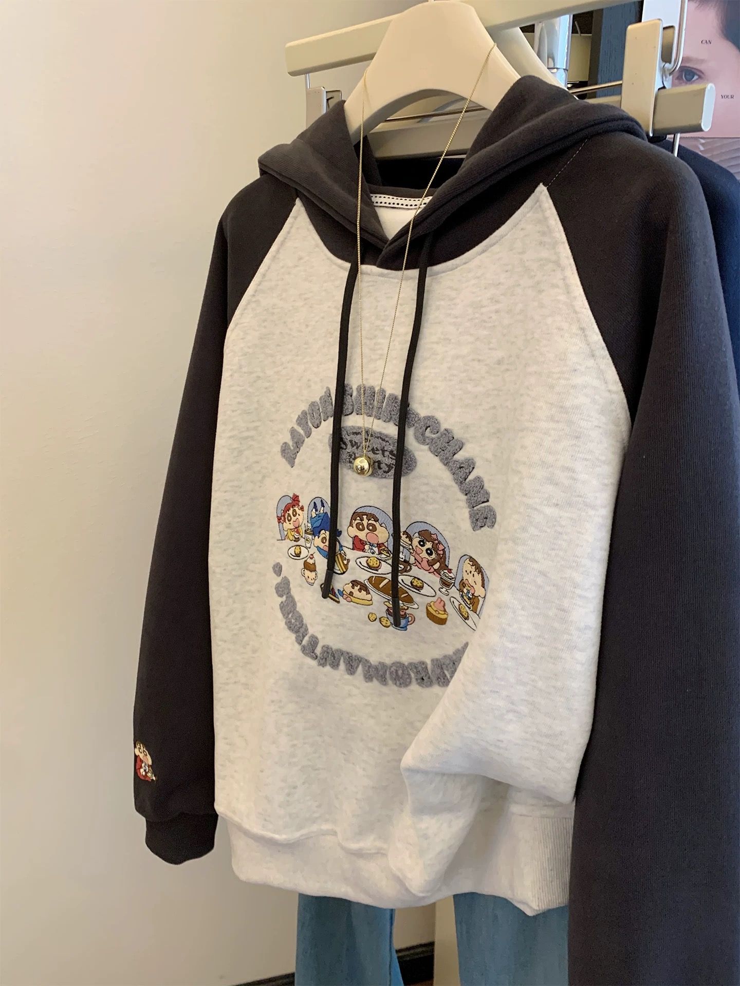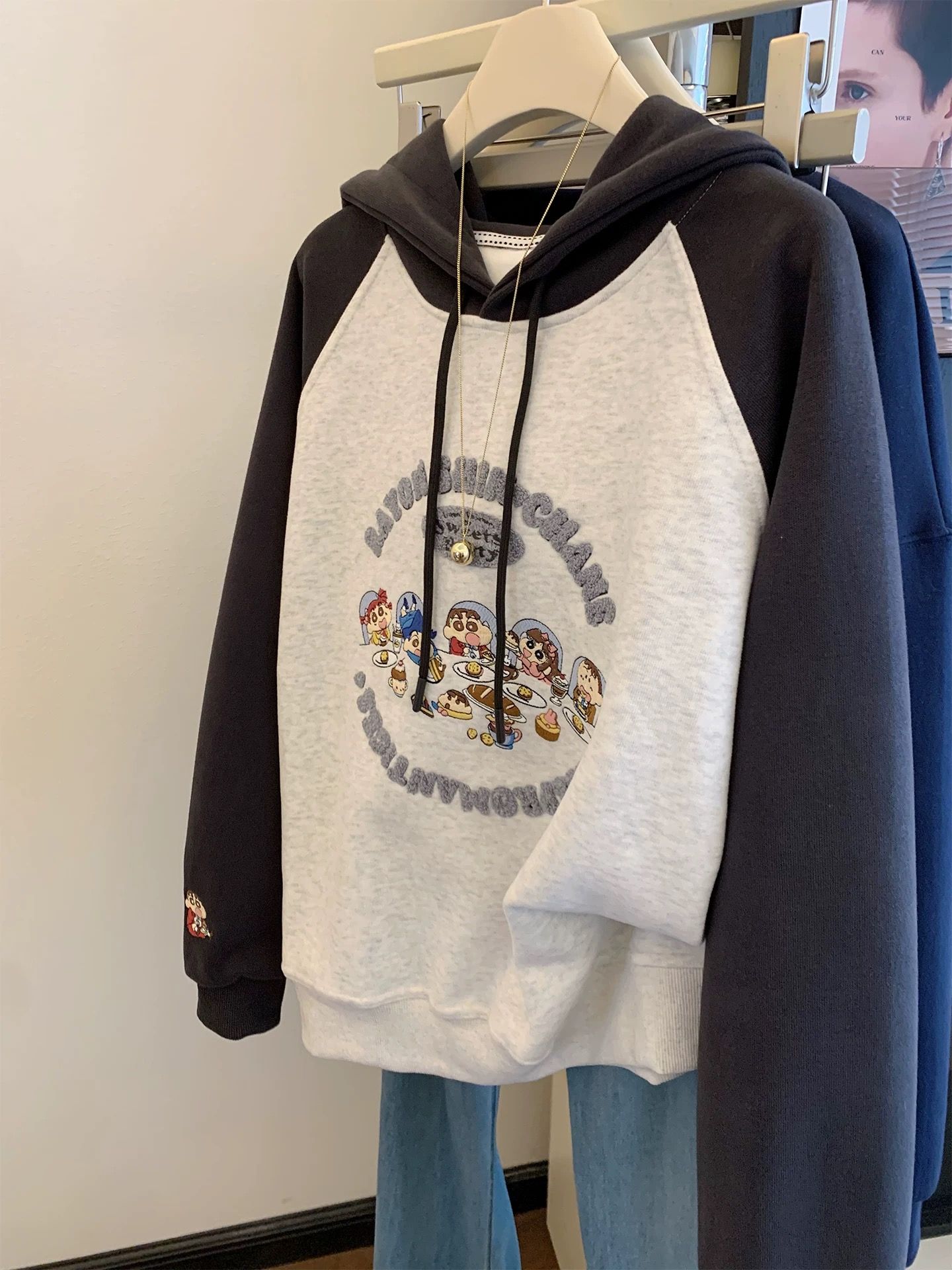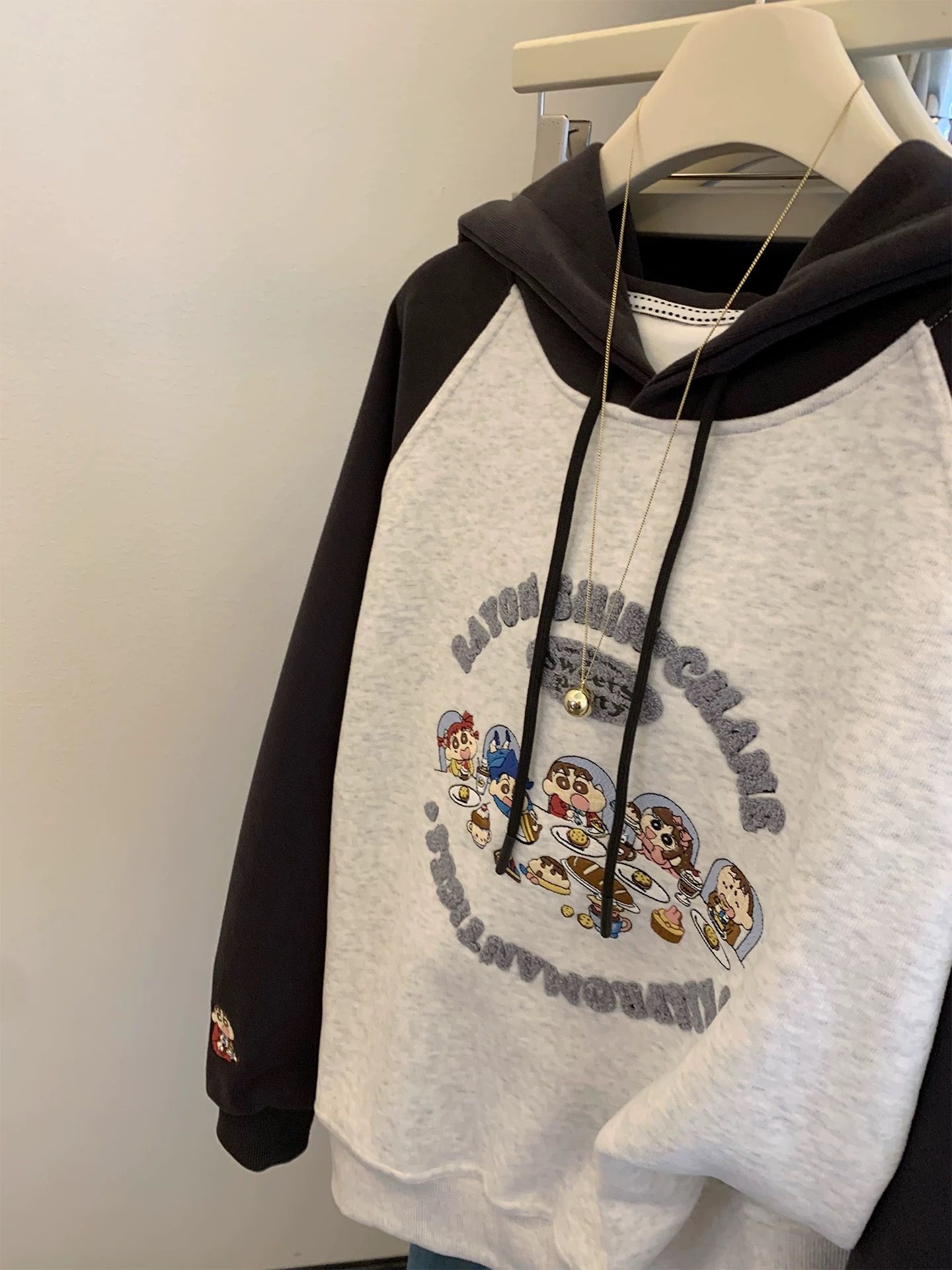 MY16644# 仿华棉复牛奶丝特大码300斤撞色连帽卫衣韩系上衣女裝貨源服裝批發