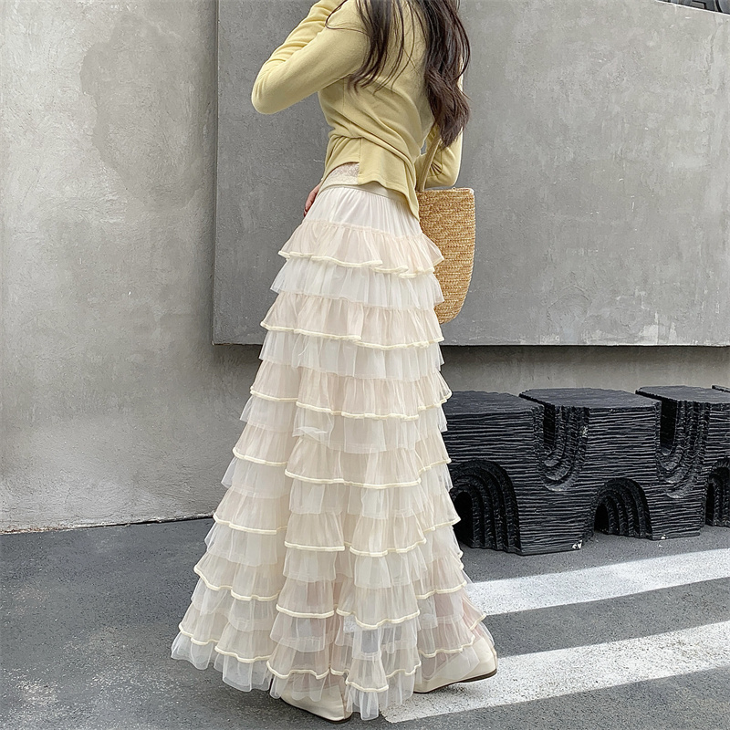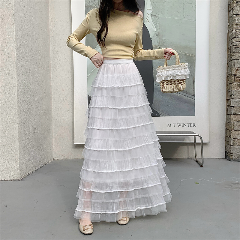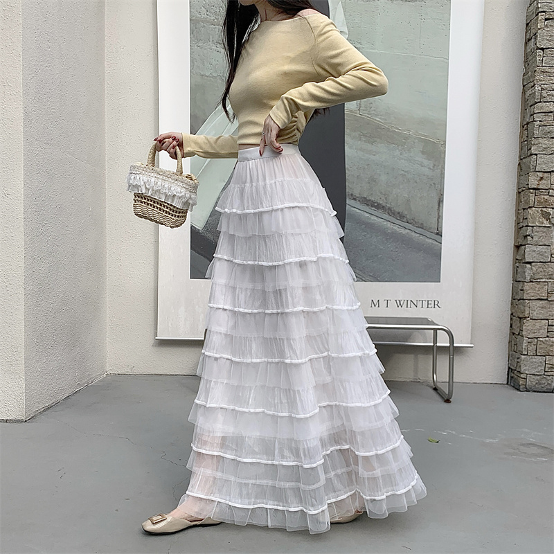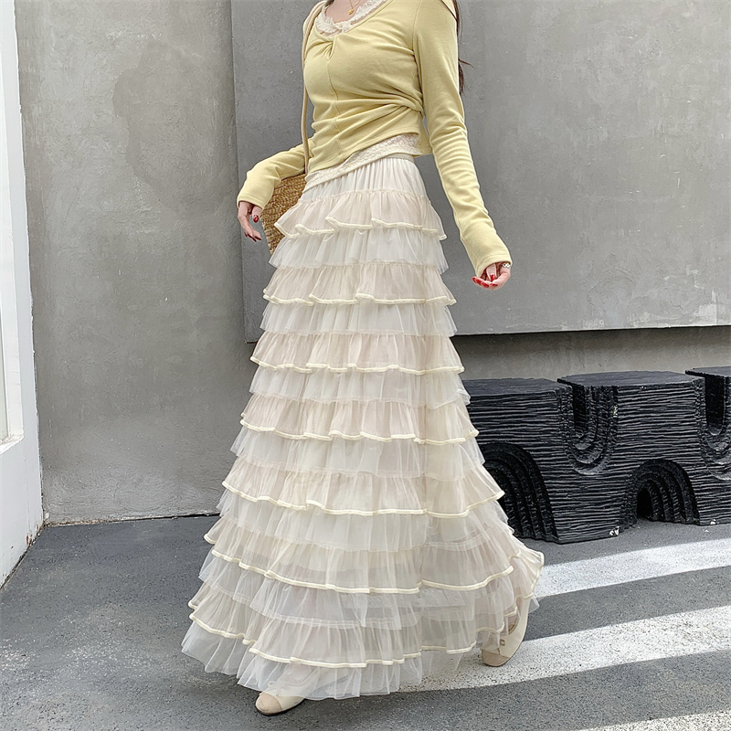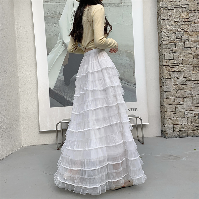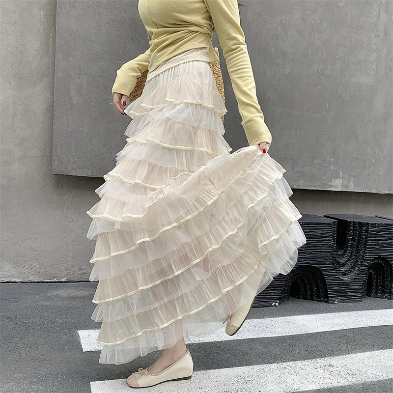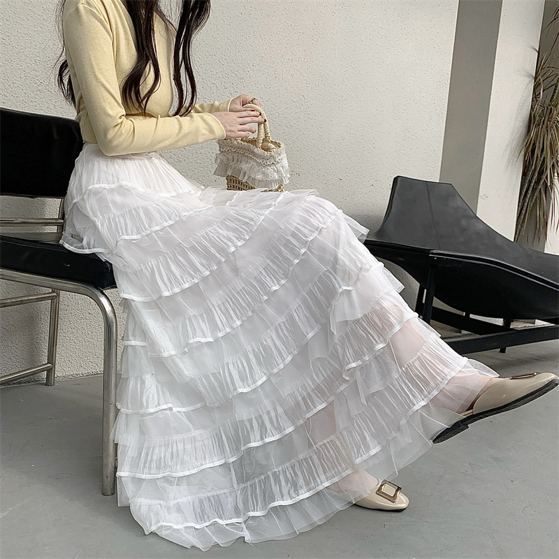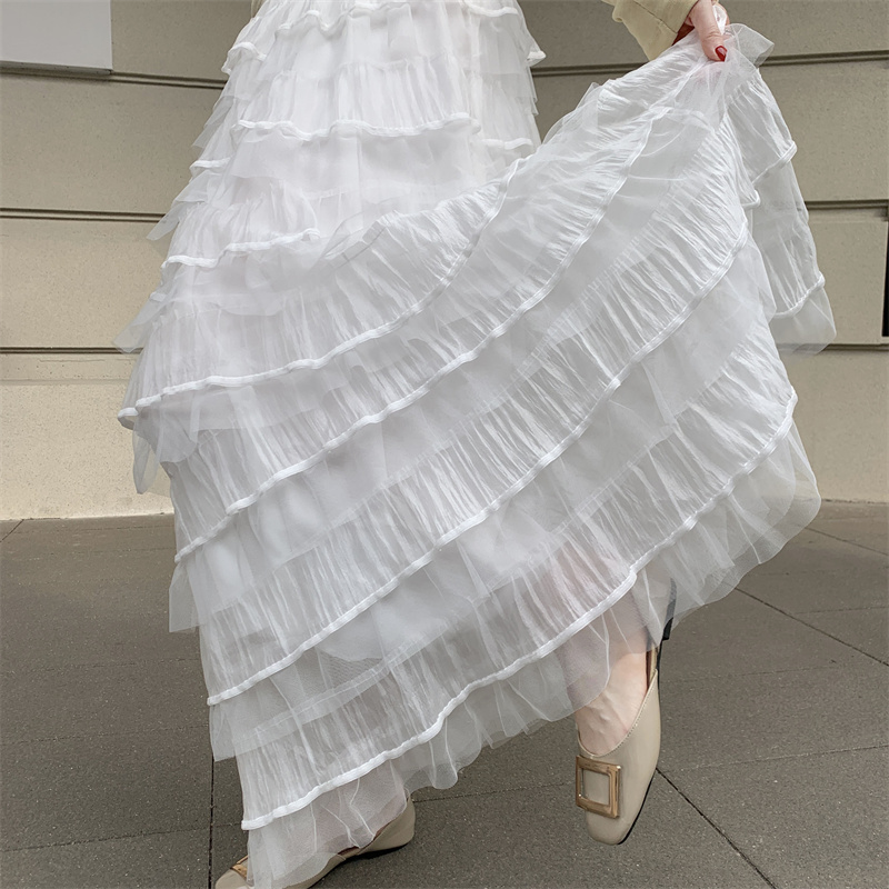 MY16653# 新款轻奢风仙女蛋糕裙多层荷叶边网纱半身长裙女裝貨源服裝批發