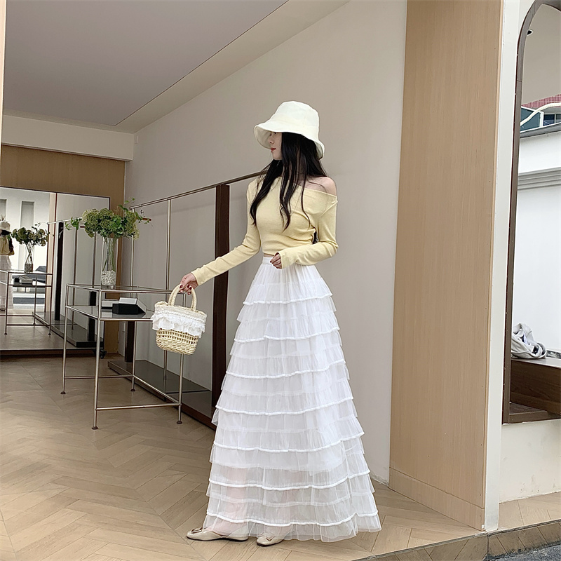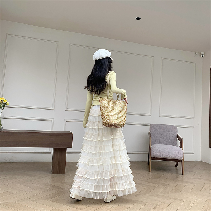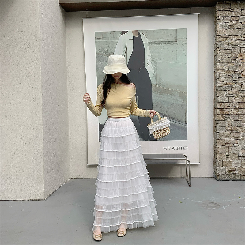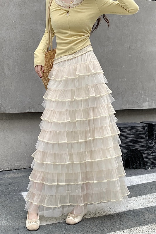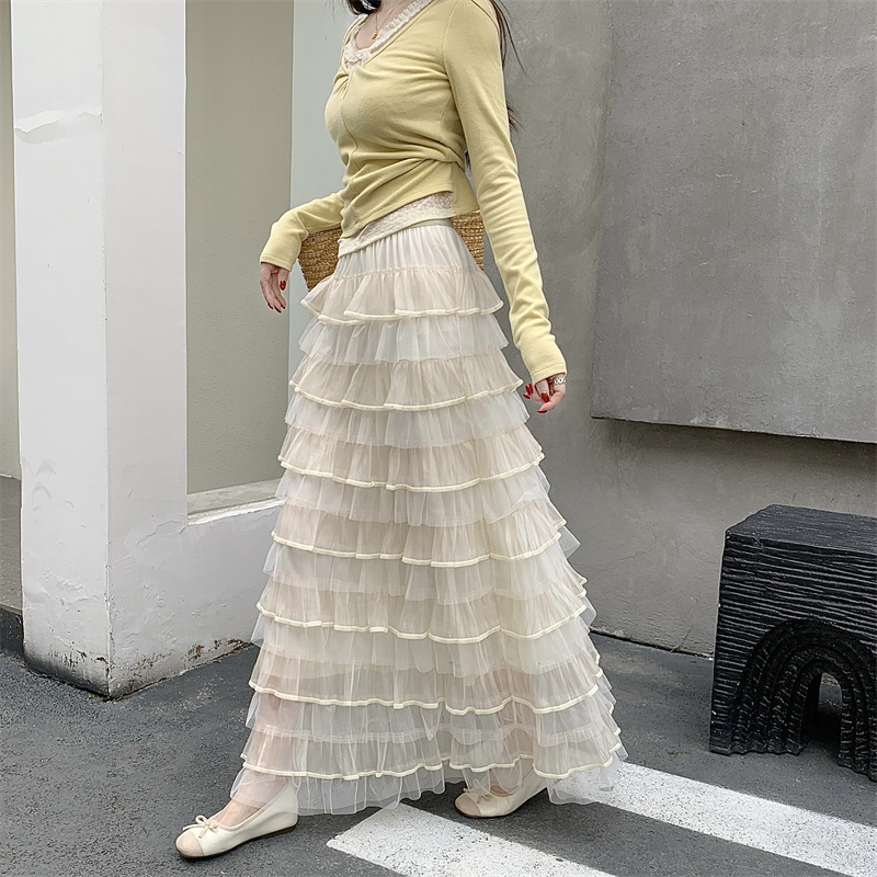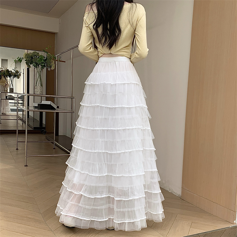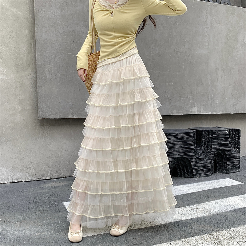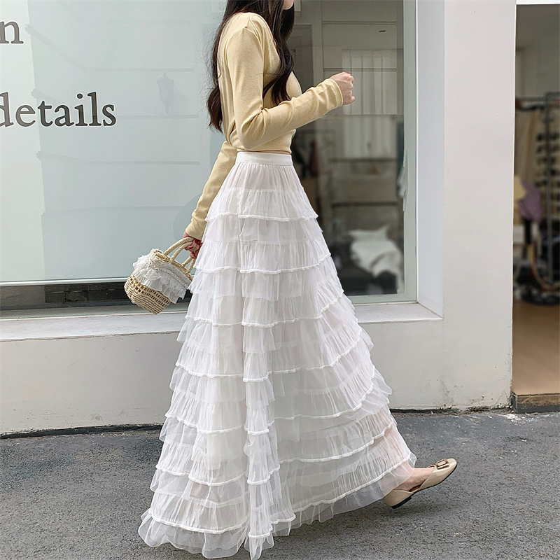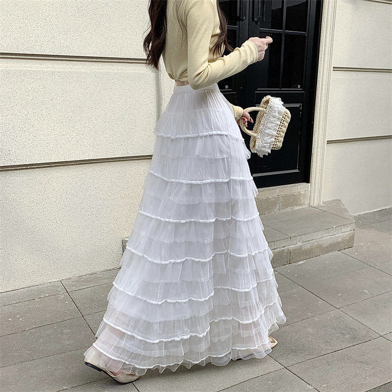 MY16653# 新款轻奢风仙女蛋糕裙多层荷叶边网纱半身长裙女裝貨源服裝批發
