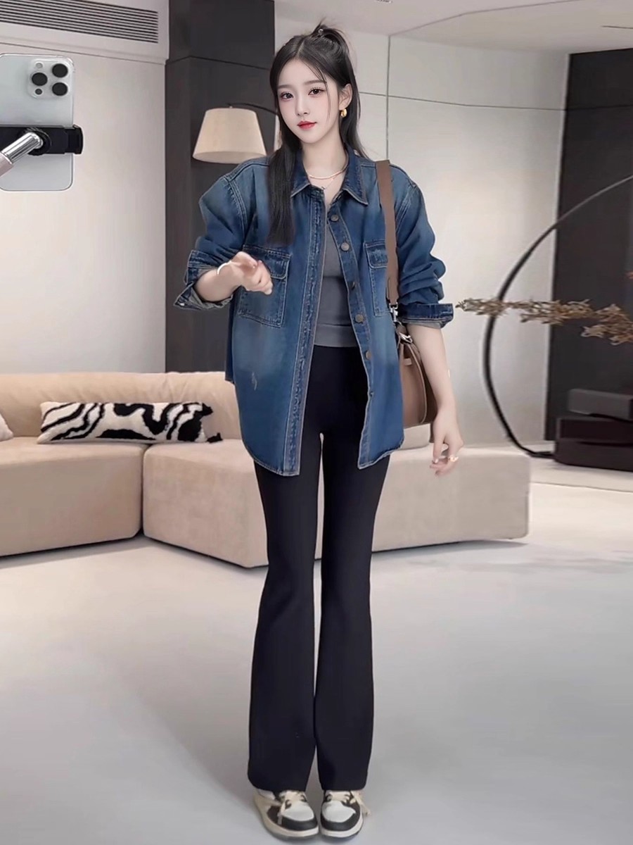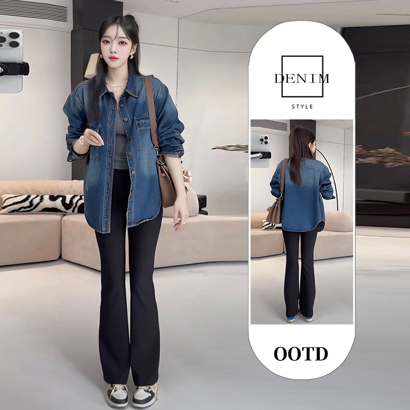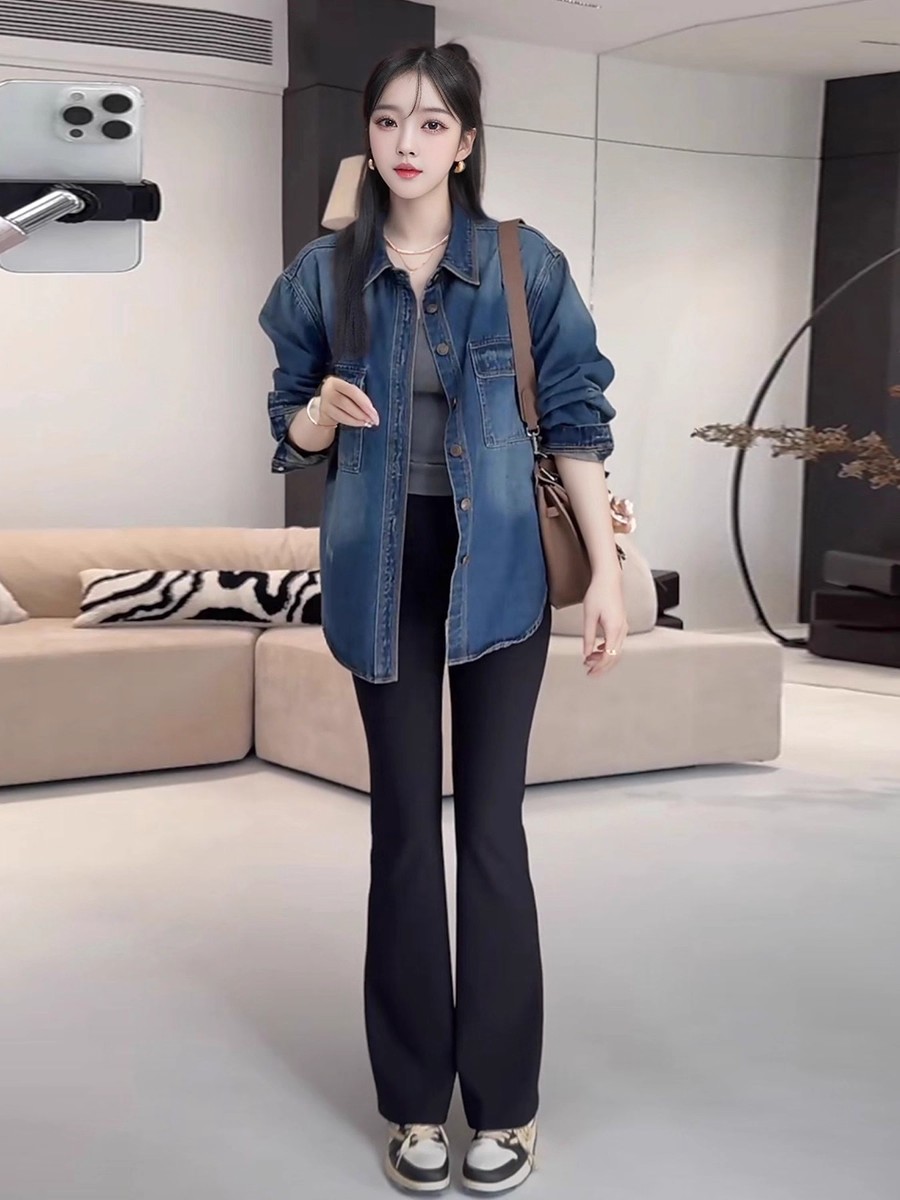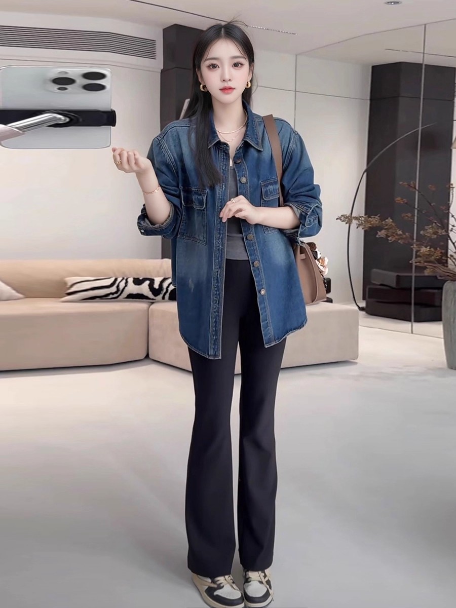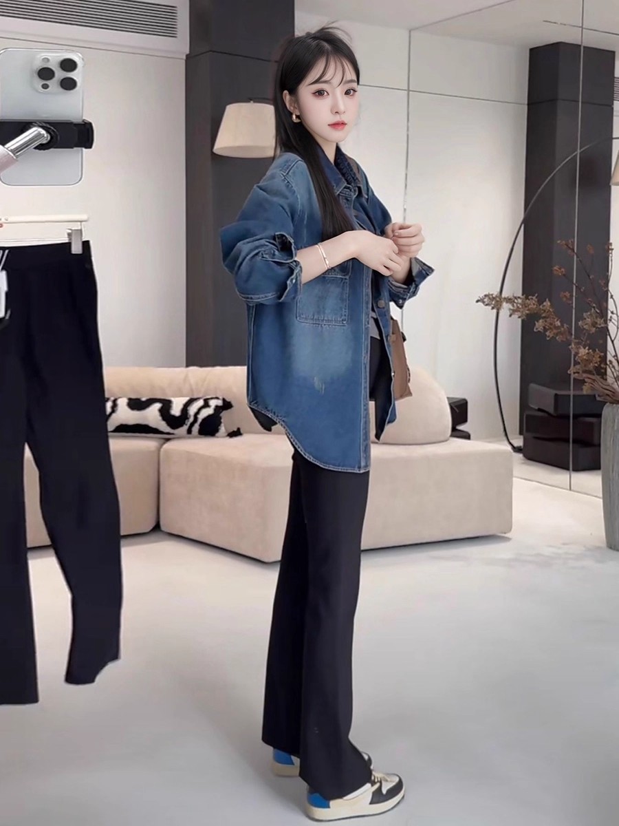 MY16654# 做旧慵懒风翻领衬衫袖长款衬衫长袖女装时尚宽松女裝貨源服裝批發