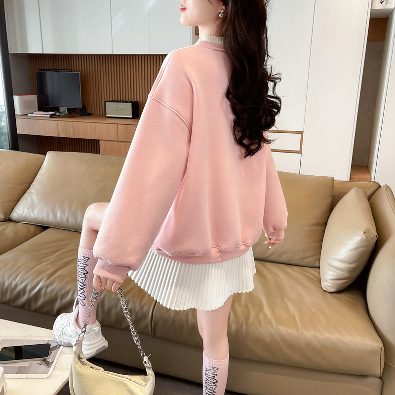 MY16655# 仿华棉复合奥粒薄长袖卫衣女韩版宽松显瘦设计感上衣网红女裝貨源服裝批發