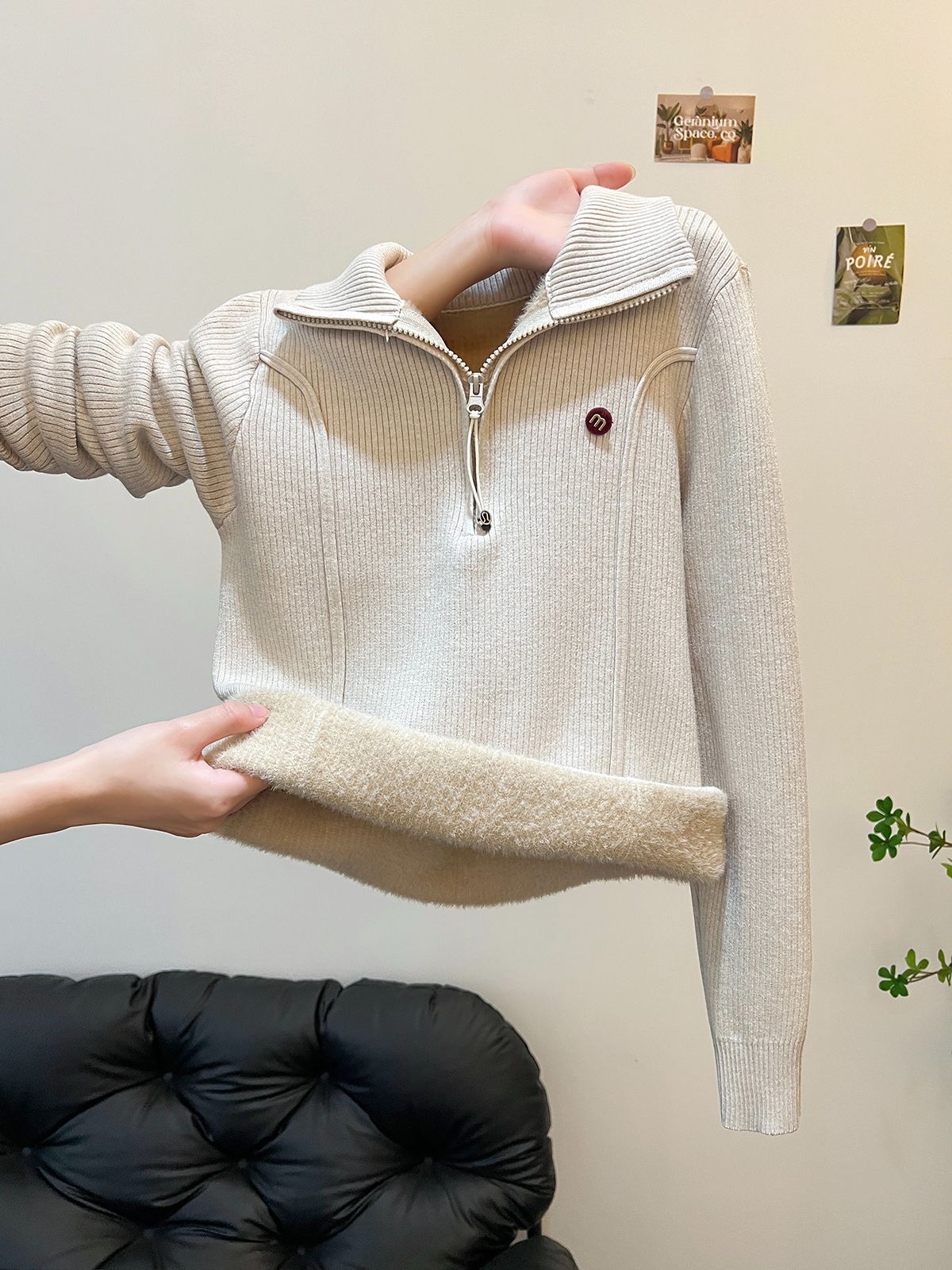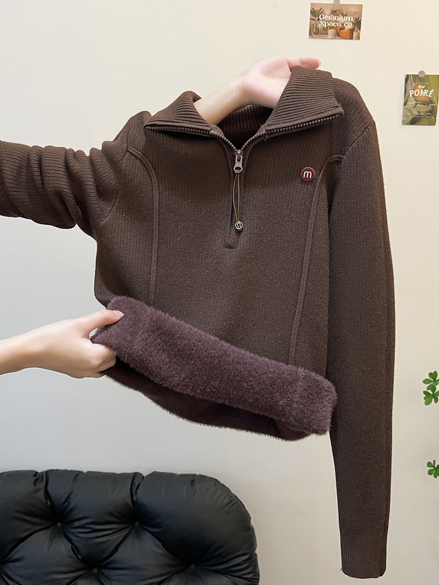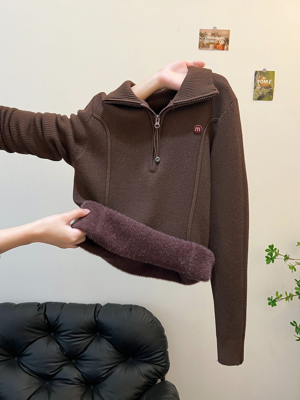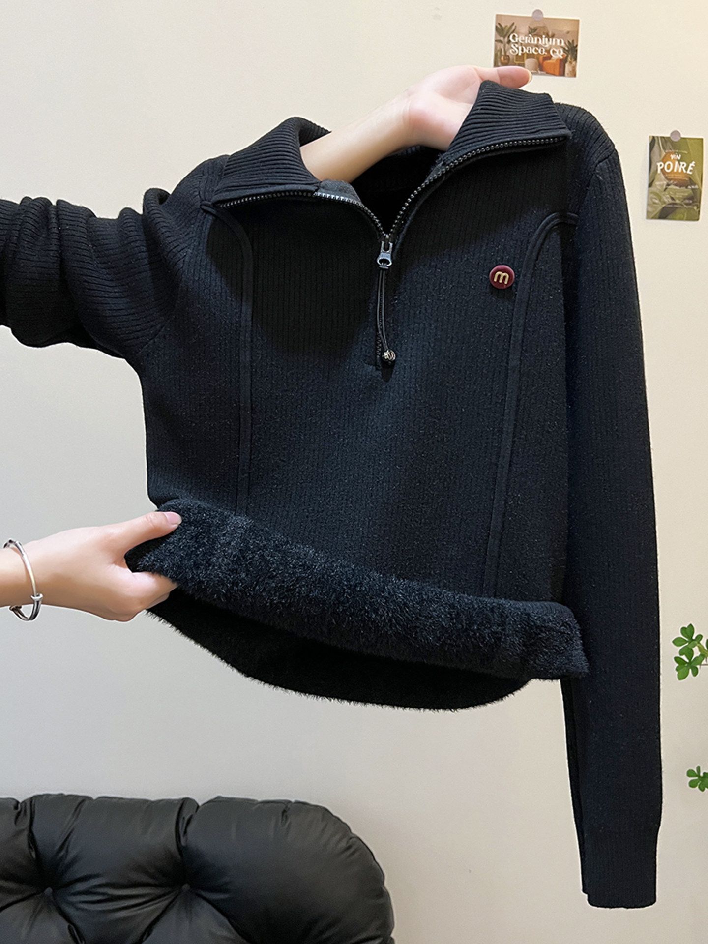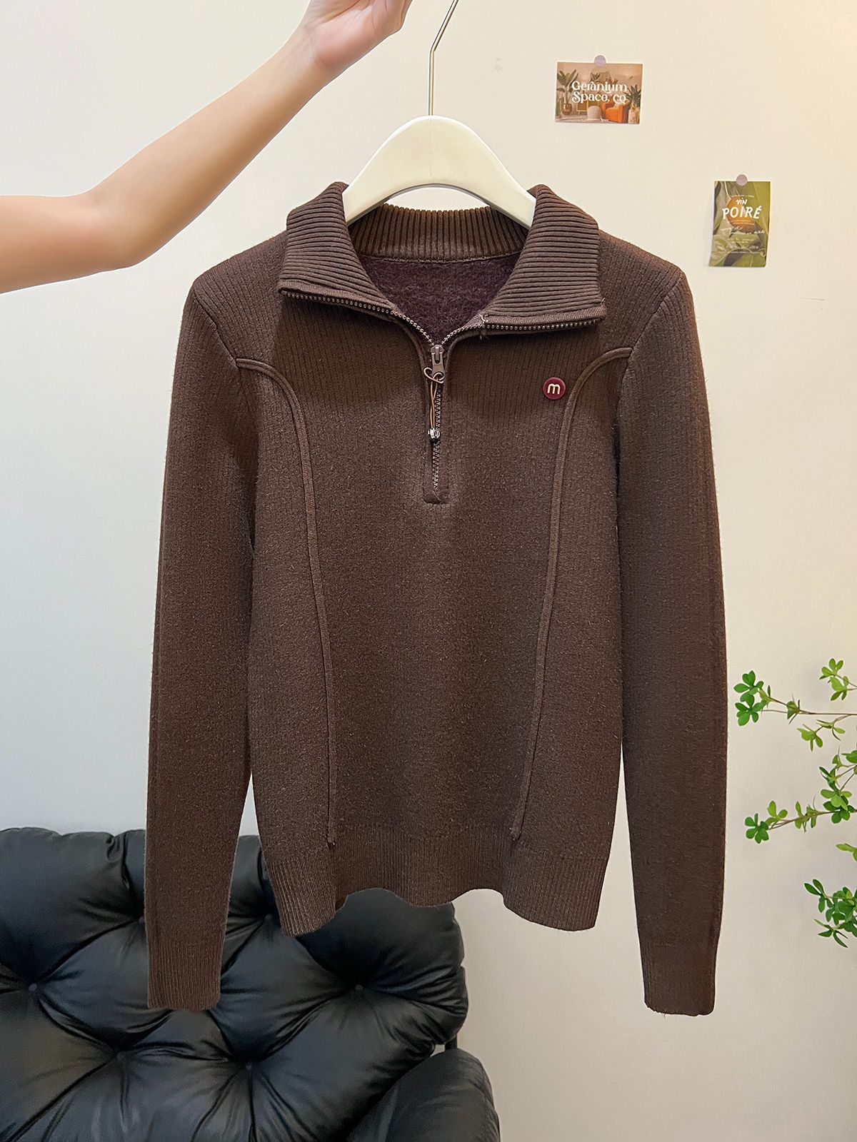 MY16662# 包芯纱坎貂绒 天猫品质 半高领拉链针织毛衣女女裝貨源服裝批發