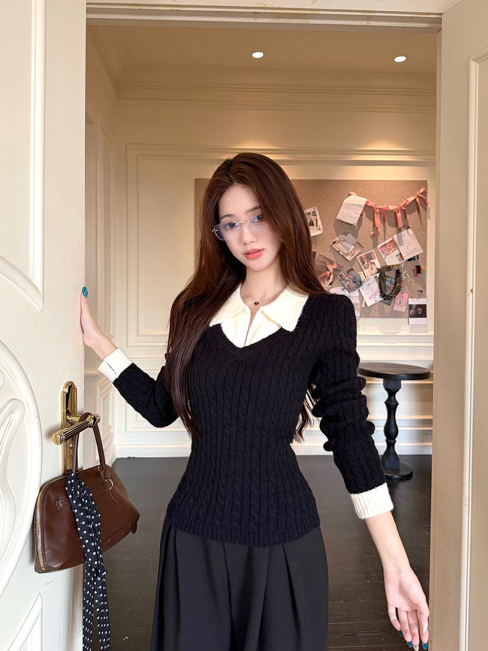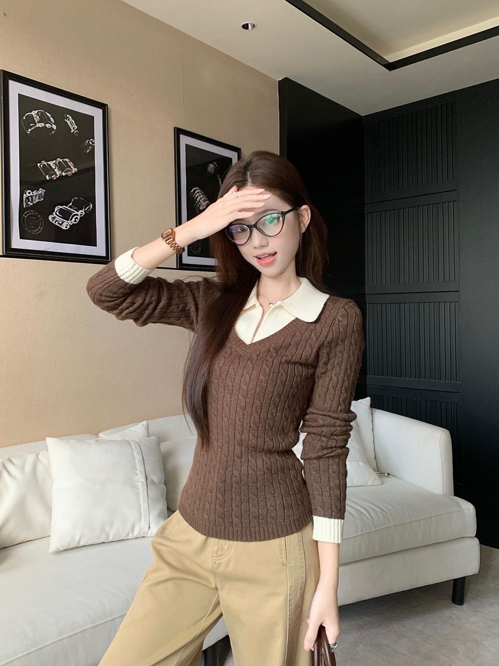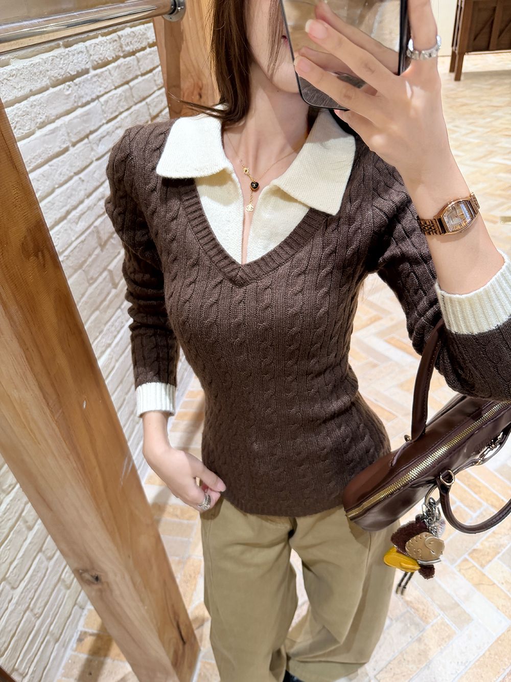 MY16663# 安迪绒两条毛 Polo领针织衫毛衣女女裝貨源服裝批發