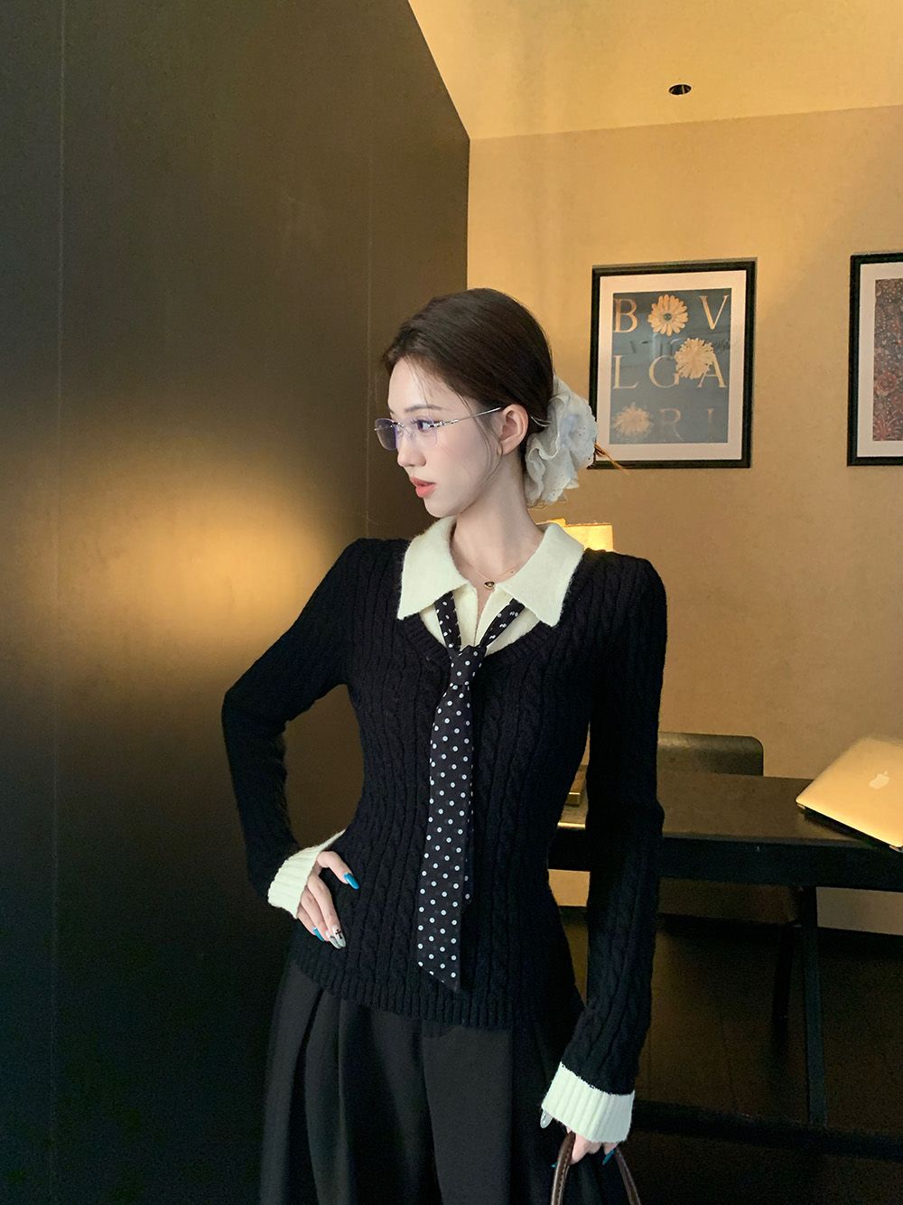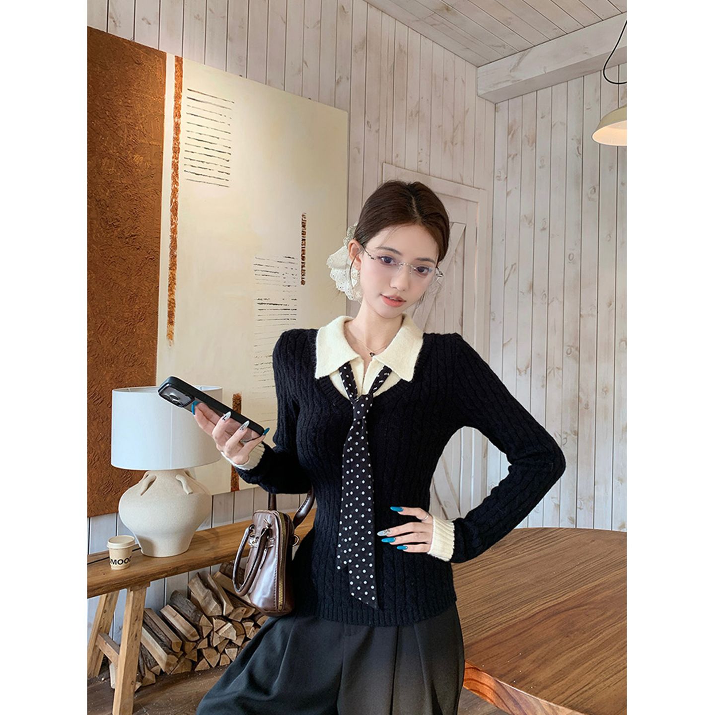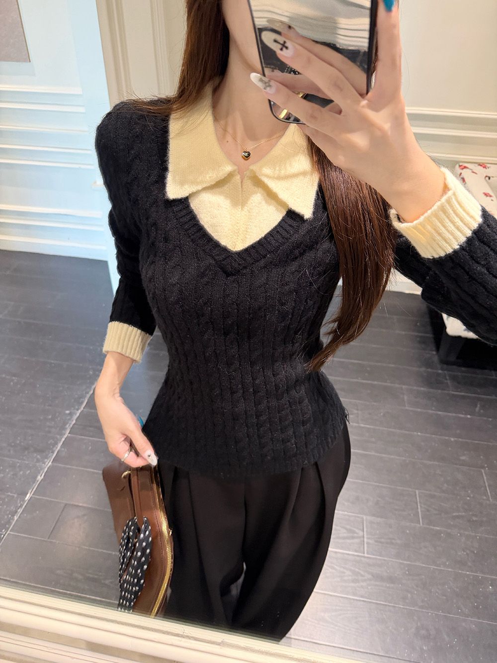 MY16663# 安迪绒两条毛 Polo领针织衫毛衣女女裝貨源服裝批發