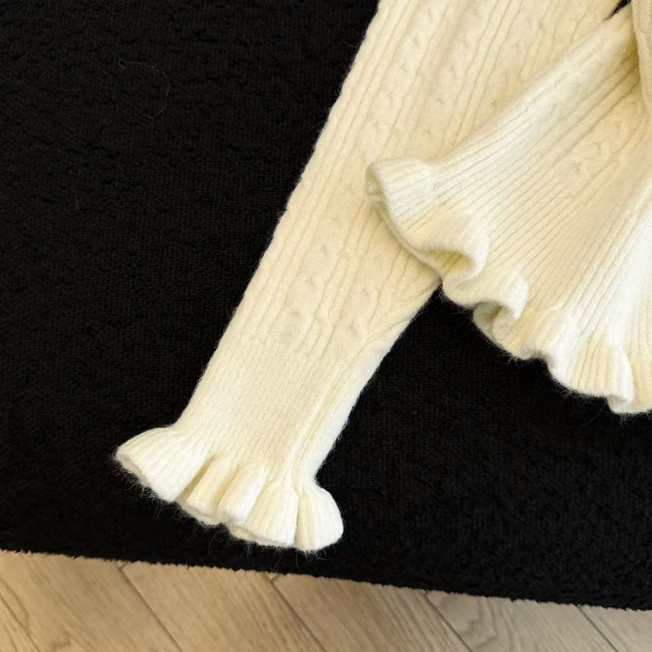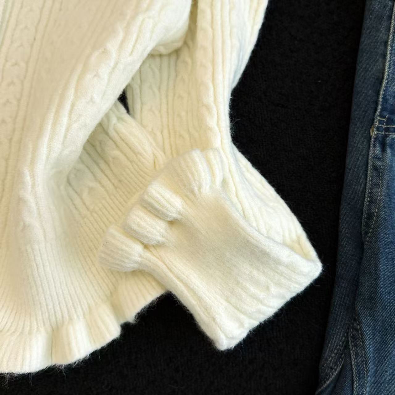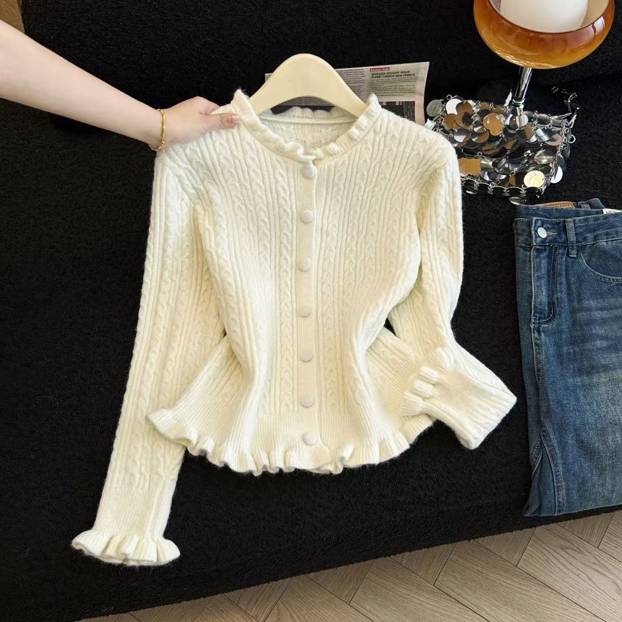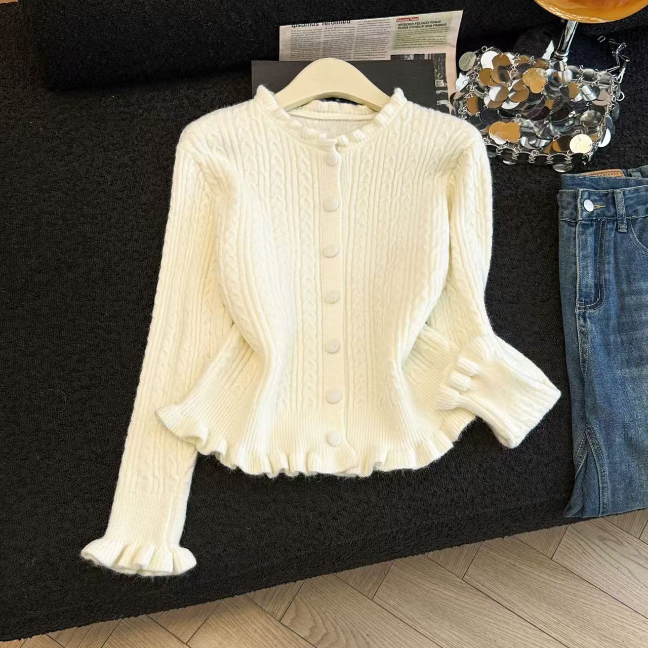 MY16682# 减龄少女感收腰麻花波浪边修身针织衫小个子毛衣上衣chic百搭女裝貨源服裝批發