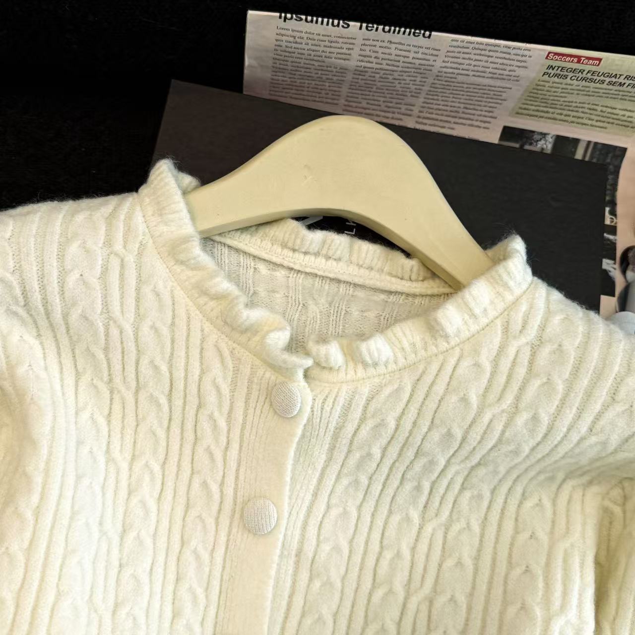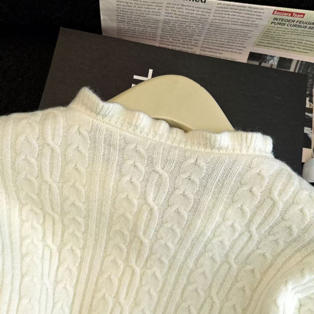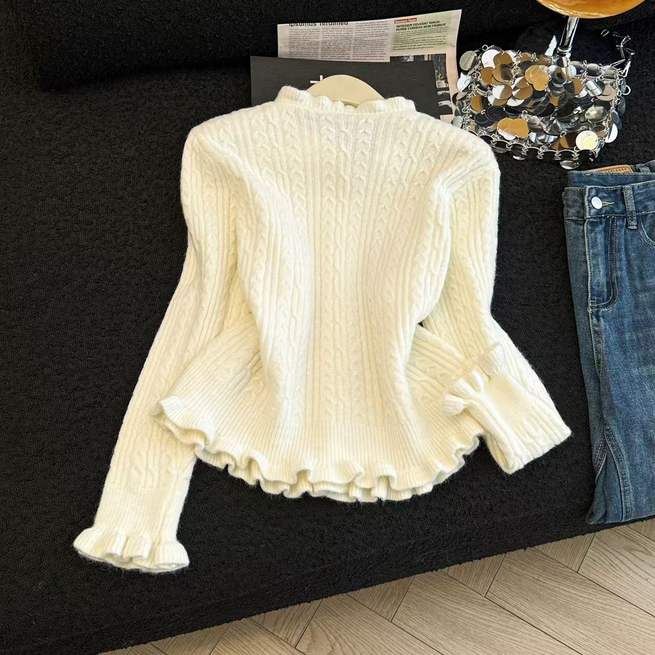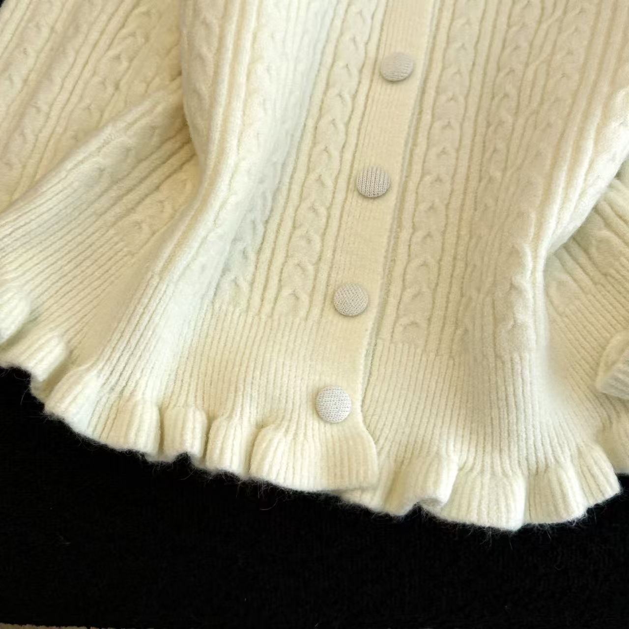 MY16682# 减龄少女感收腰麻花波浪边修身针织衫小个子毛衣上衣chic百搭女裝貨源服裝批發