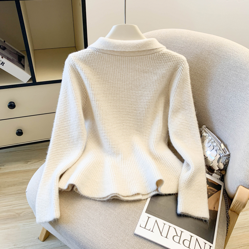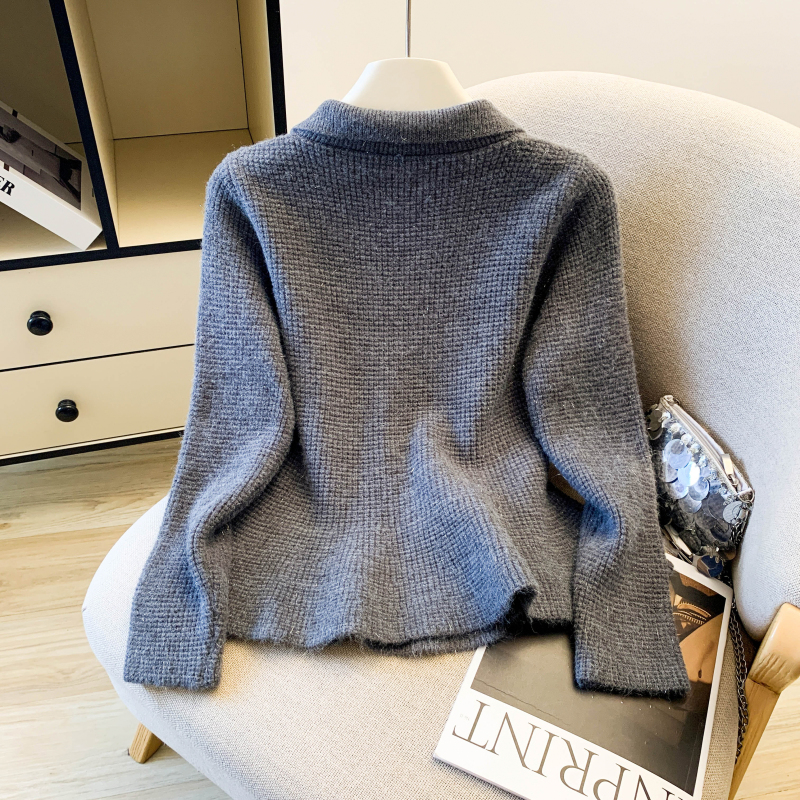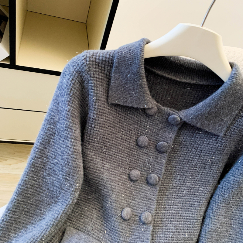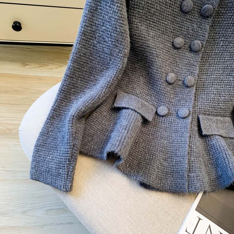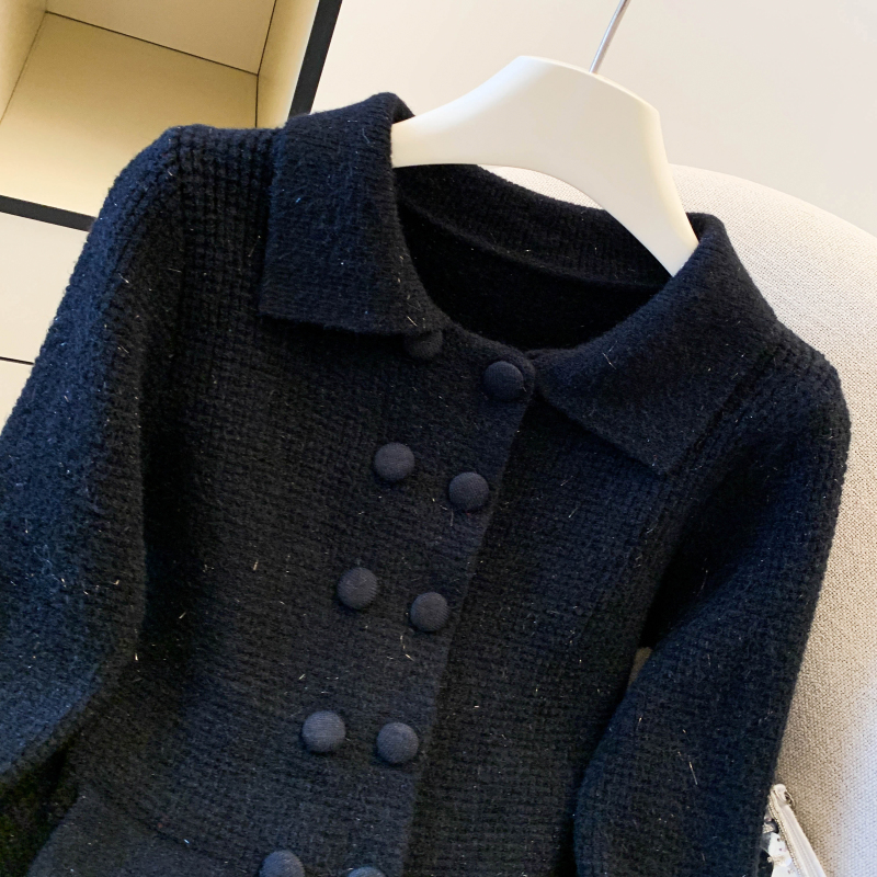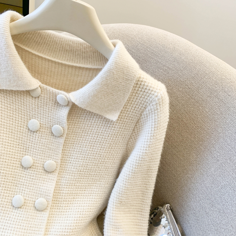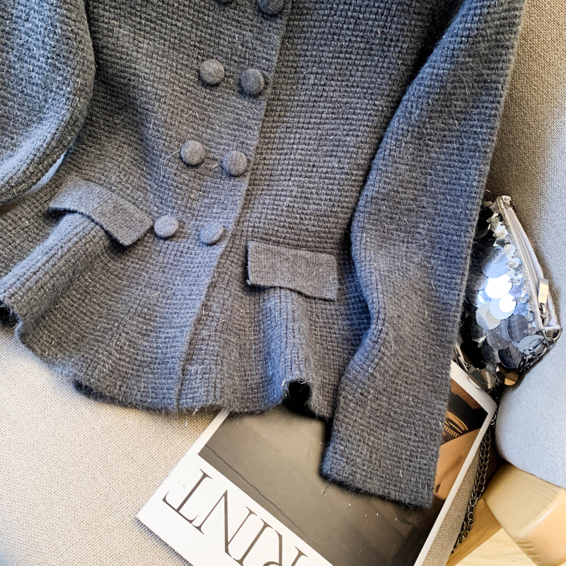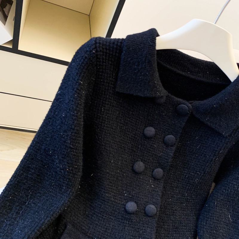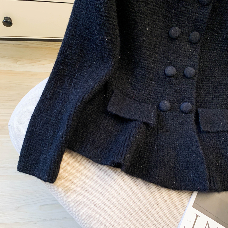 MY16683# 红色翻领双排扣长袖针织开衫毛衣外套女慵懒风韩系上衣女裝貨源服裝批發