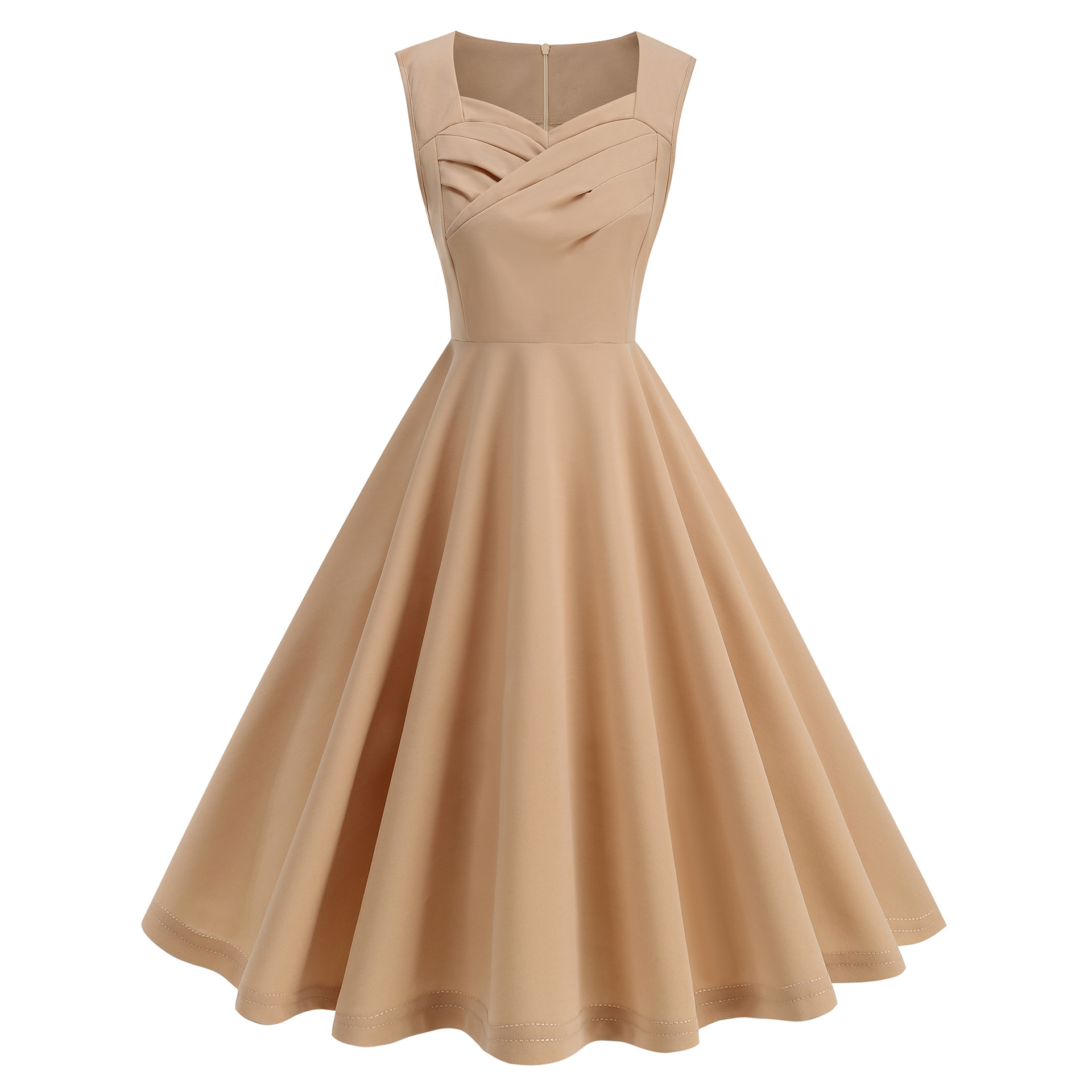 MY16688# 欧美女装背心连衣裙修身春夏方领复古优雅裙女裝貨源服裝批發