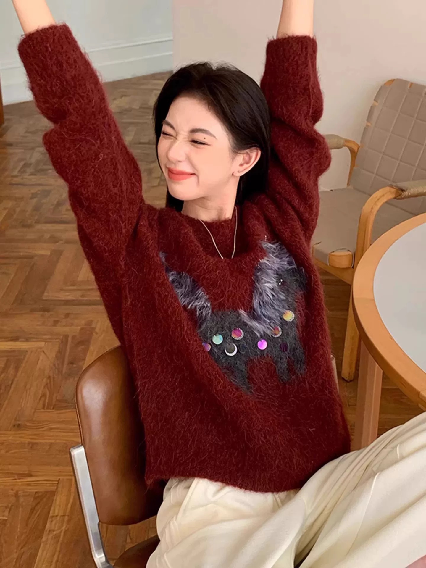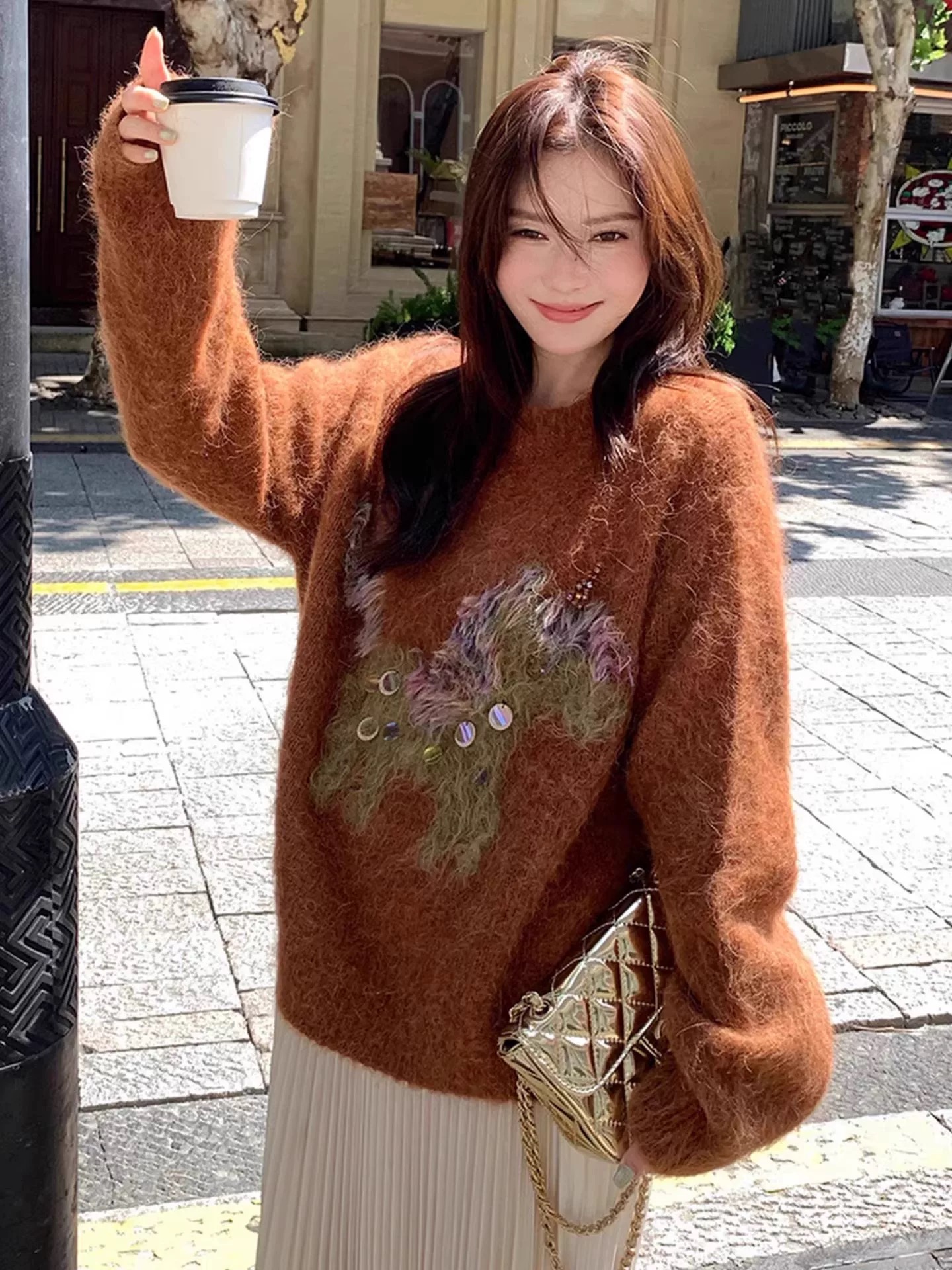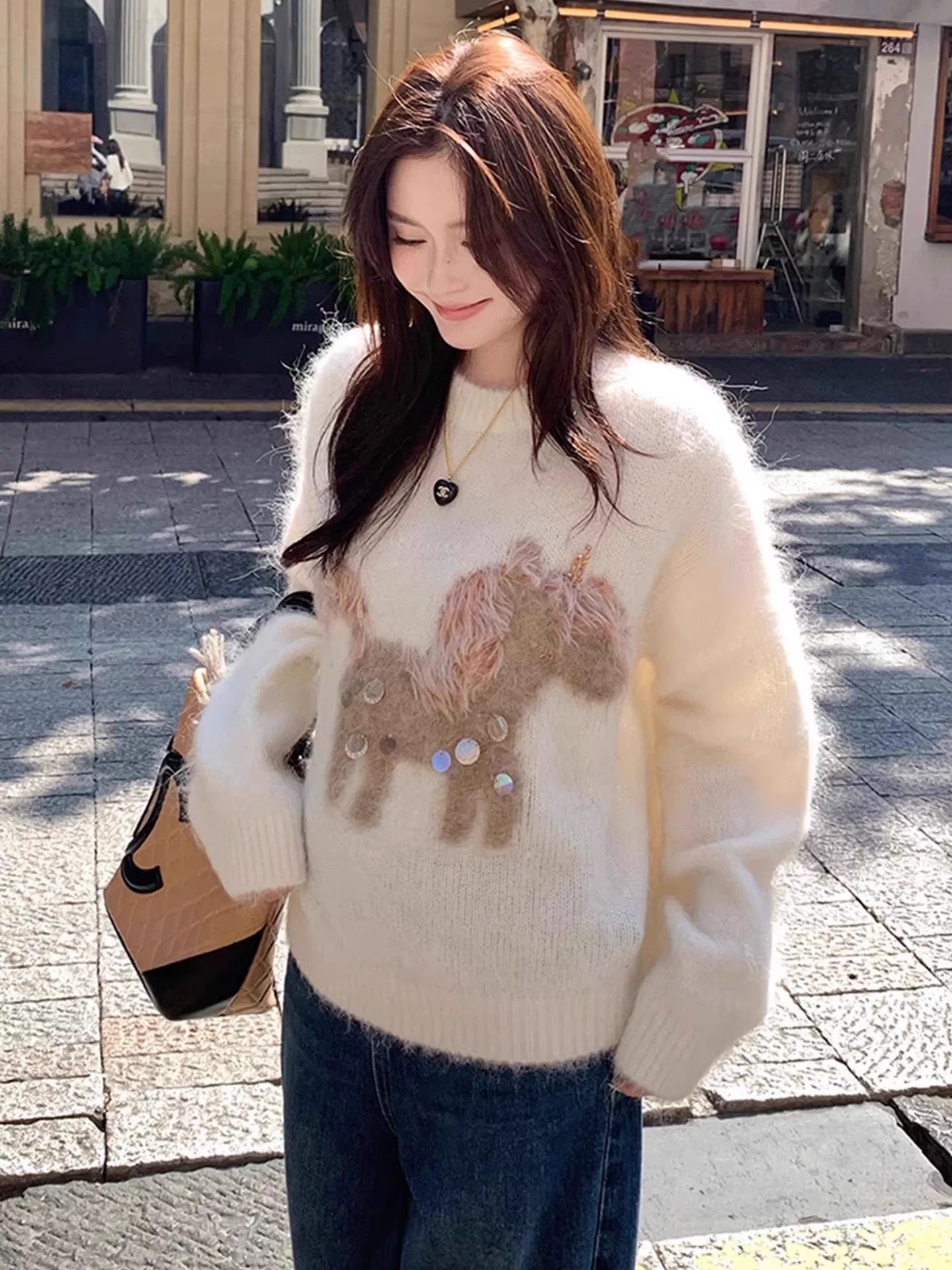 MY16697# 复古小马亮片百搭撞色软糯氛围感毛衣新款休闲内搭上衣女裝貨源服裝批發