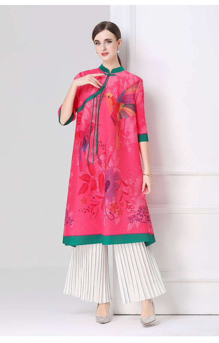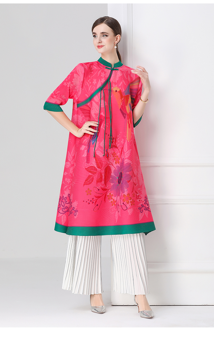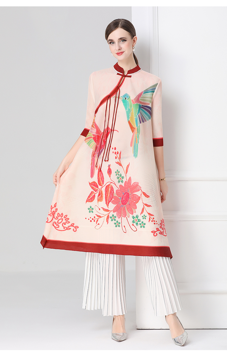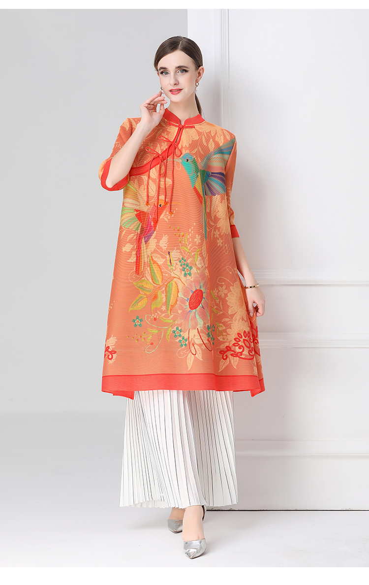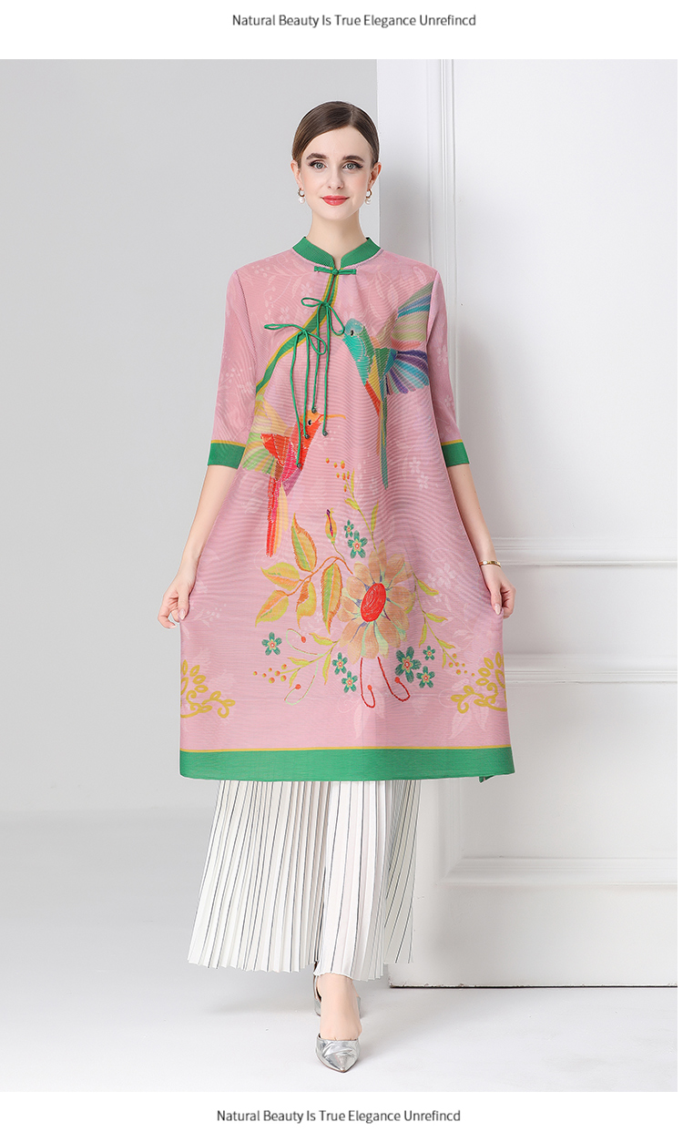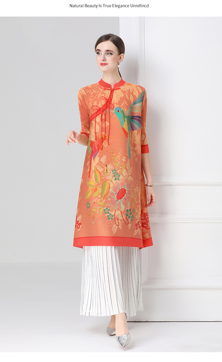 MY16720# 旗袍改良印花连衣裙新款气质洋气妈妈裙子宽松高端盘扣褶皱裙女裝貨源服裝批發