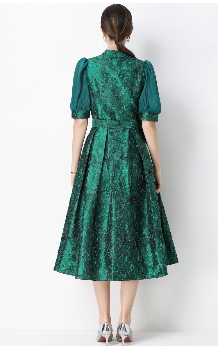 MY16751# 轻奢高级感提花圆领无袖连衣裙女排扣收腰显瘦中长裙女裝貨源服裝批發