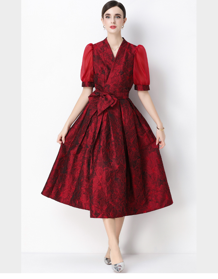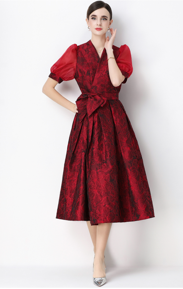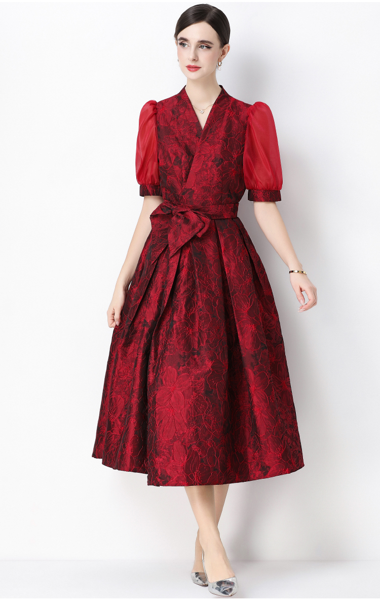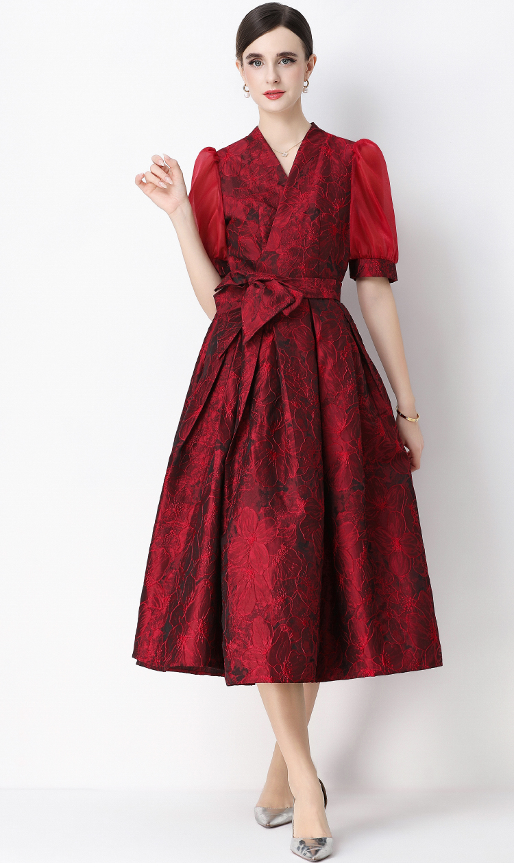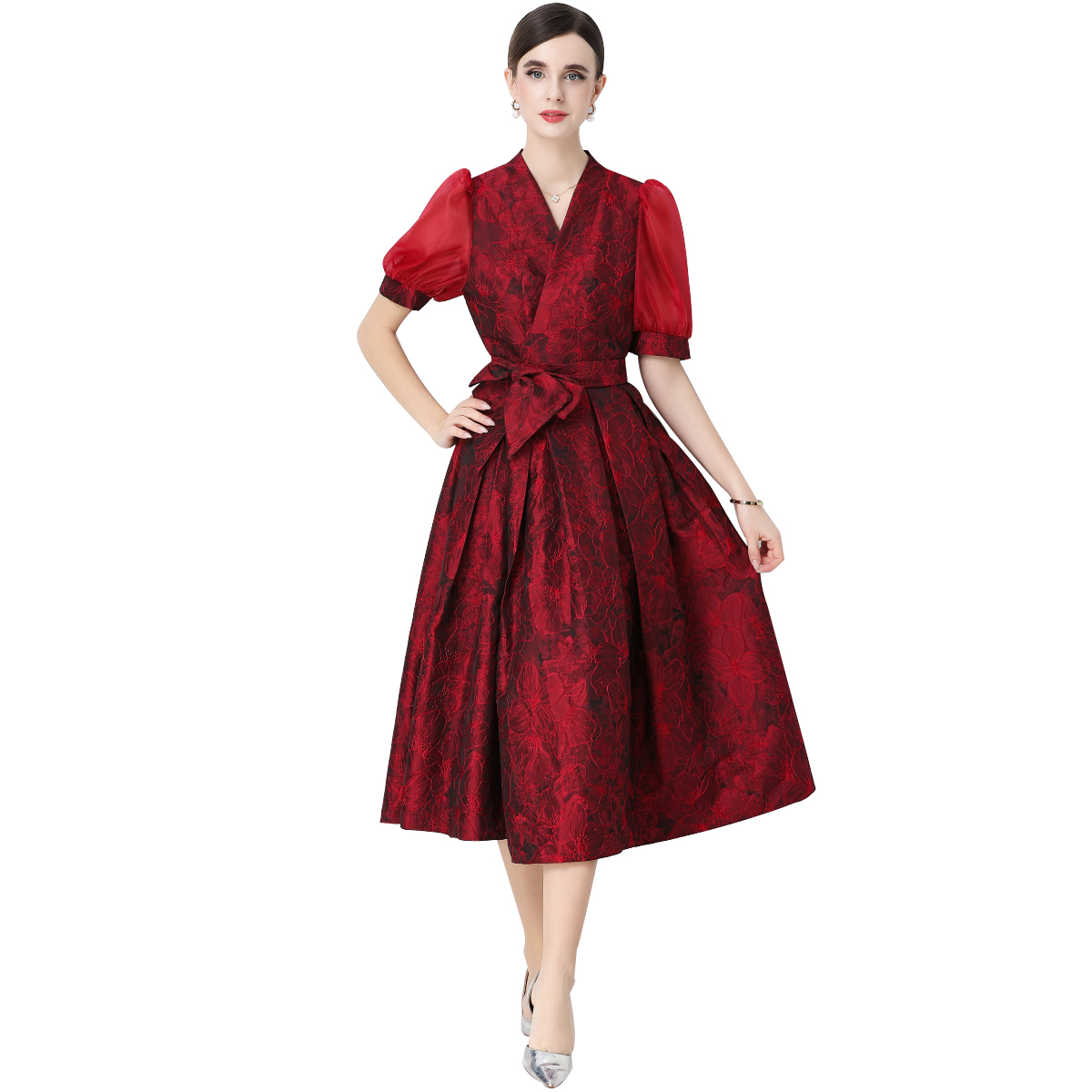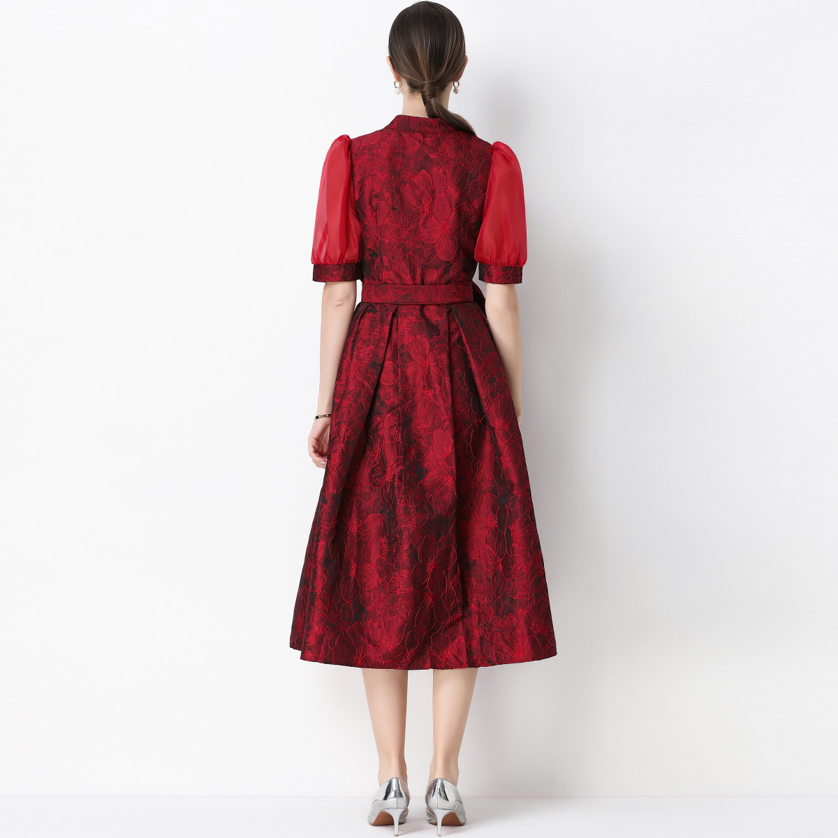 MY16752# 轻奢高级感提花圆领无袖连衣裙女排扣收腰显瘦中长裙女裝貨源服裝批發