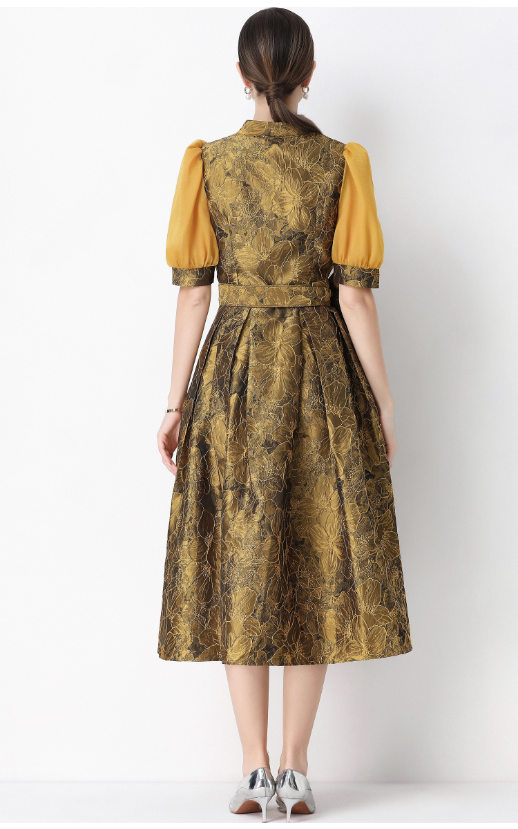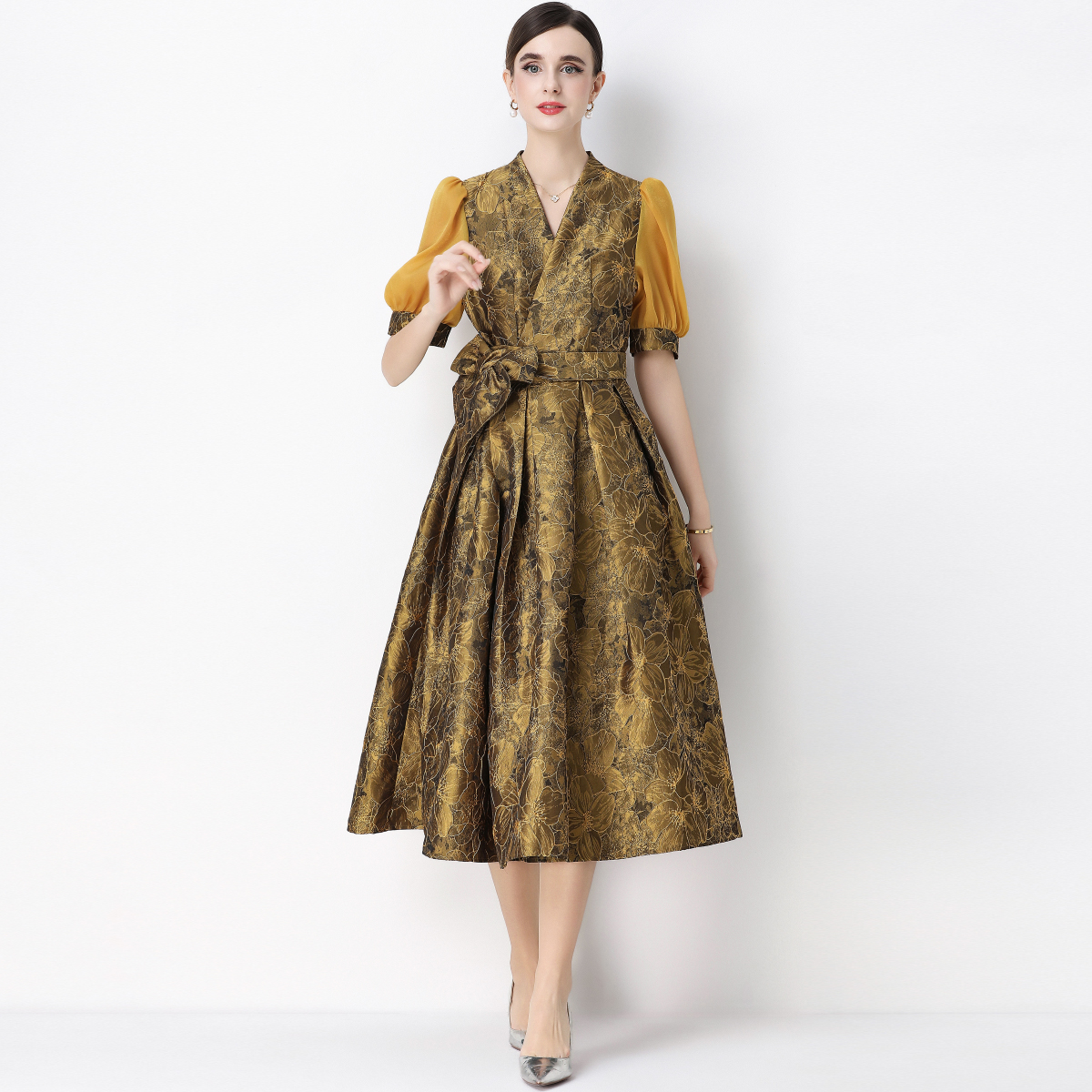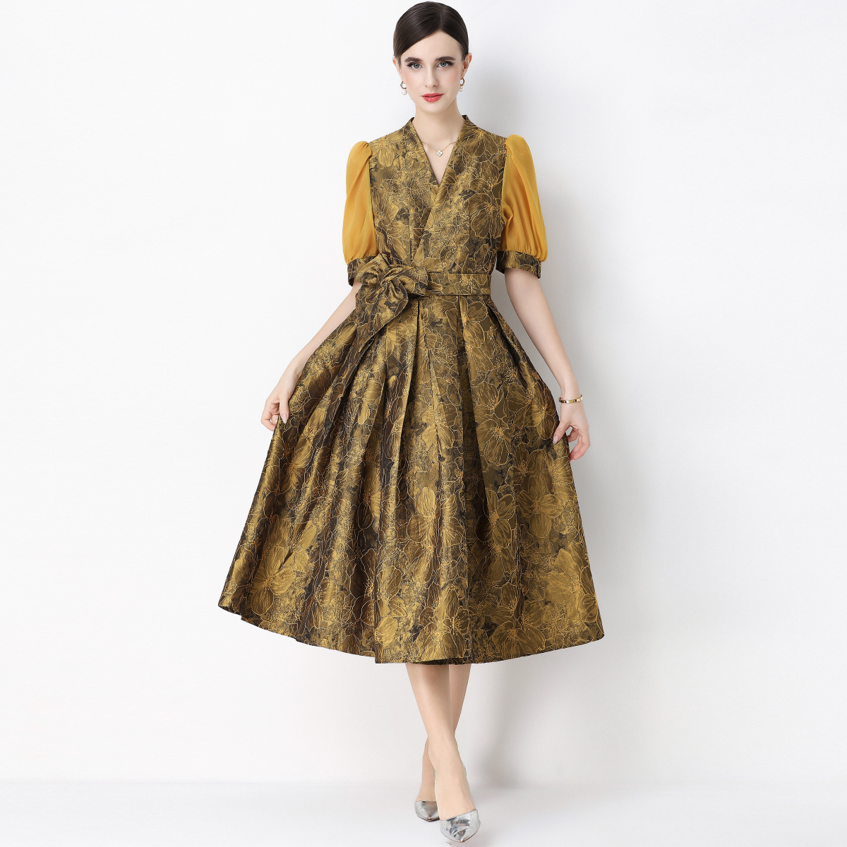 MY16753# 轻奢高级感提花圆领无袖连衣裙女排扣收腰显瘦中长裙女裝貨源服裝批發