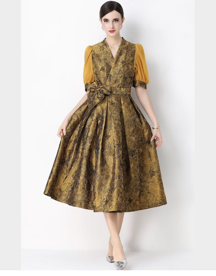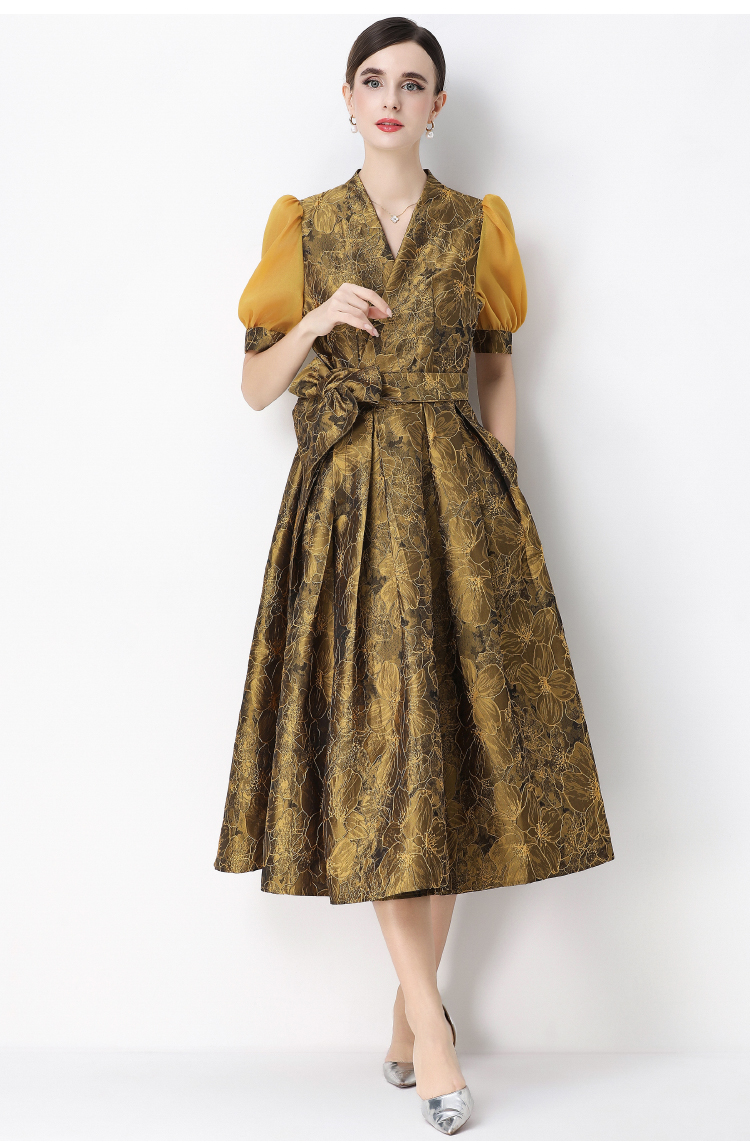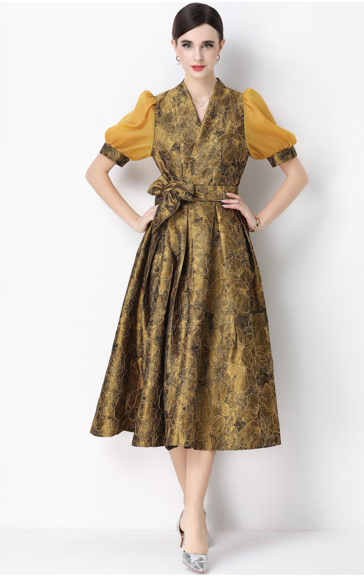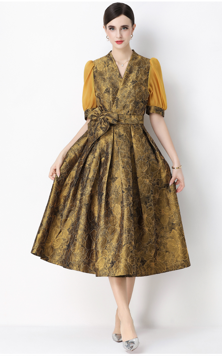 MY16753# 轻奢高级感提花圆领无袖连衣裙女排扣收腰显瘦中长裙女裝貨源服裝批發