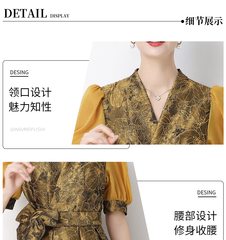 MY16751# 轻奢高级感提花圆领无袖连衣裙女排扣收腰显瘦中长裙女裝貨源...
