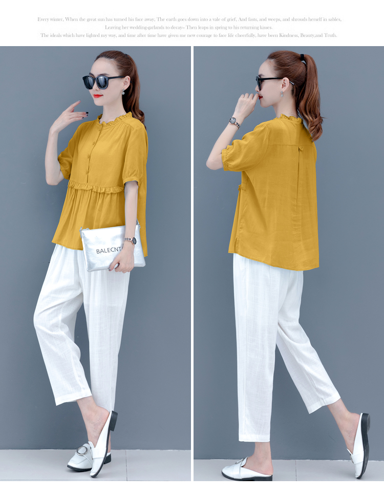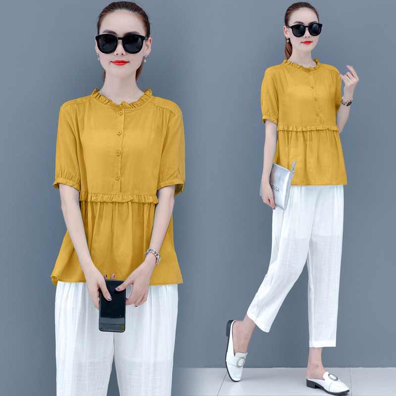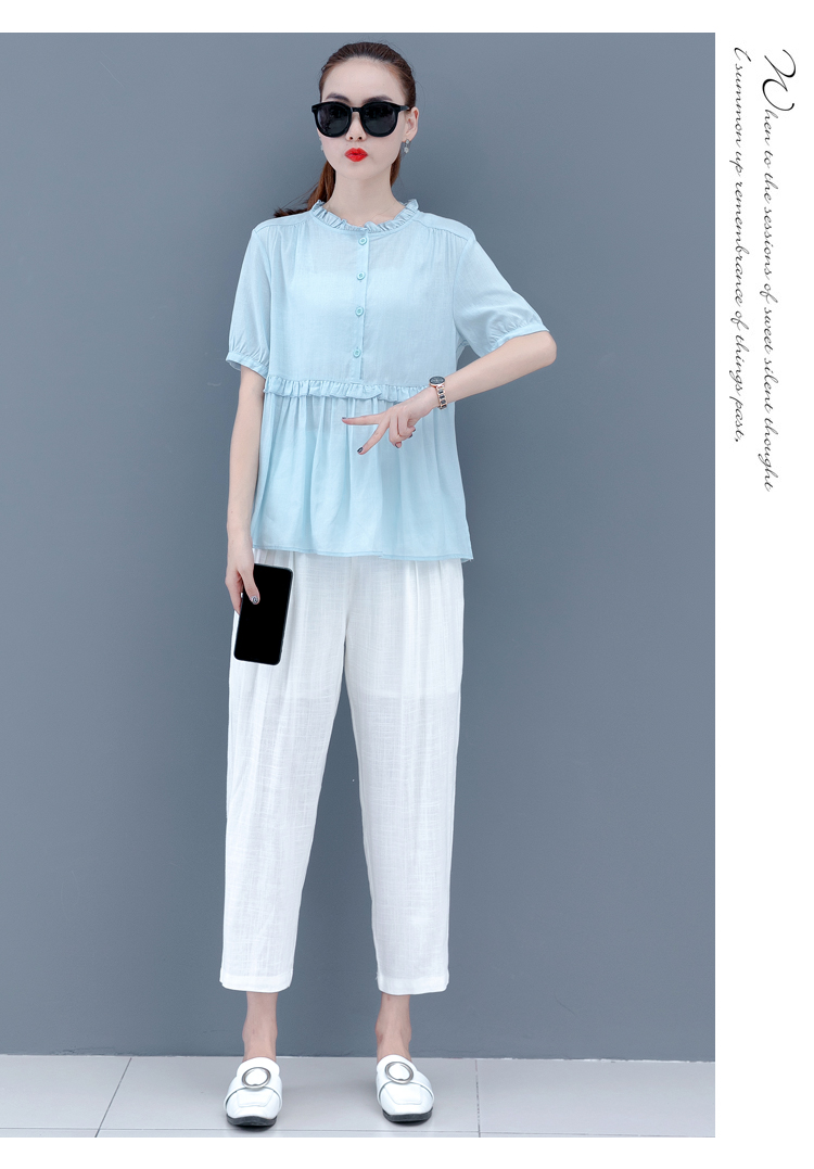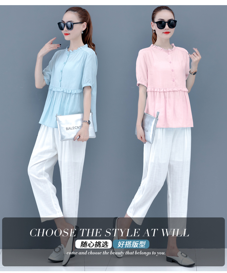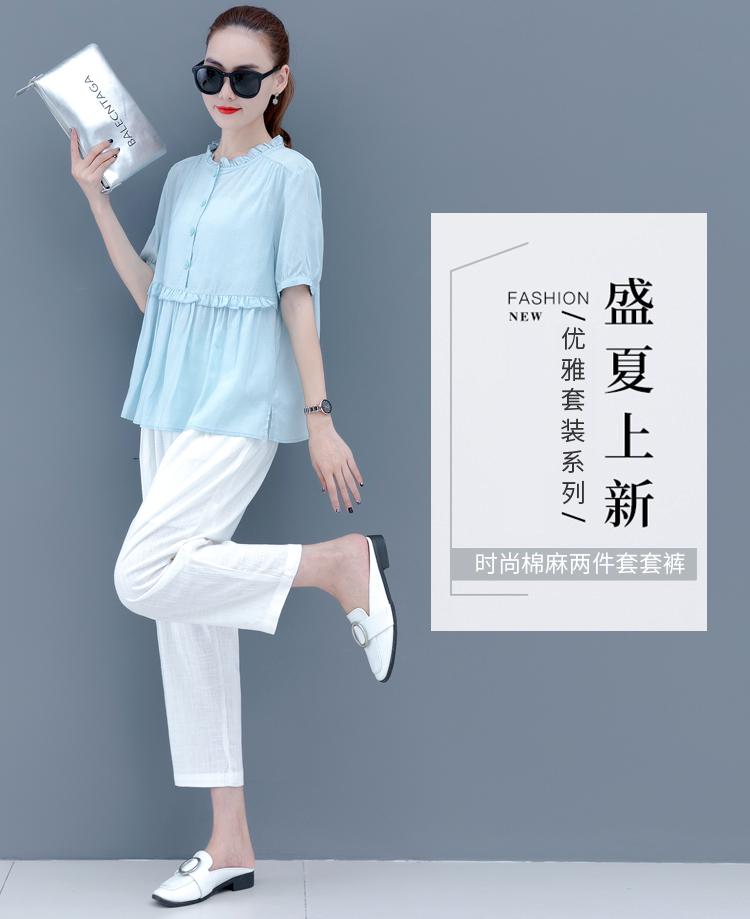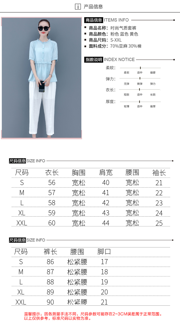 MY16789# 棉麻套装新款气质夏天时尚洋气休闲亚麻两件套女装女裝貨源服裝批發