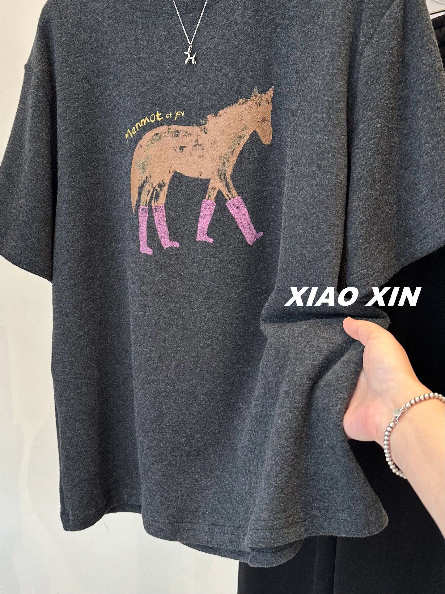 MY16802# 原版螺纹德绒大码300斤韩系磨毛短袖T恤女印花宽松半袖上衣潮女裝貨源服裝批發