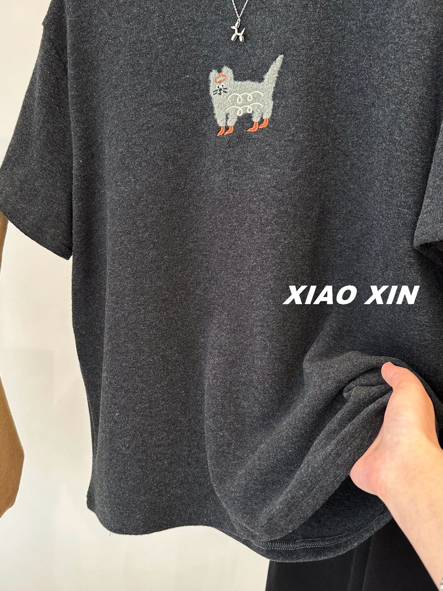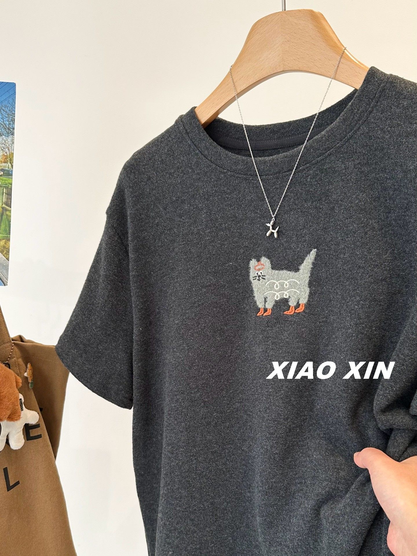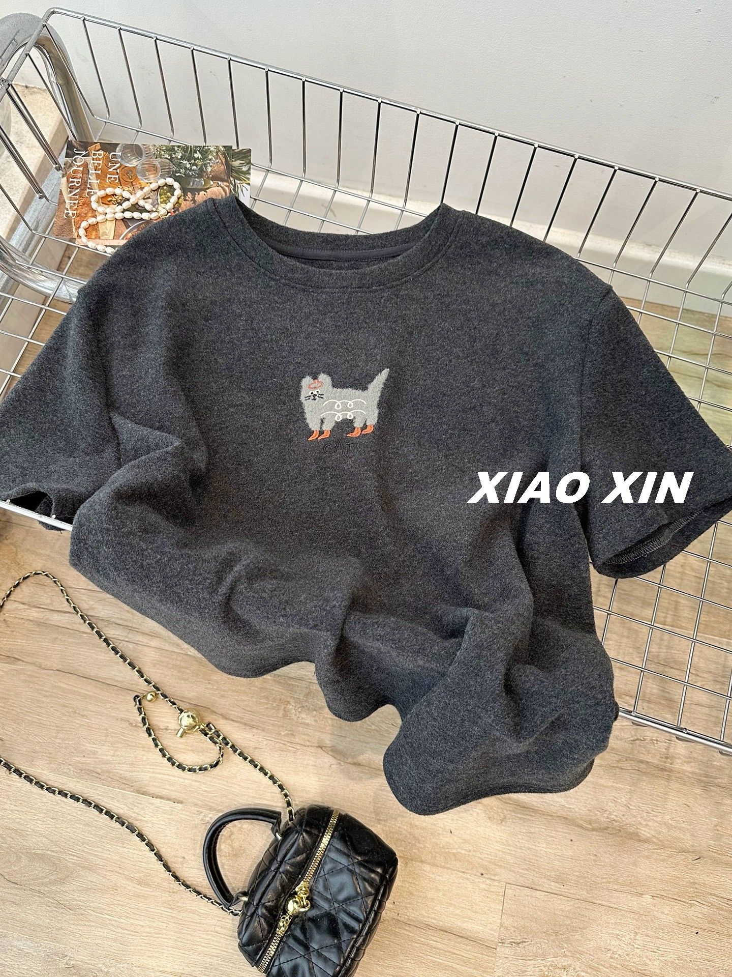 MY16804# 原版德绒 大码300斤好看刺绣磨毛短袖T恤女新款打底衫上衣潮女裝貨源服裝批發