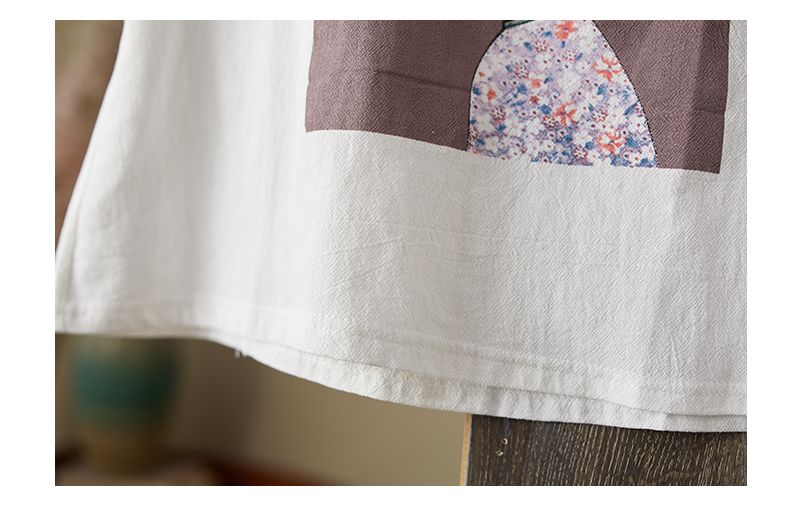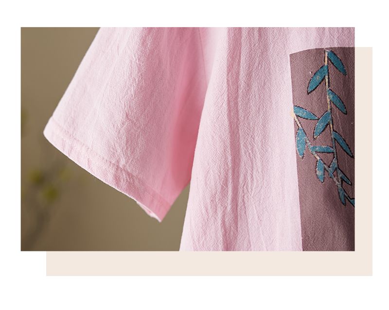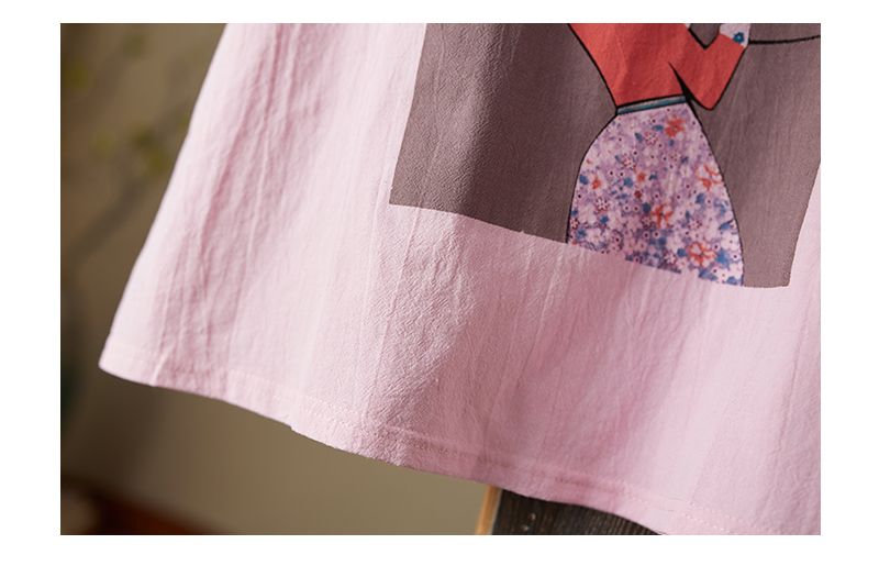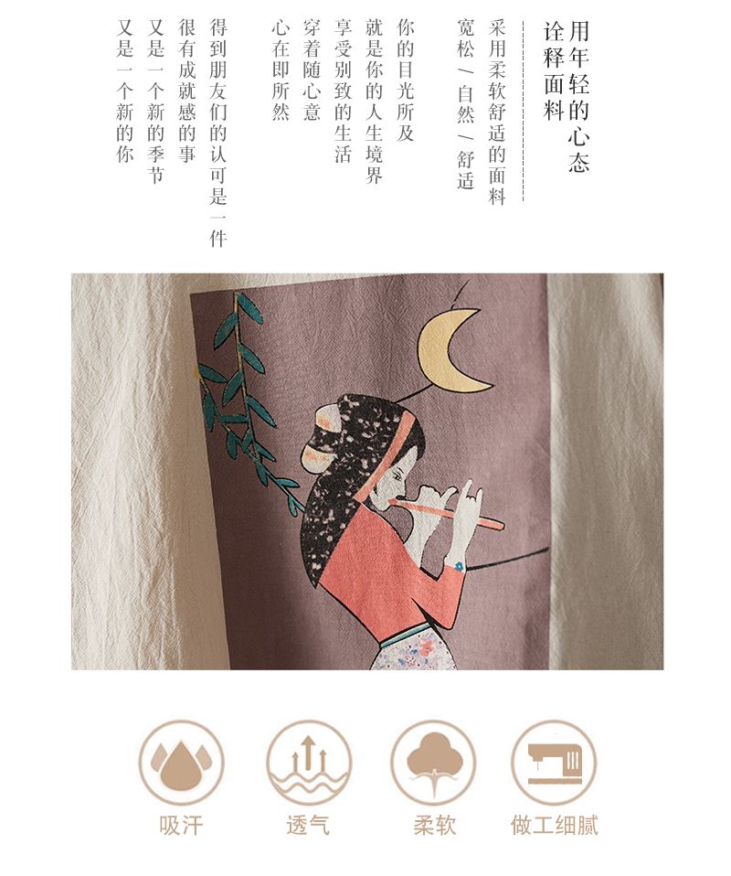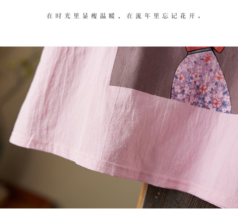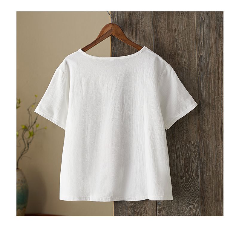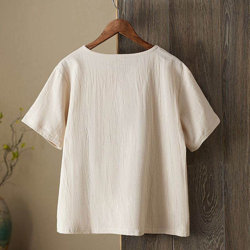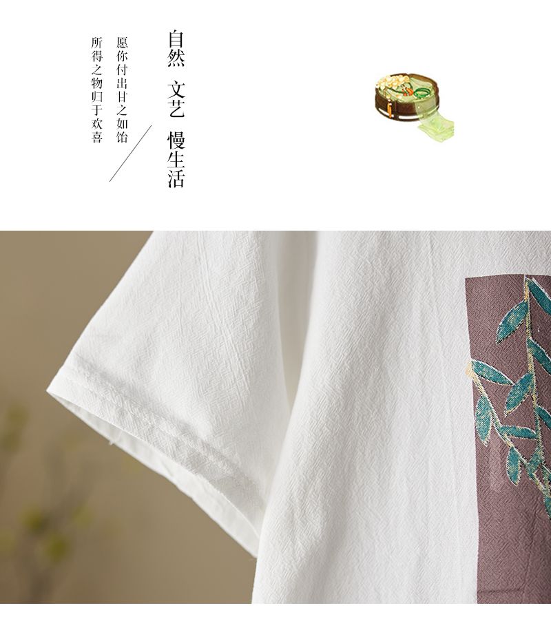 MY16971# 夏季复古印花亚麻上衣女大码宽松棉麻百搭短袖T恤女裝貨源服裝批發