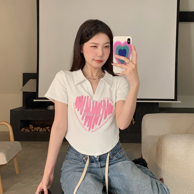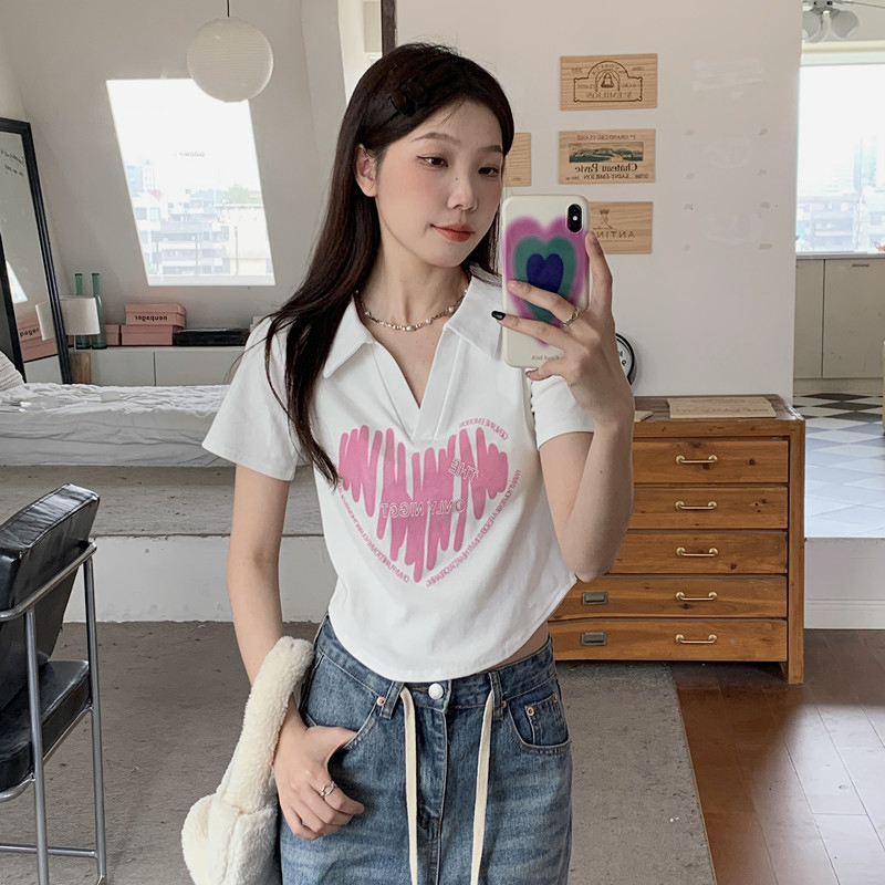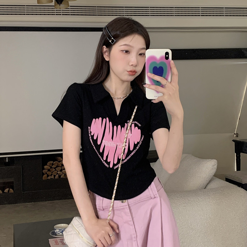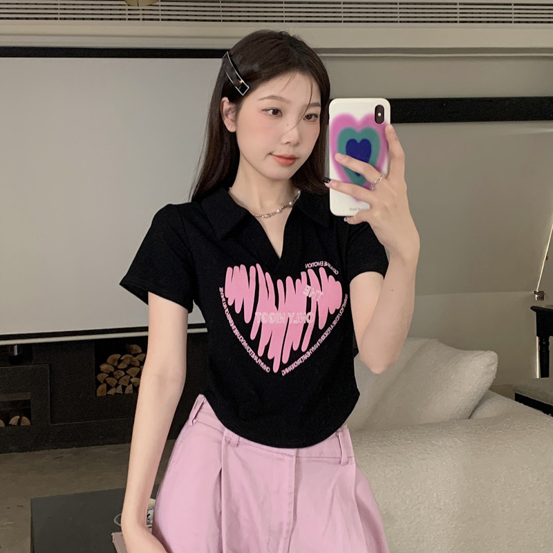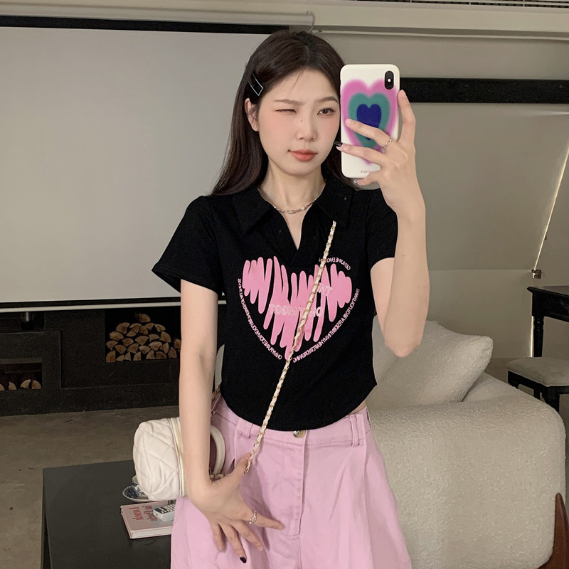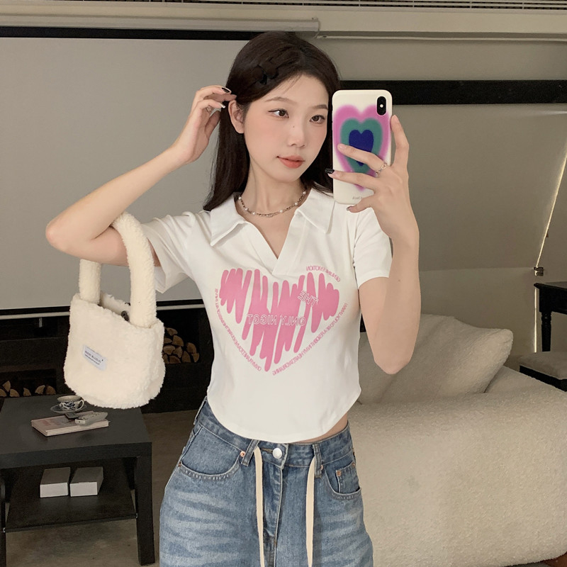 MY16979# 32支95棉5氨纶 polo领正肩短袖t恤女夏季女裝貨源服裝批發